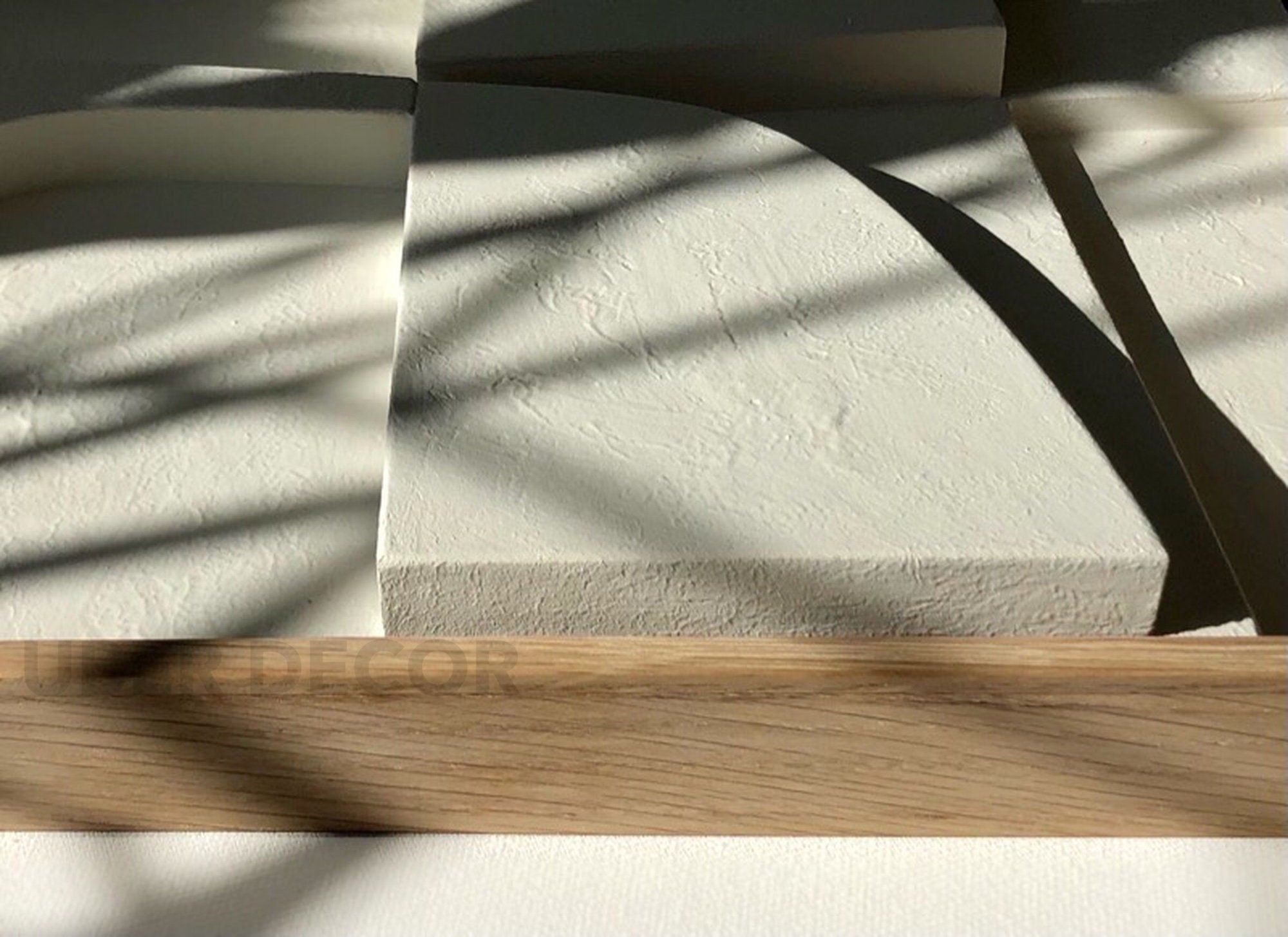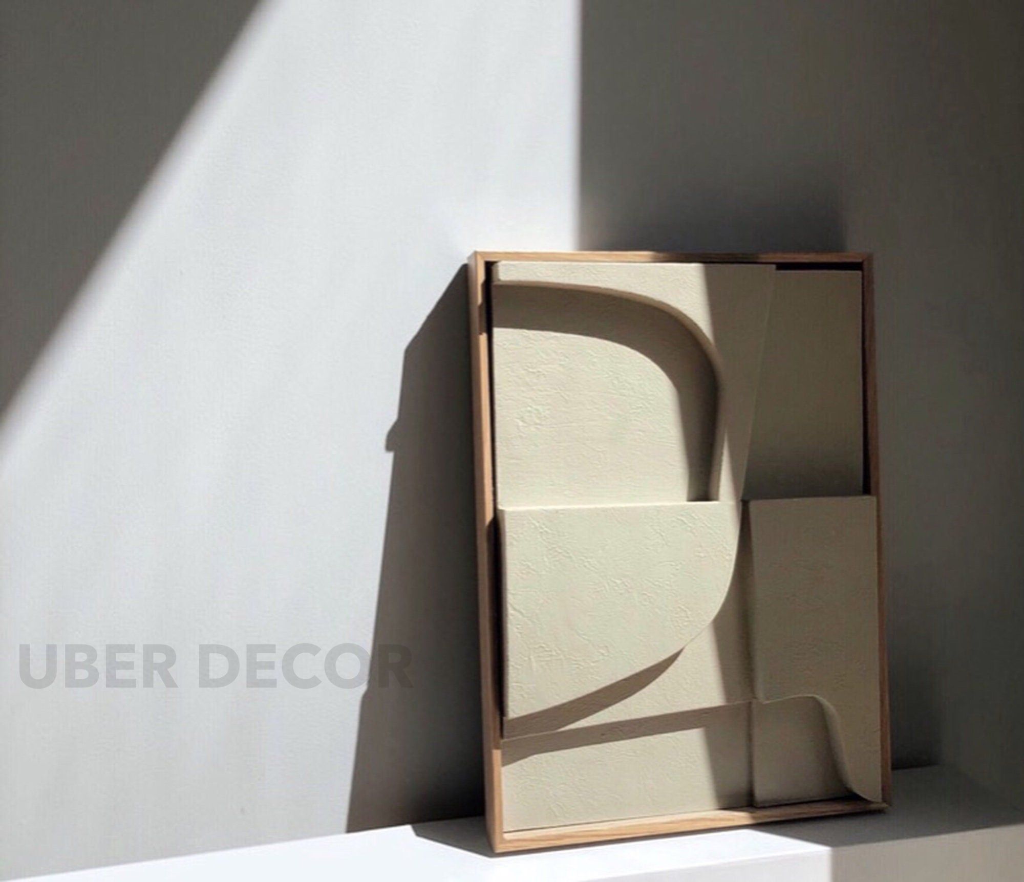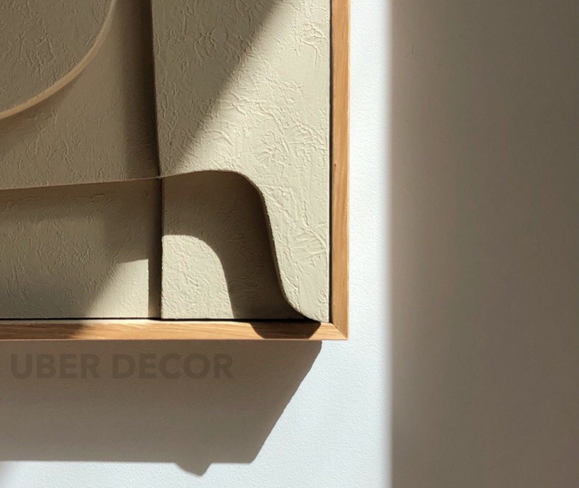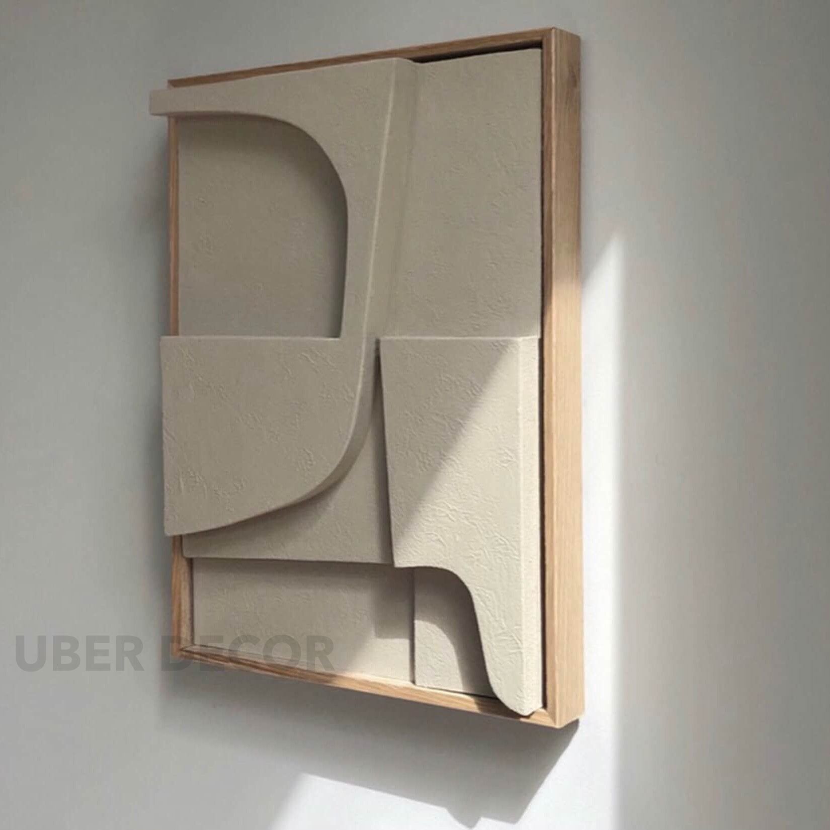 The design is defined by its minimalist and modern aesthetics, featuring clean lines and a harmonious blend of shapes and textures that offer a striking yet subtle presence. Perfect for those who appreciate minimalist home decor, this wooden wall art can be used to complement any style of interior design, from contemporary to Scandinavian or even industrial themes.