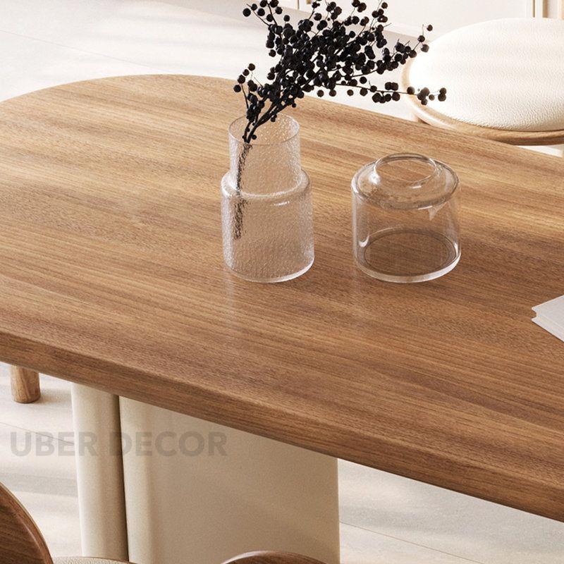 Alba Form Oval 6 Seater Dining Table Japandi Scandinavian Design Natural Oak Top Cream Cylindrical Legs Ideal for Dining Room