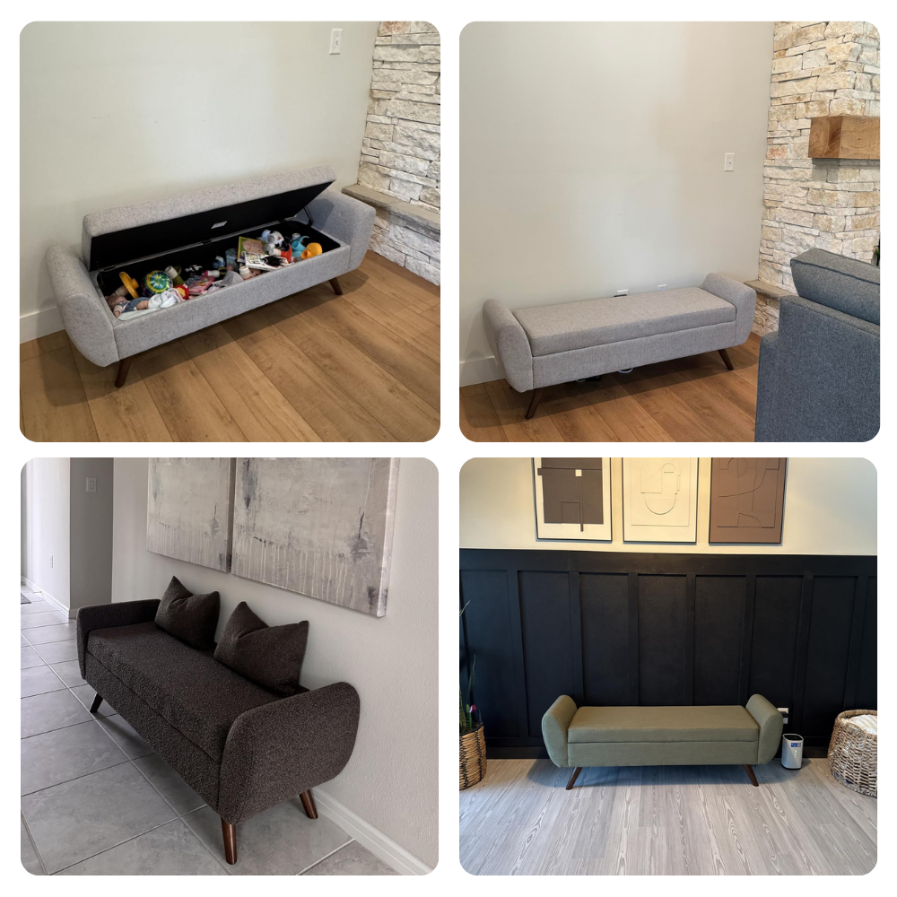 Amsi Mid-Century Modern Flip Top Storage Bench – Japandi-Inspired Entryway & Bedroom Organizer