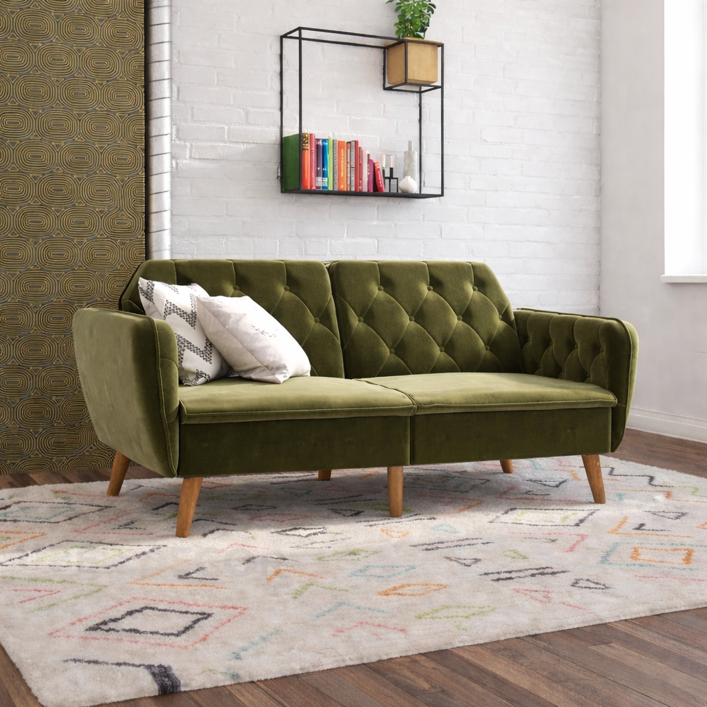 Arezzo 83" Futon Sofa- Tufted Laid Back Convertible Futon Couch Bed for Small Spaces, Home or Office