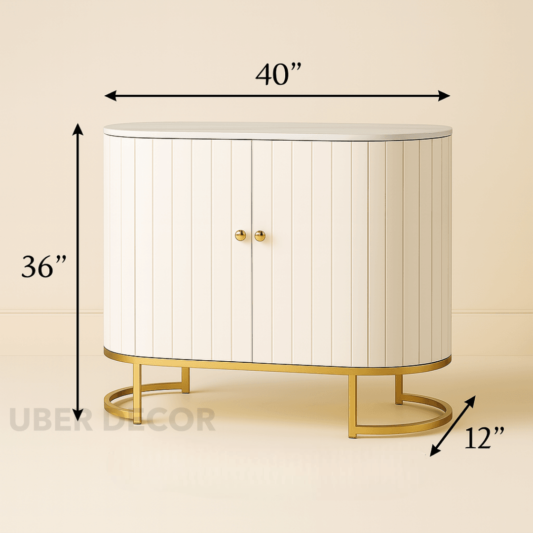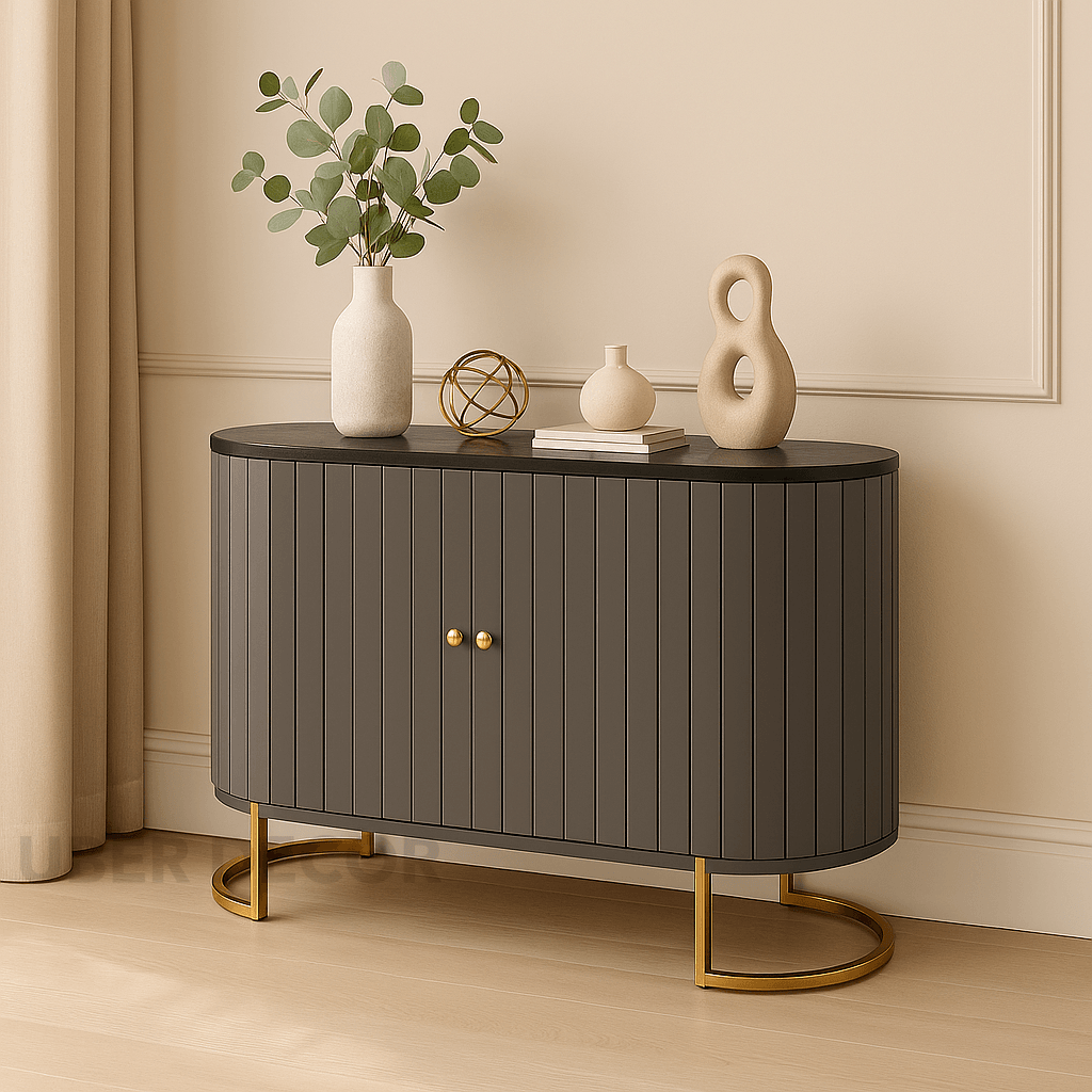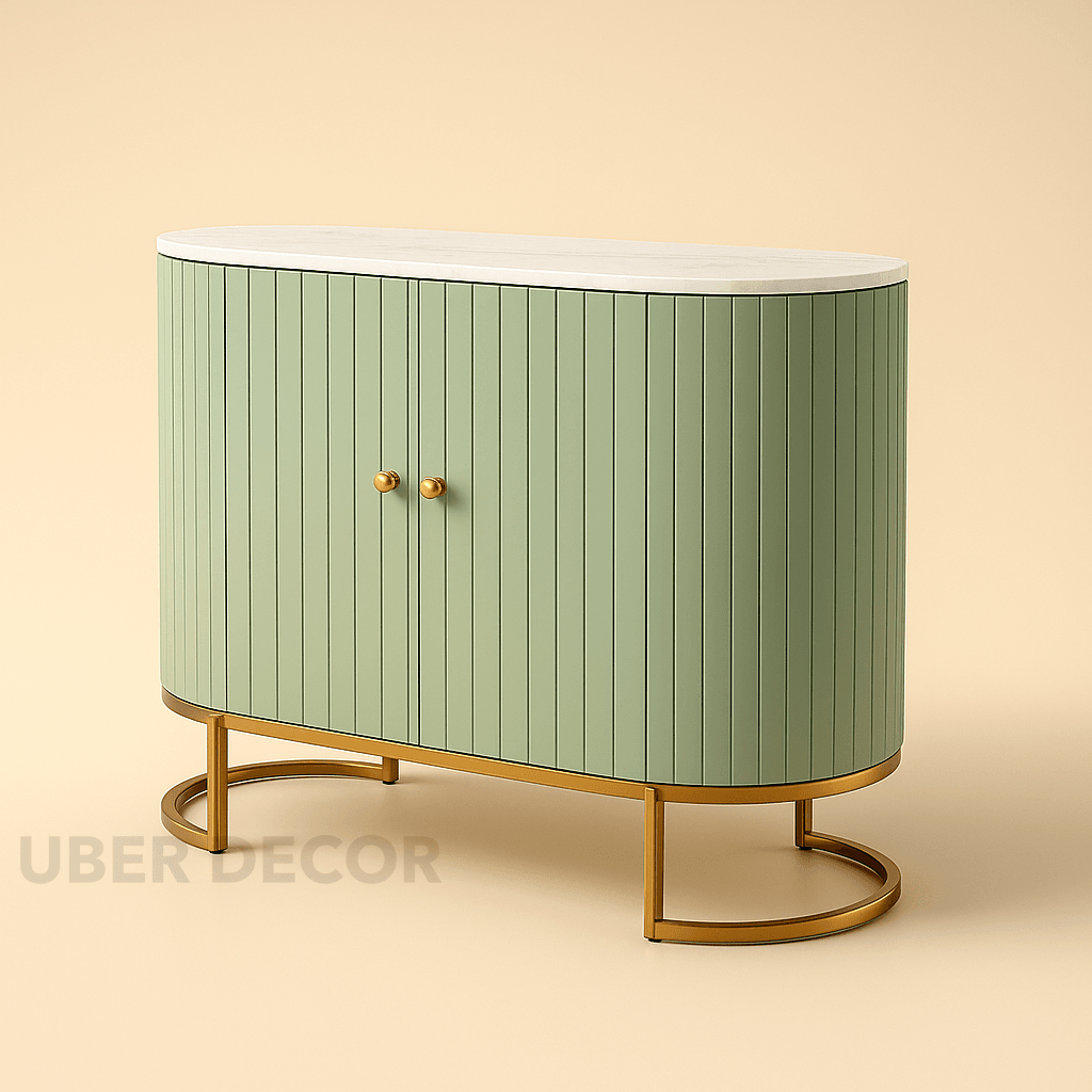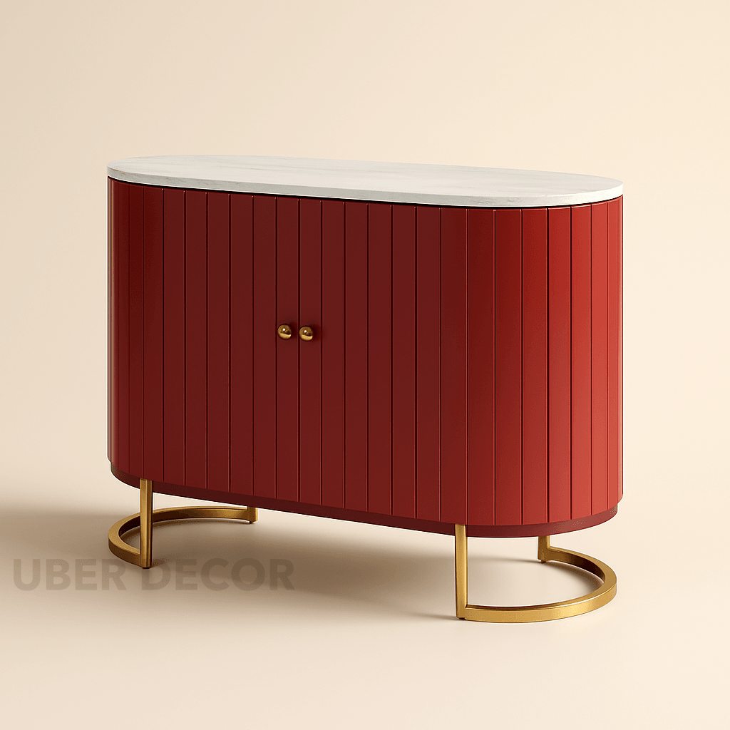 Astra Ellipse Entryway Table – Custom Marble Top with Fluted Front & Curved Base Mid‑Century Modern Accent