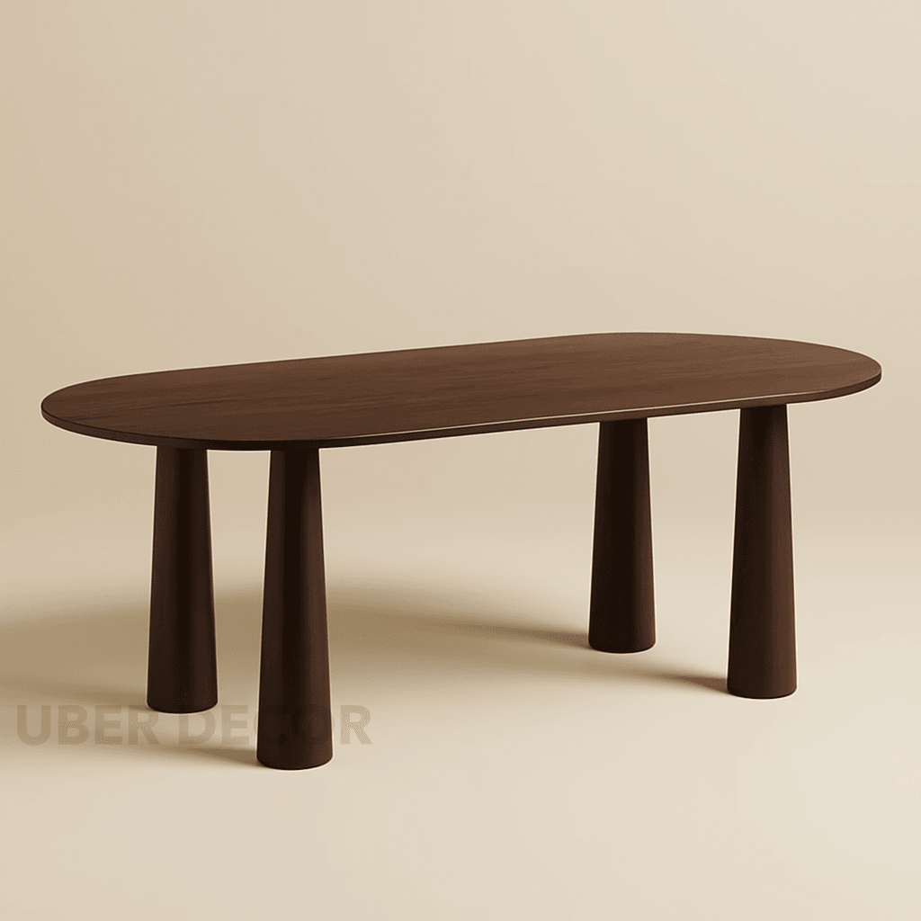 Auburn Grace Oval Dining Table Mid Century Modern Contemporary Design Walnut Brown Finish Cylindrical Legs Ideal for Dining Room