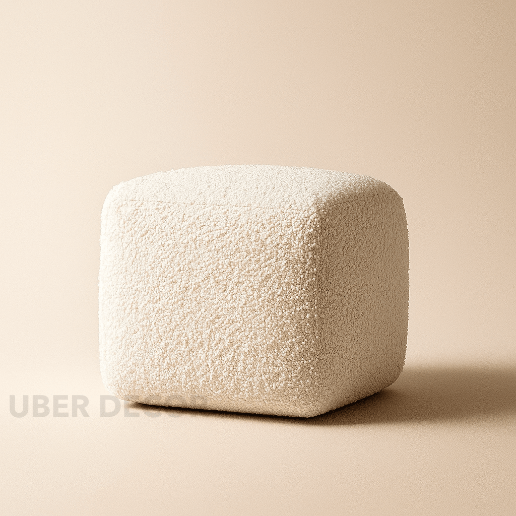 Introducing the luxurious Boucle Cube Ottoman, the perfect addition to any bedroom. Designed with Nordic light and space-saving features, this ottoman not only serves as a footstool but can also function as a chic vanity chair. Experience the ultimate comfort and style with our Boucle Cube Ottoman.
