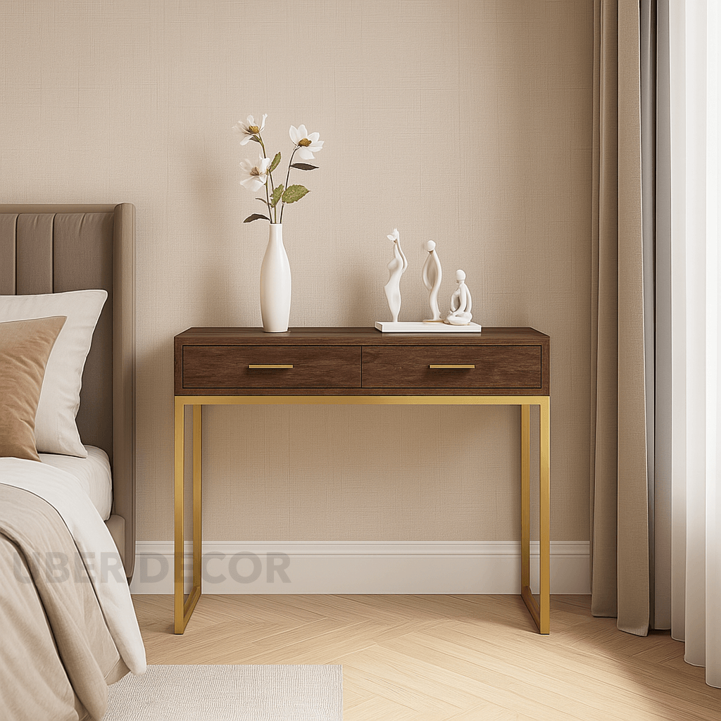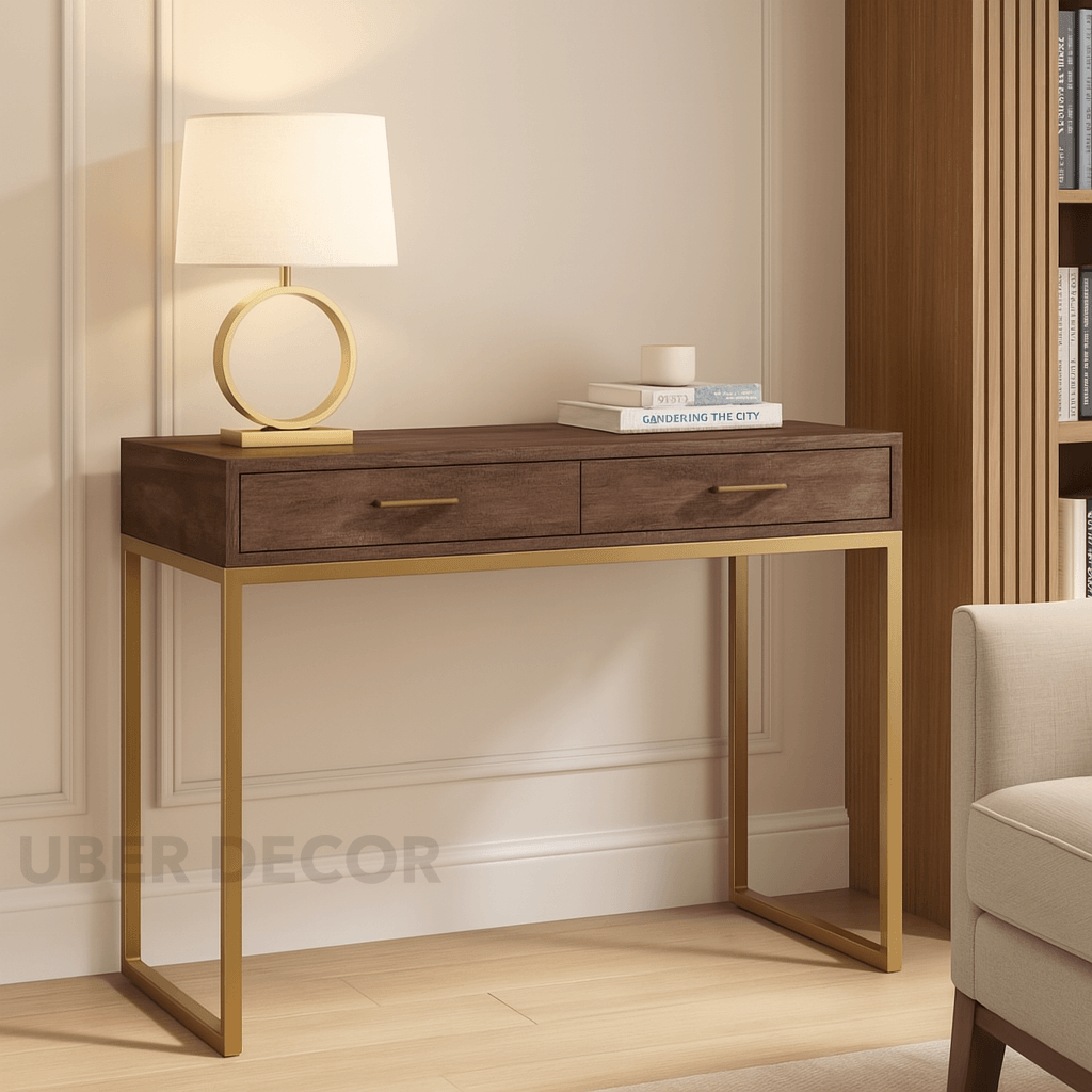 Bruno Frame Console Table – Wood Top with Dual Drawers & Sleek Base Modern Entry Accent