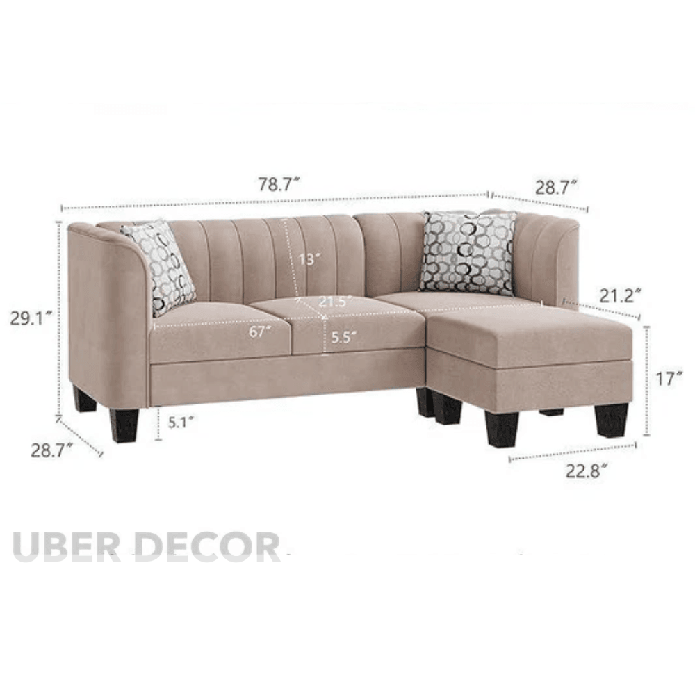 Casablanca 78" Sectional Sofa- Small 3-Seat L Shaped Convertible Sofa Couch with Chaise for Small Spaces