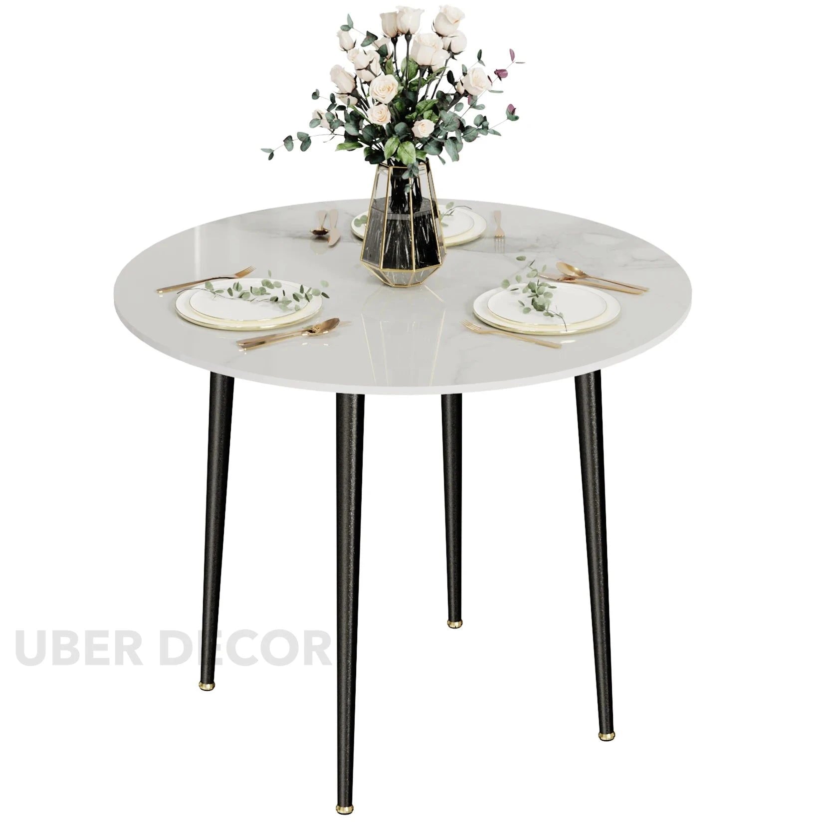Celestia Round Marble Dining Set – Modern European with Custom Stone Top & Upholstery for Dining Room or Balcony Space