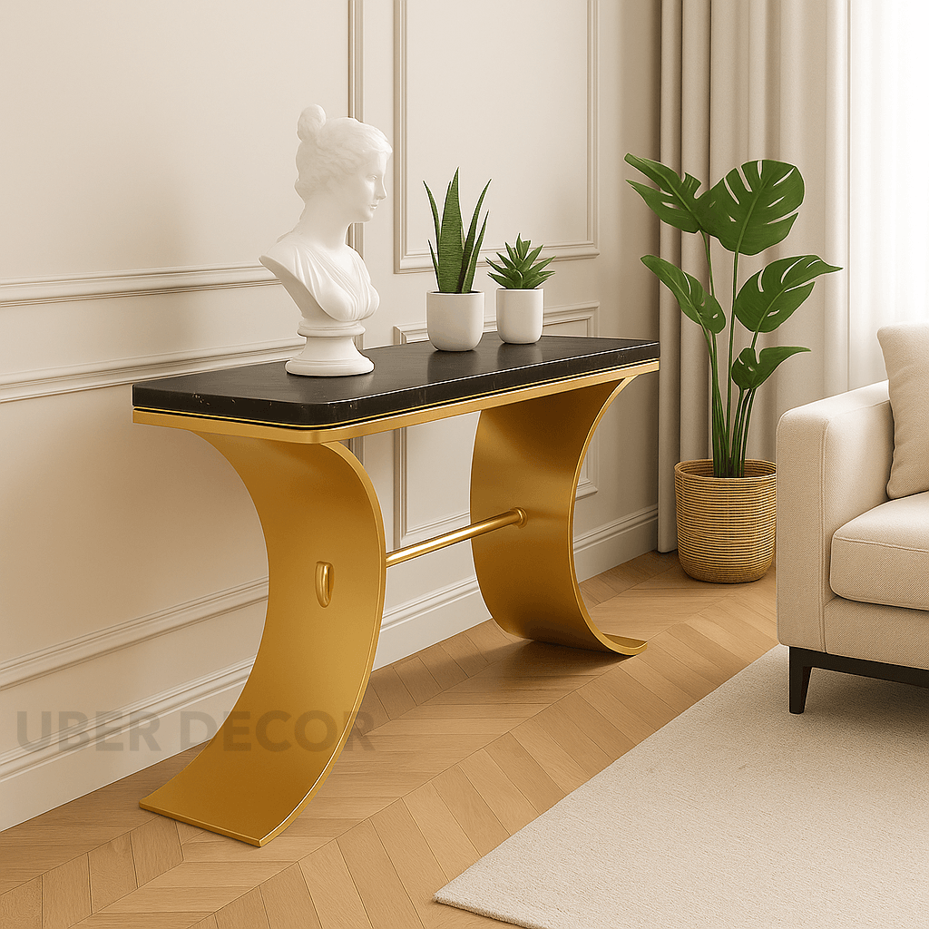 Celestique Curve Console Table – Custom Marble Top with Sculptural Crescent Base Mid‑Century Glam Entry Accent