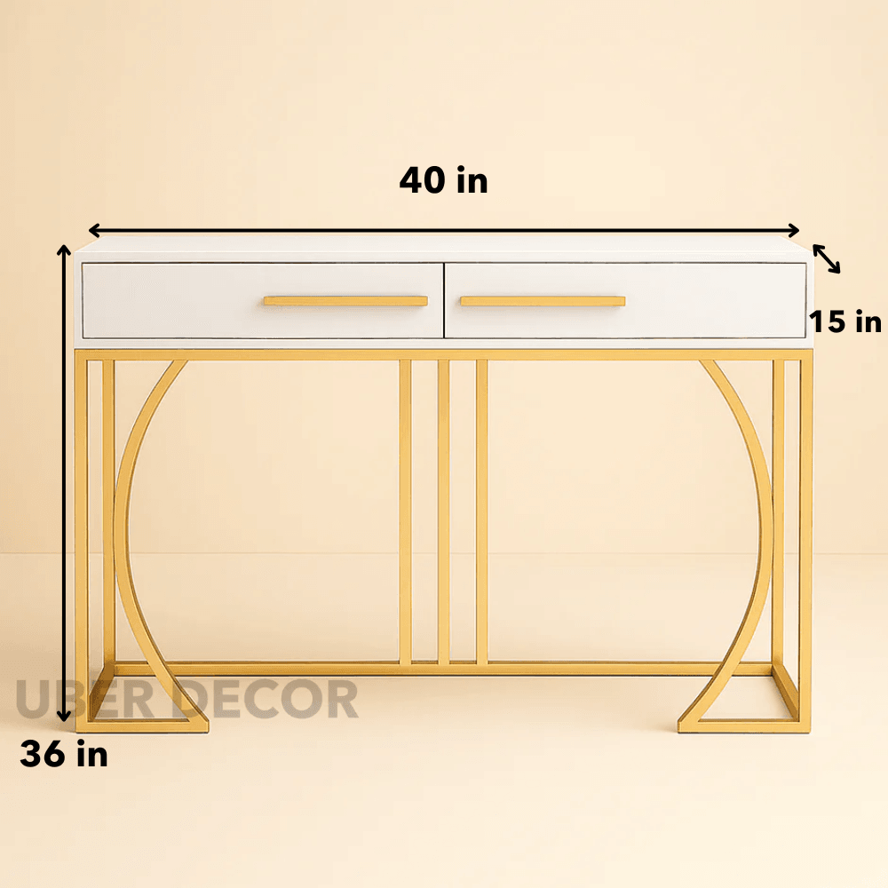 Creston Arc Display Table – White Drawer Top with Gold Sculptural Arch Base Mid‑Century Modern Accent