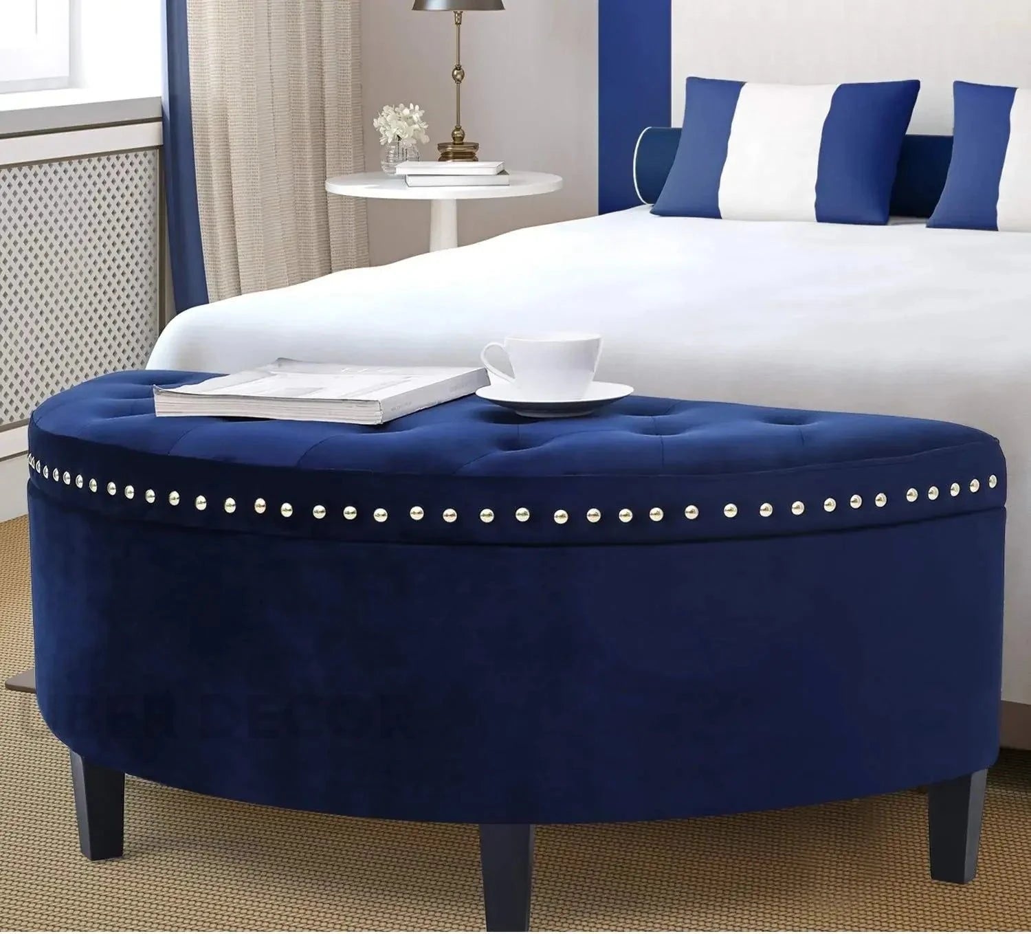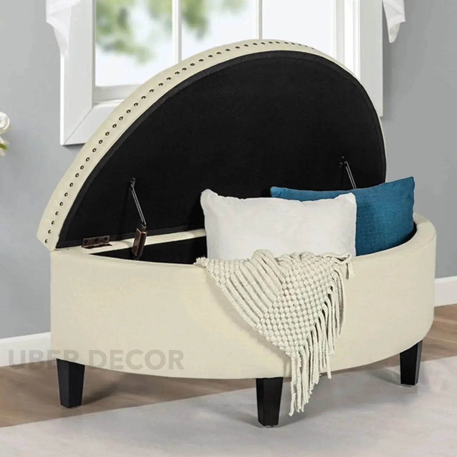 Darian Half Moon Storage Bench with Lift Top Lid – Modern Accent Organizer for Living Rooms, Bedrooms & Dressing Corners