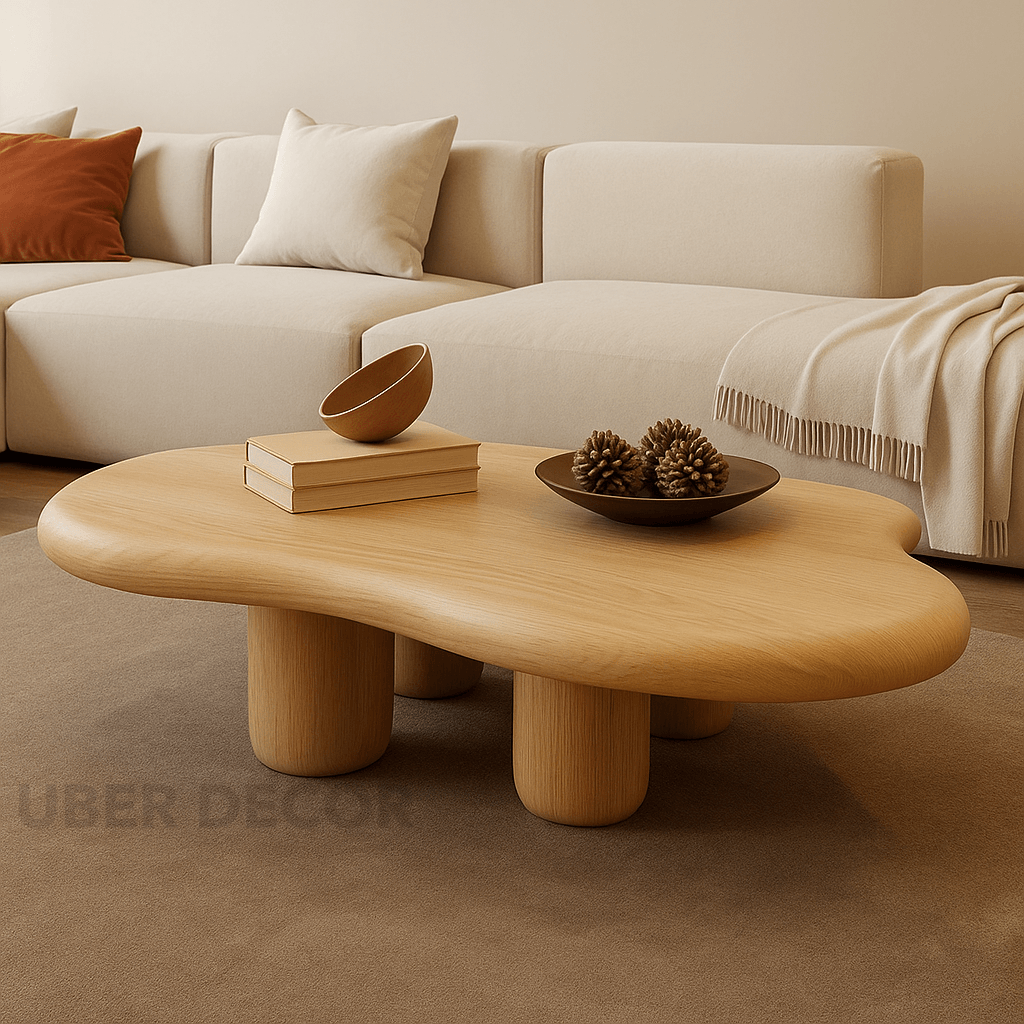 Ebro Drift Modern Cloud Coffee Table – 48.42" Dark Walnut Veneer Top with 4 Solid Wood Legs, Organic Contour – Sculptural Statement for Living Rooms and Tea Corners