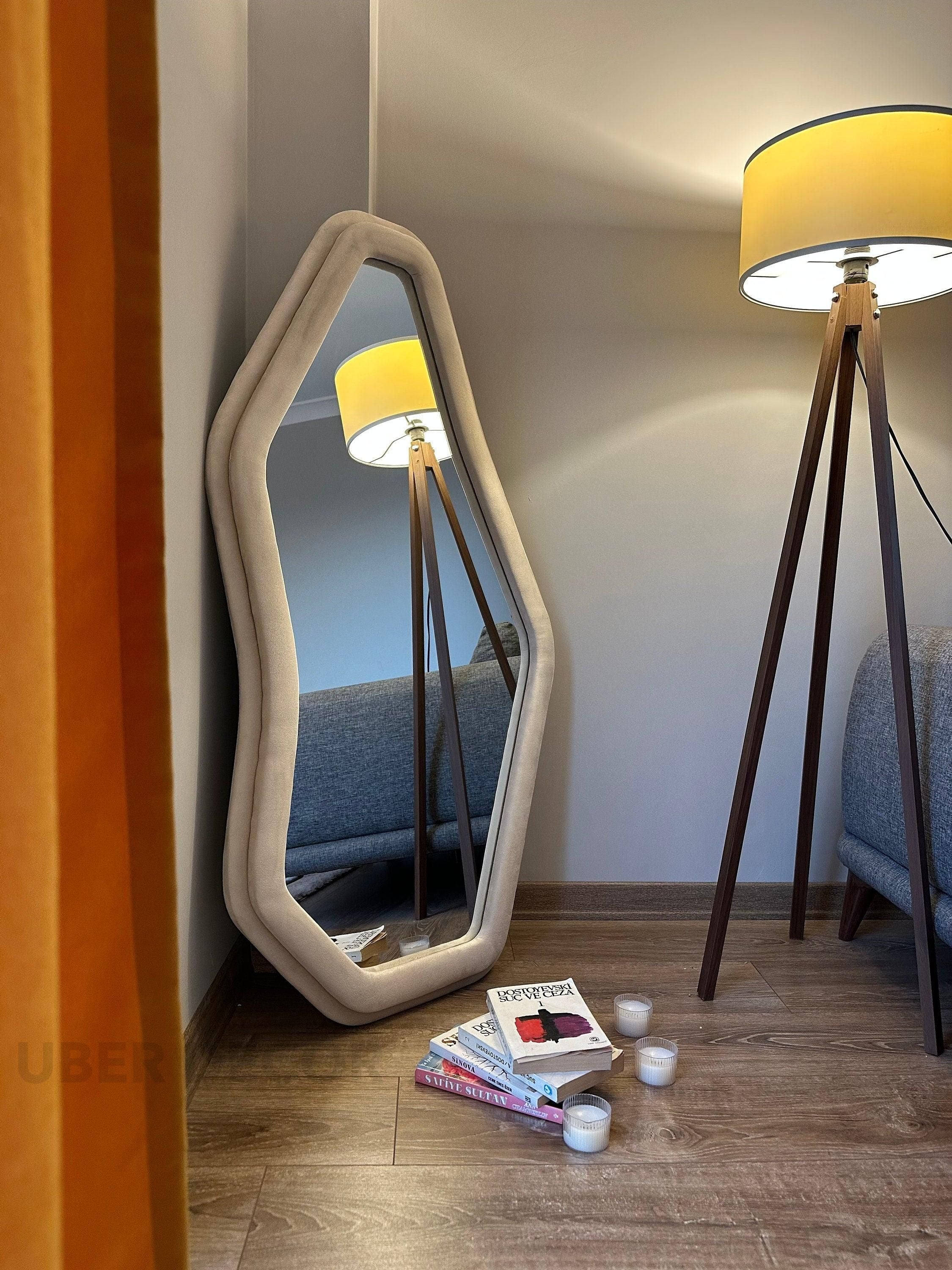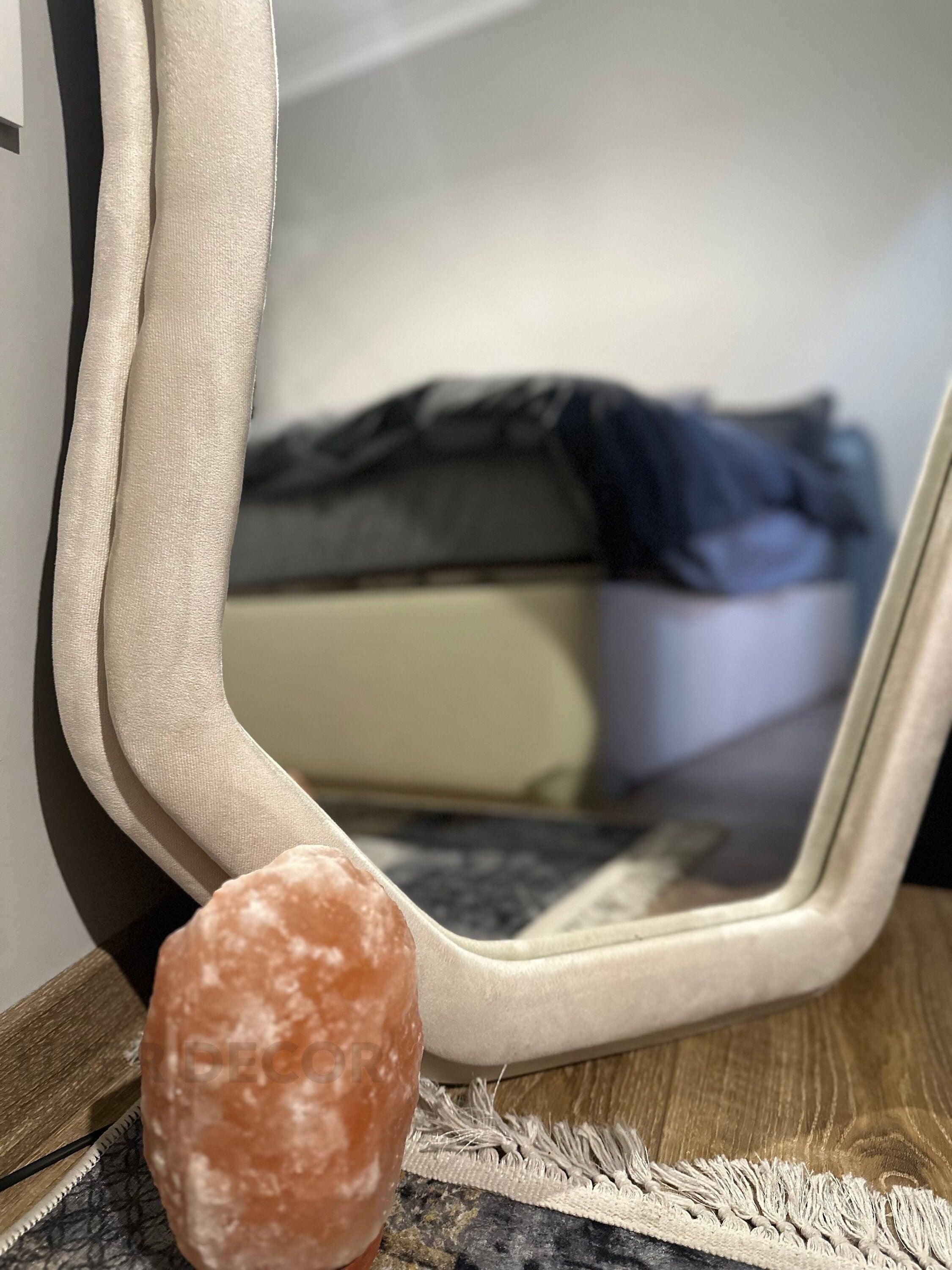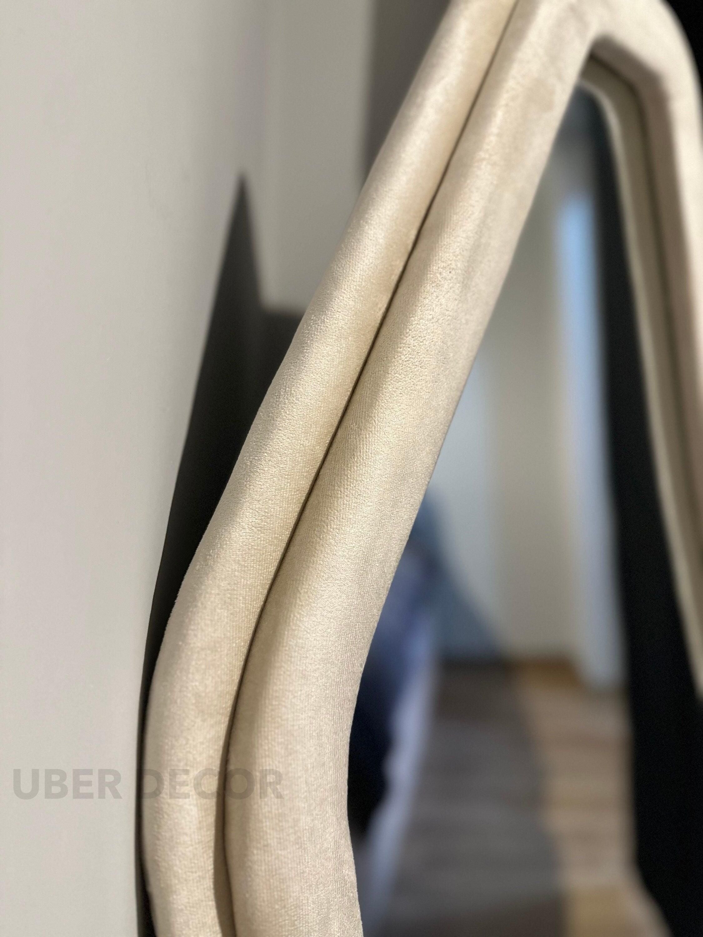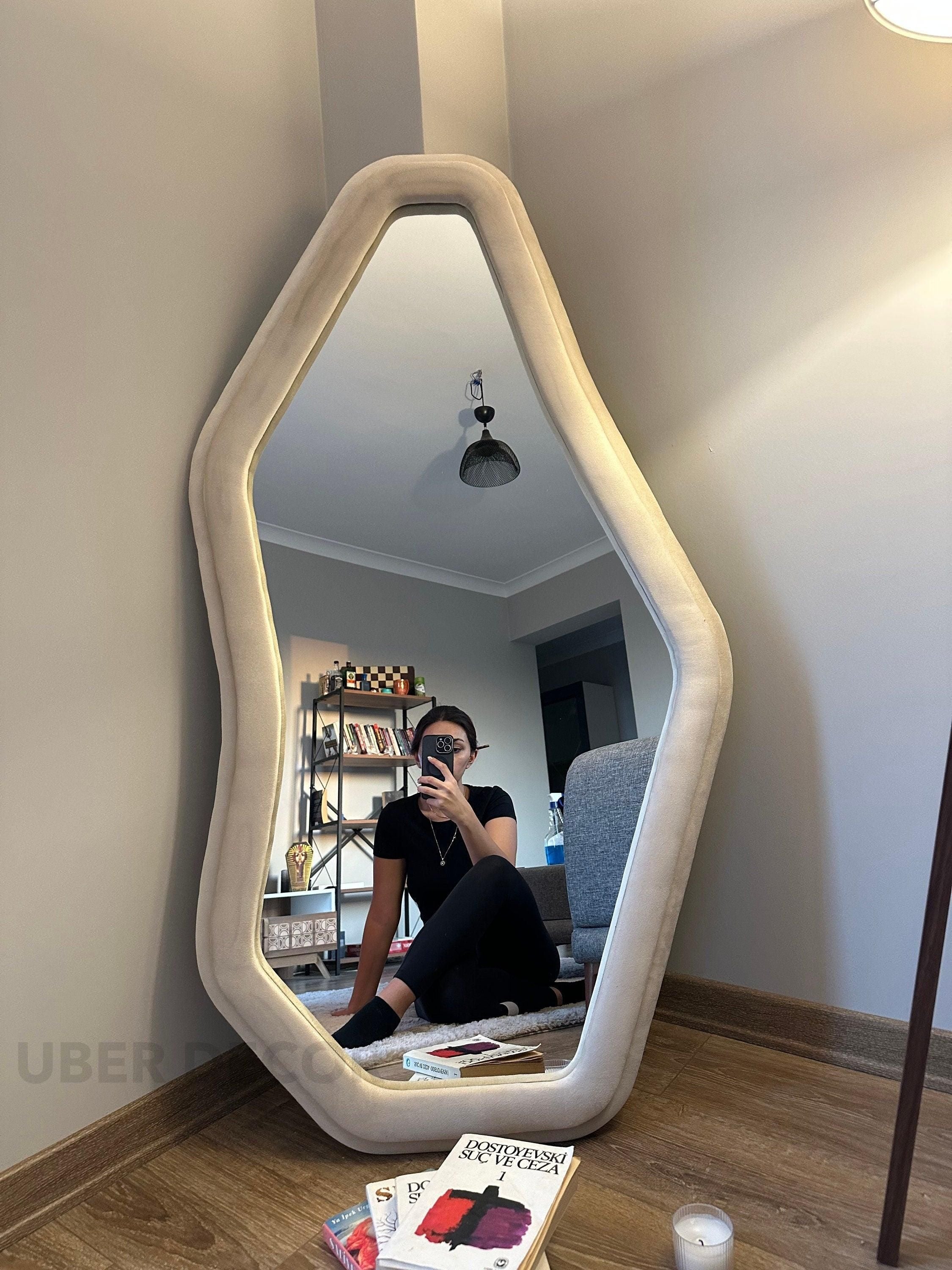 EdgeCraft Irregular Asymmetric Wall Mirror- Suede Velvet Upholstered Frame Fabric Mirror for Bedroom