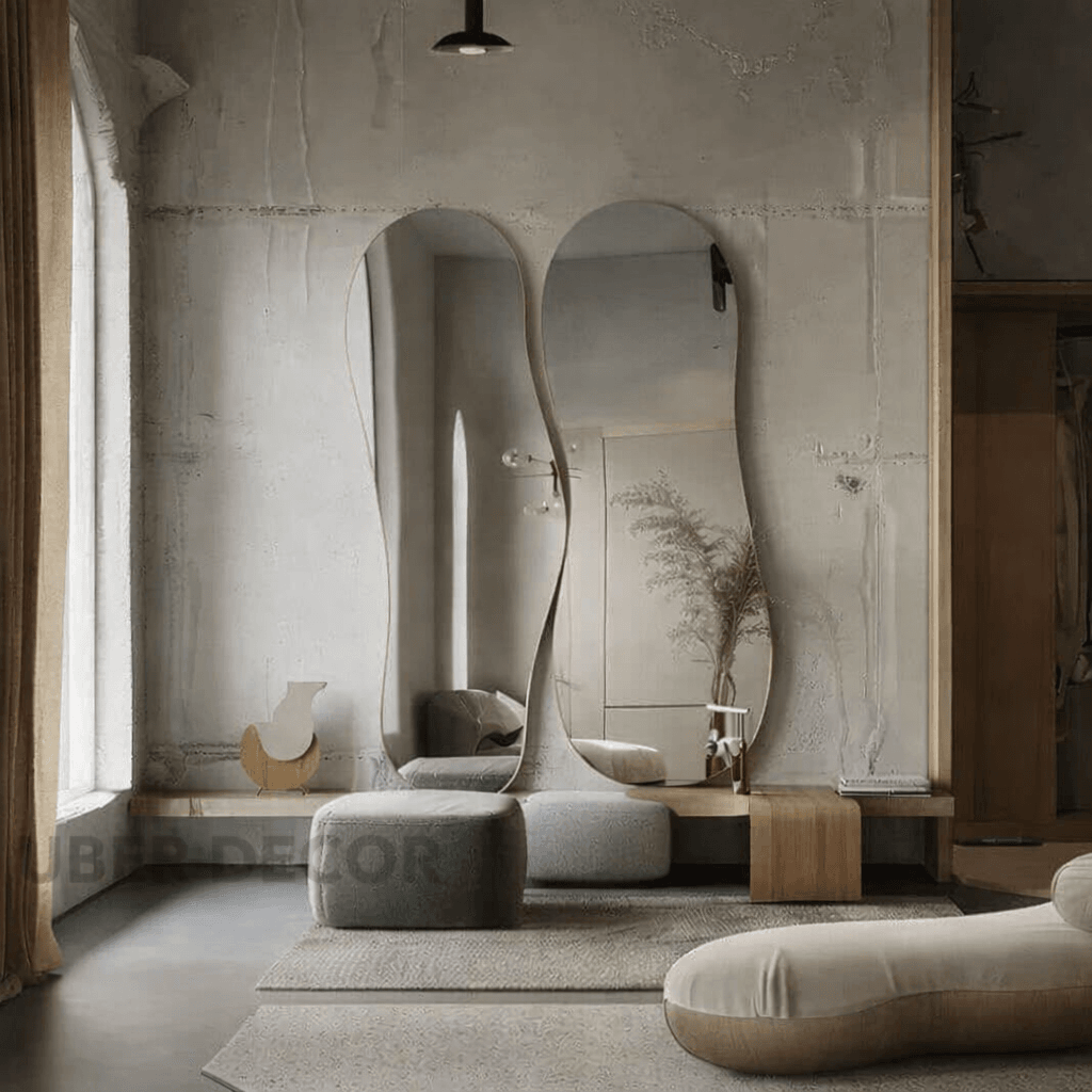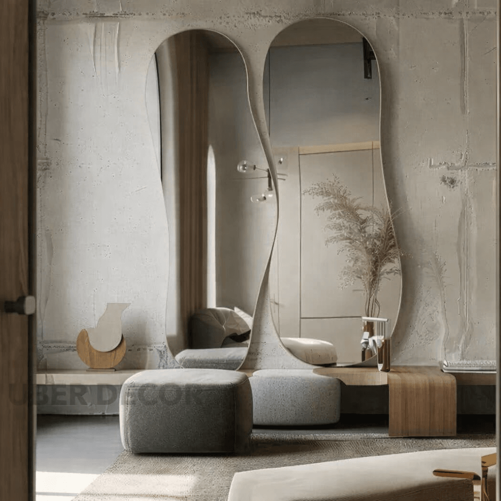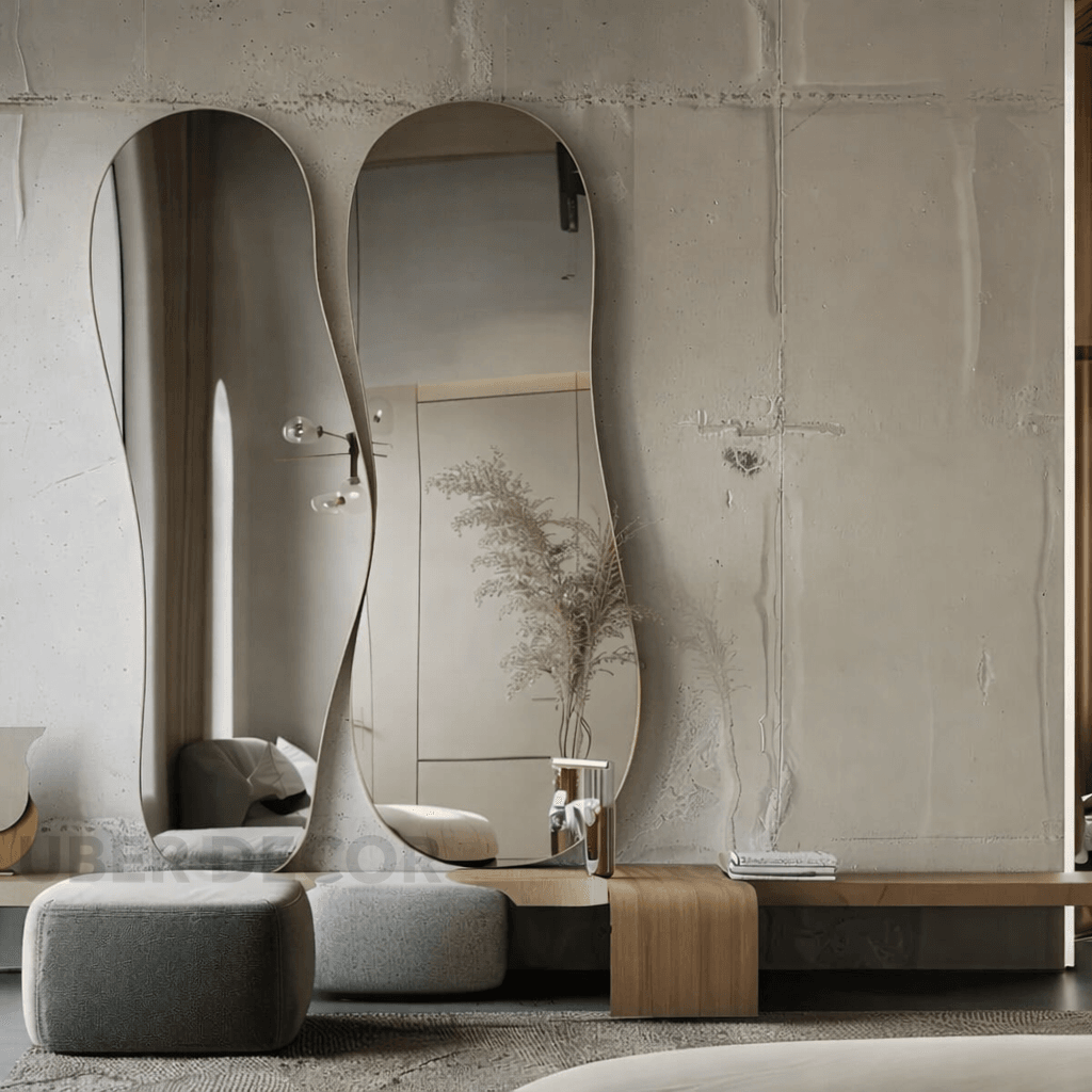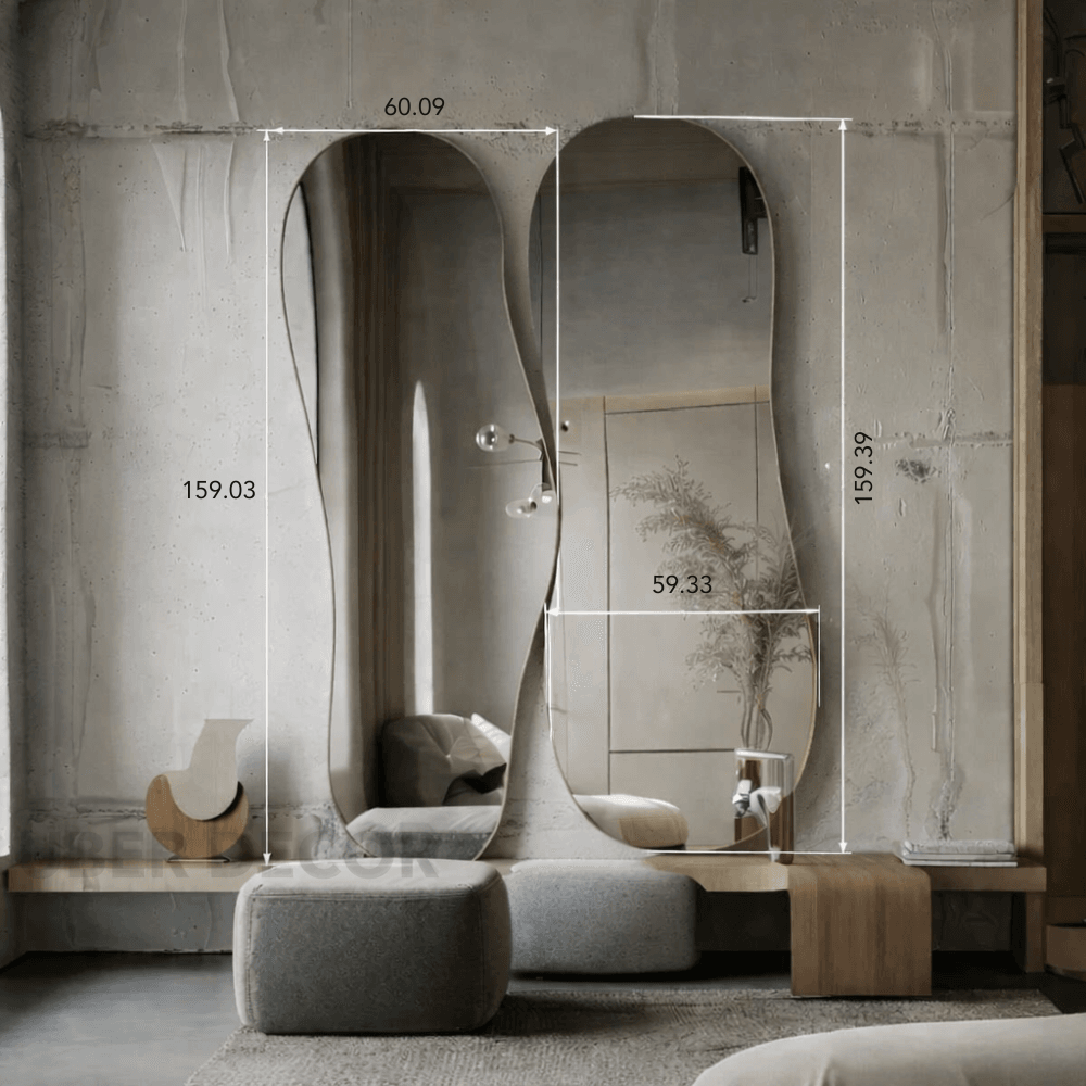 Elixor Frameless HD Mirror Set of 2 - Asymmetrical Wall Mirror Sculptural Modern Design Custom Home Decor Gift