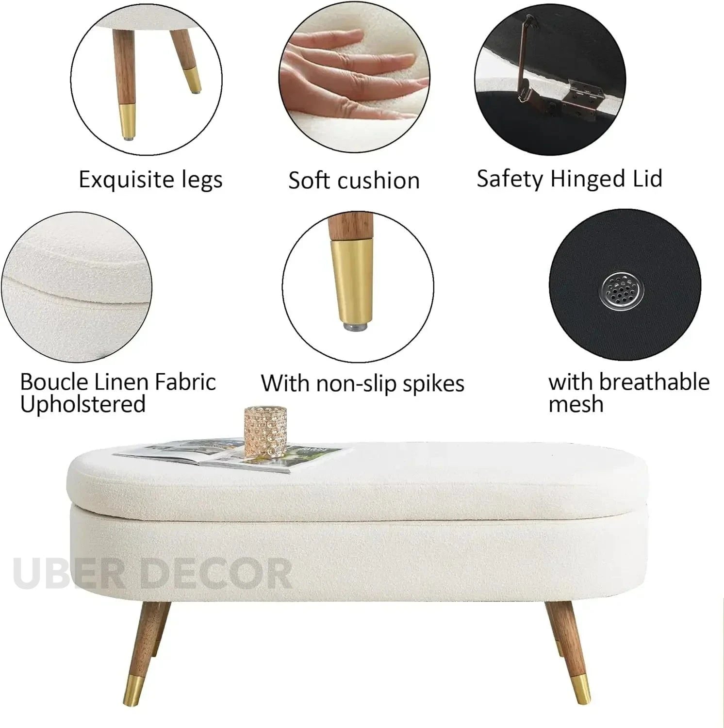 Elora Oval Storage Bench with Lift Top Lid
