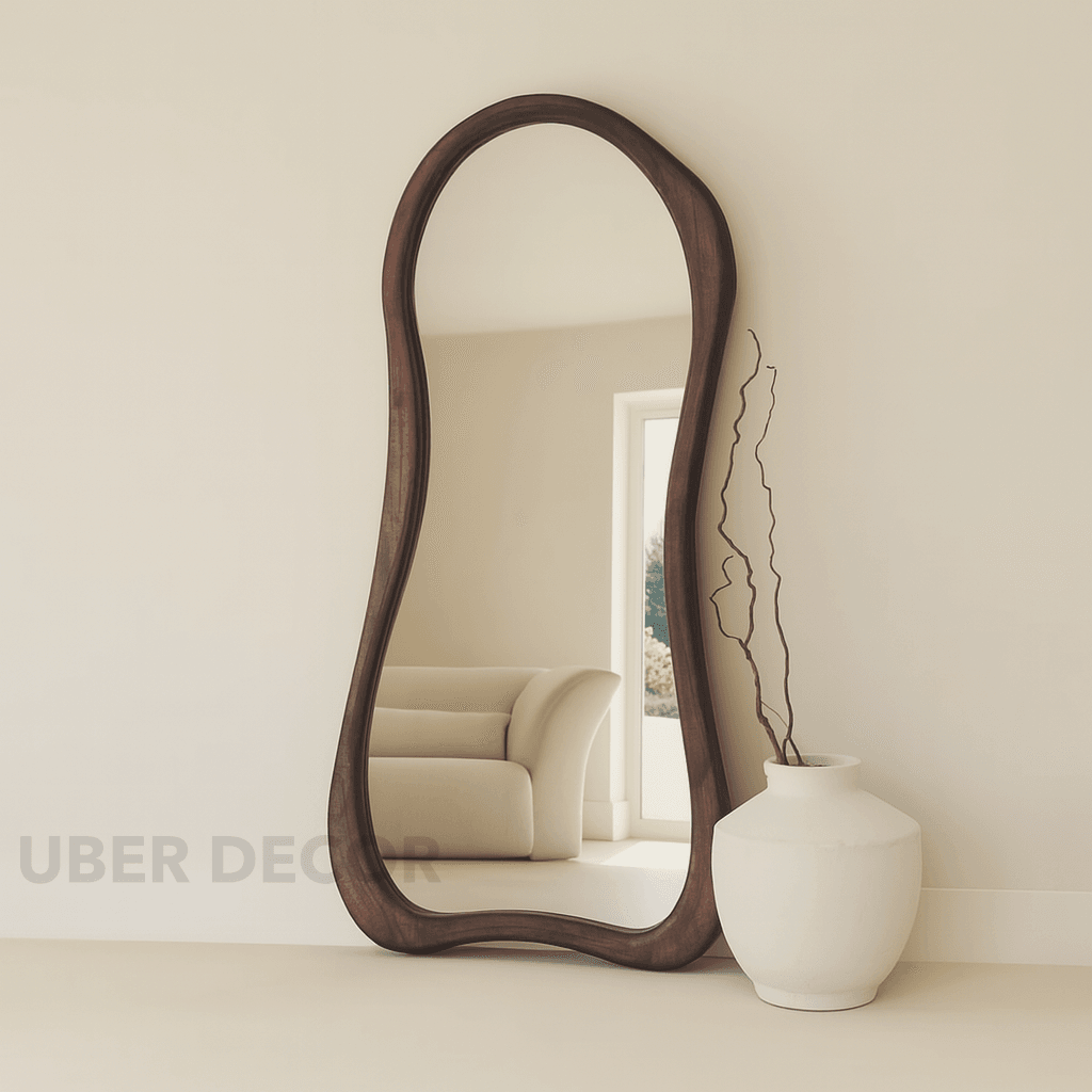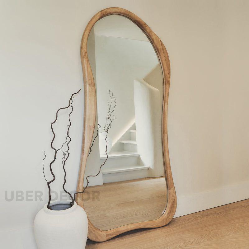 Elowen Wavy Teak Floor Mirror – Organic Freeform Full-Length Mirror