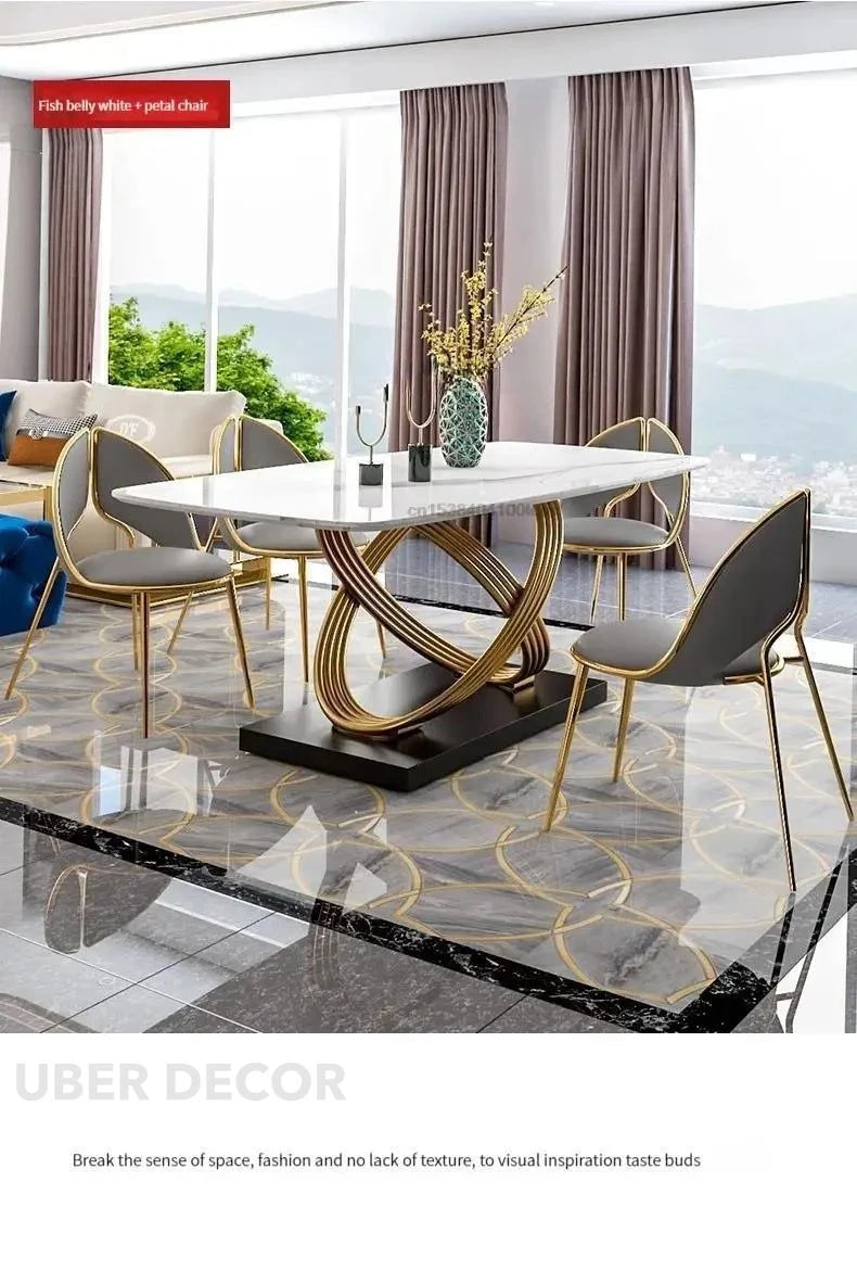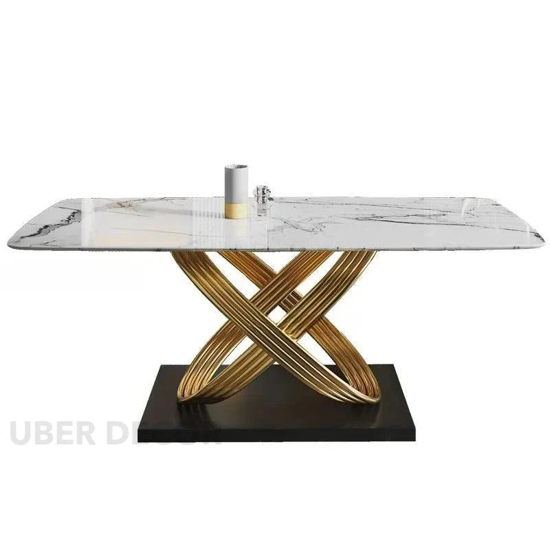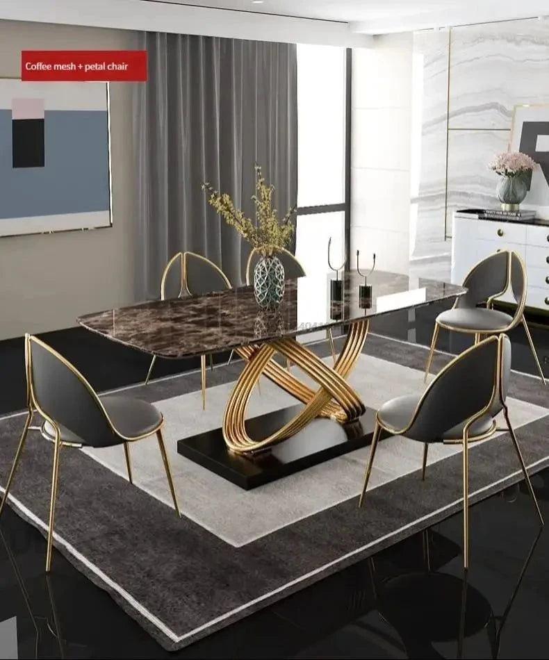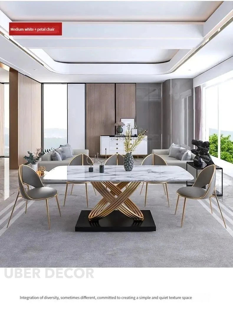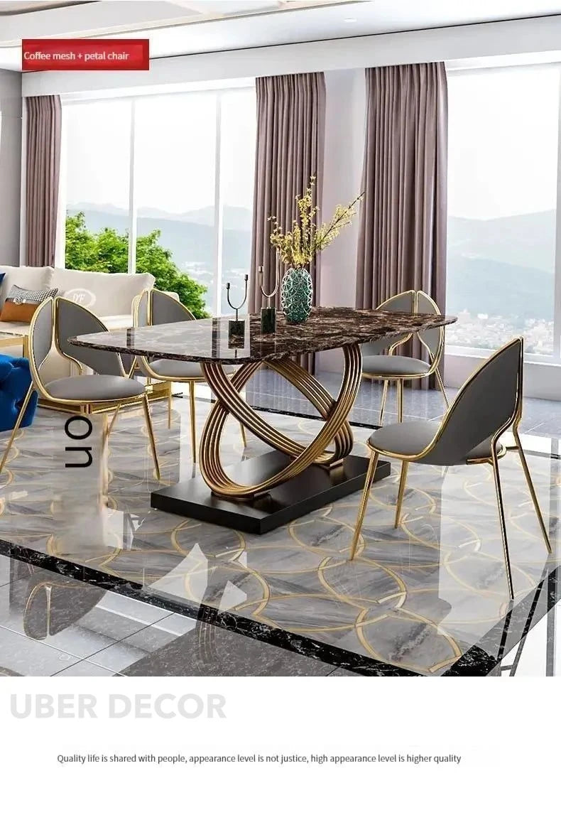 Eterna Loop Modern Luxury Marble Dining Set – Contemporary European with Custom Stone Top & Gold Accents for Dining Room or Formal Hall