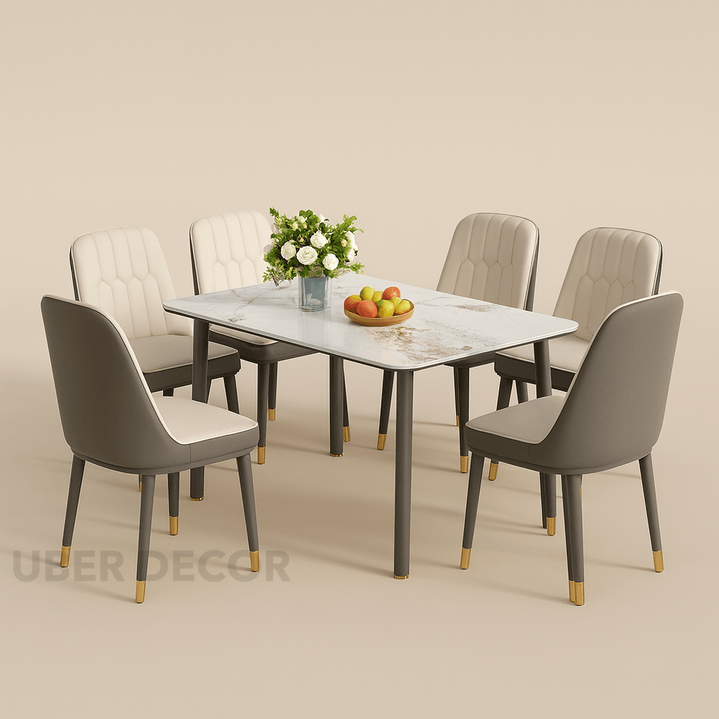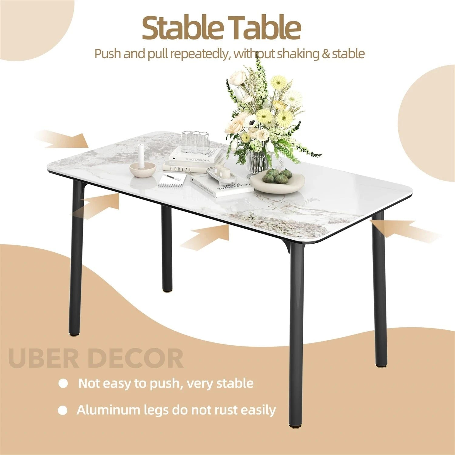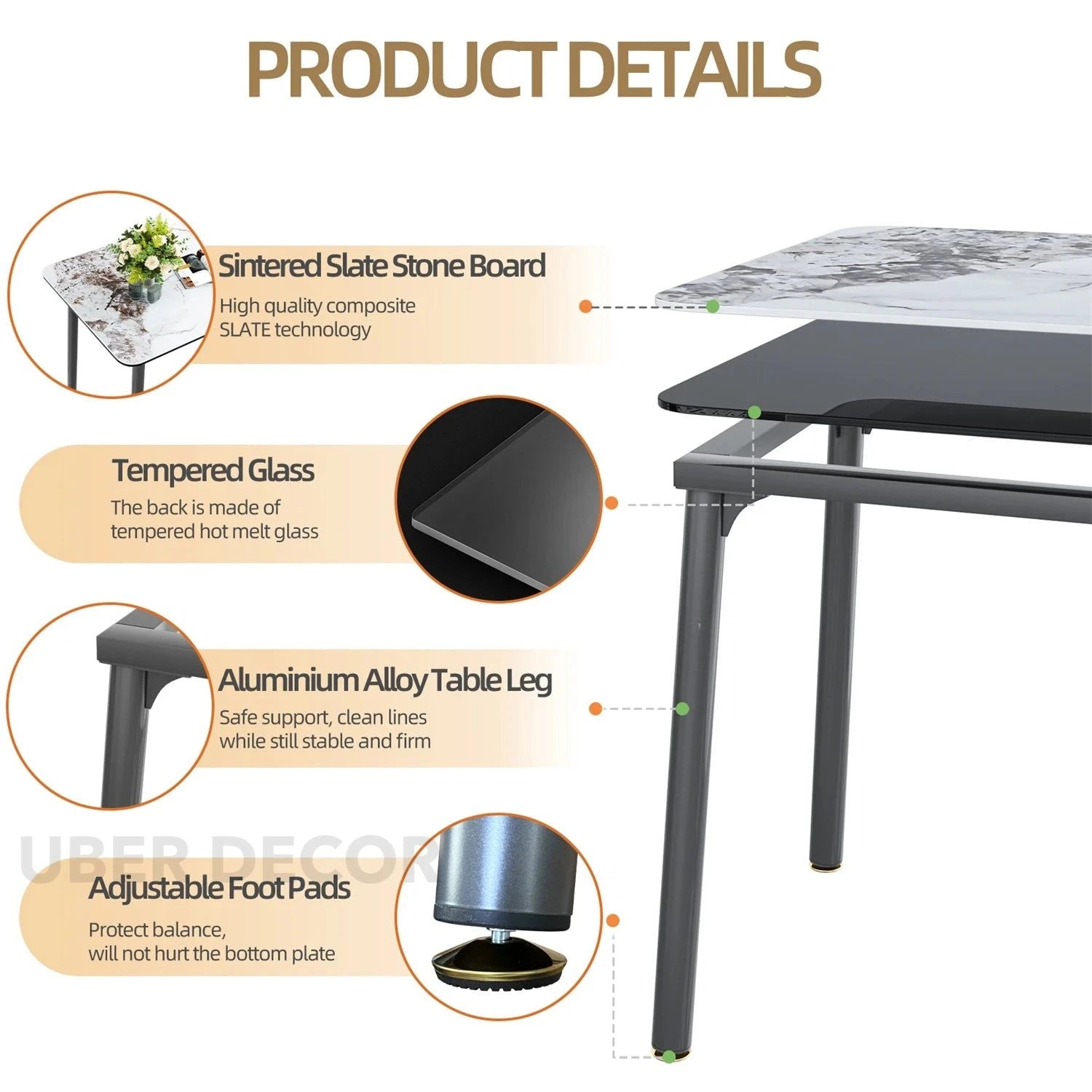 Harborstone Mid-Century Modern European Dining Set – Marble-Inspired Table for Dining Room & Kitchen Spaces