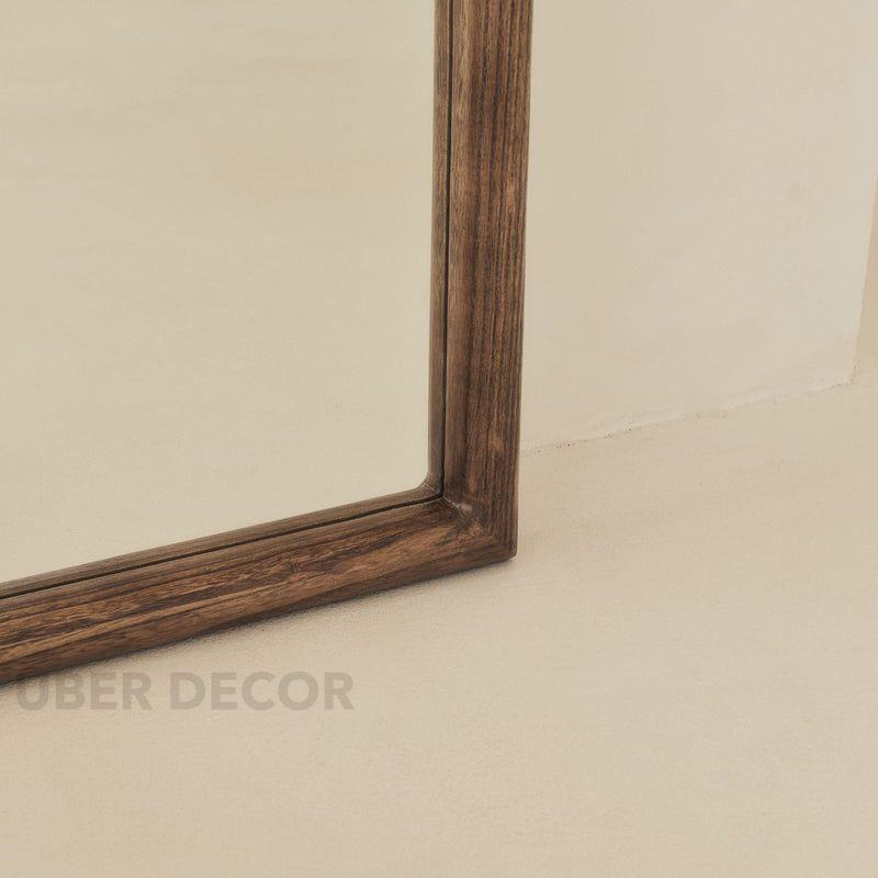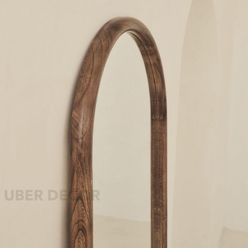 Hazel Arched Teak Wood Floor Mirror – Slim Full-Length Mirror for Bedroom & Entryway