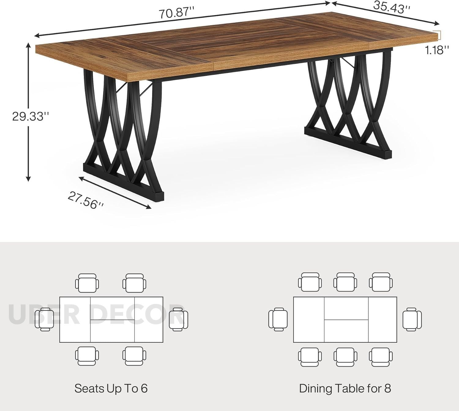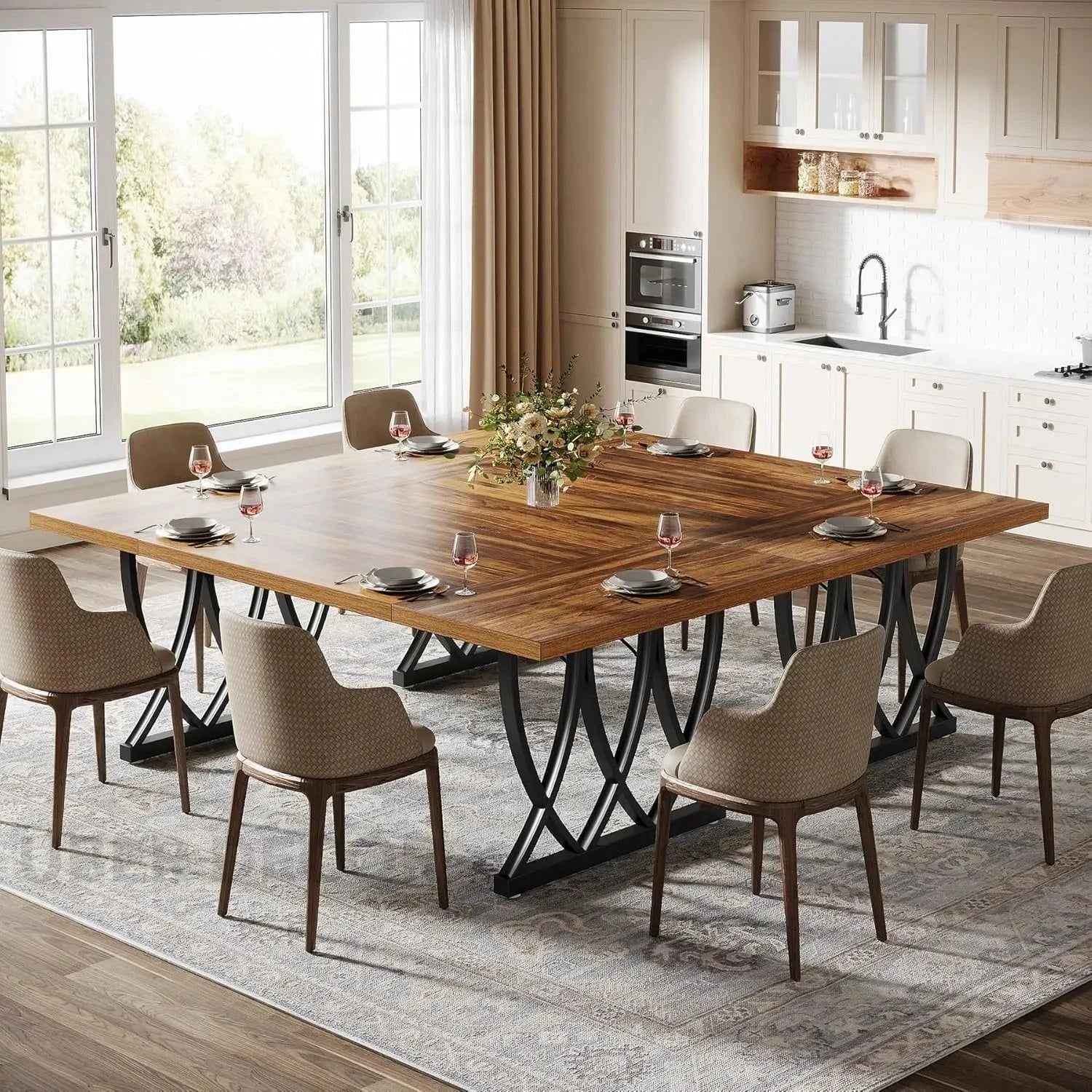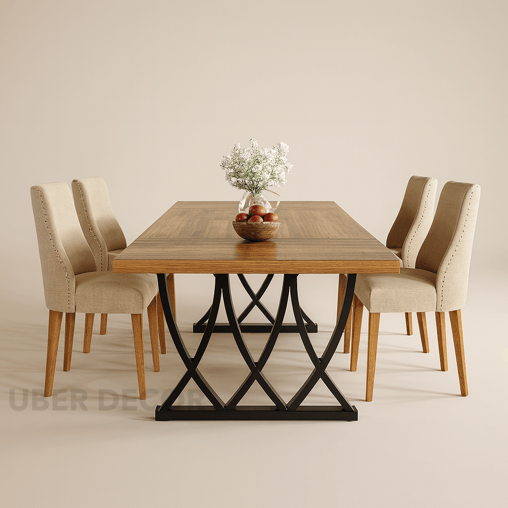 Ironwood Rustic Modern Dining Set – Custom Solid Wood Top with Metal Base for Dining Room or Formal Hall, Seats 6–8 People