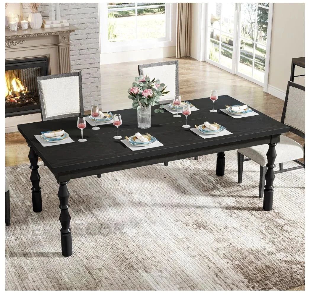 Kingsford Charm Classic Dark Wood Dining Table Set with Turned Legs and Upholstered Chairs for Formal Dining Room