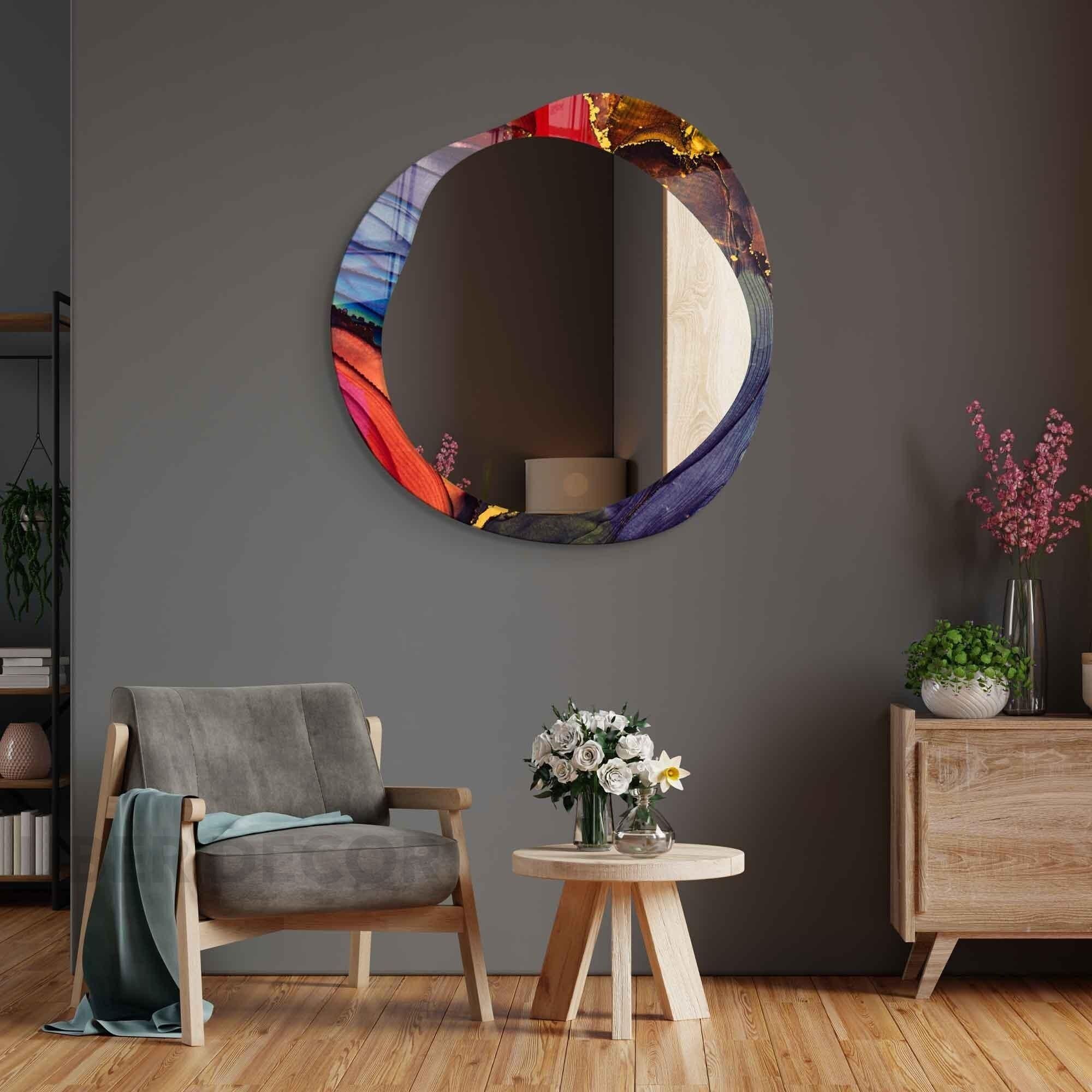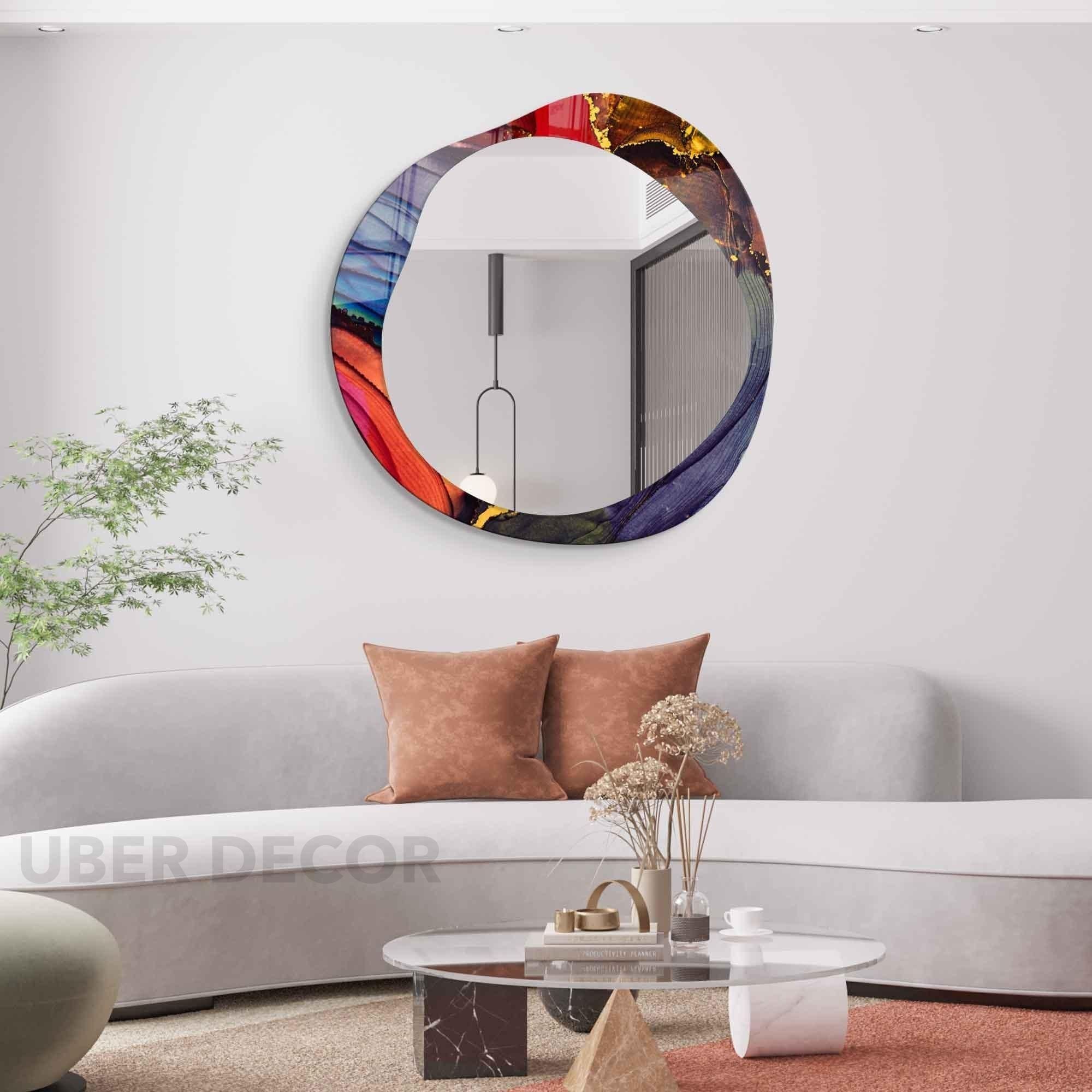 Layla Marble Printed Asymmetric Wall Mirror - Tempered Glass Printed Wall Mirror
