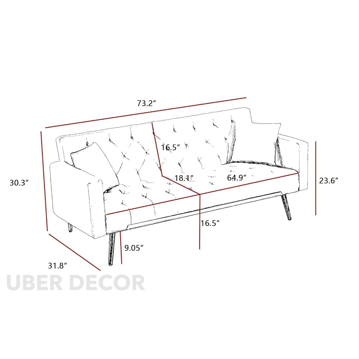 Lisbon 71" Futon Sofa- Modern Tufted Convertible Futon Couch with 3 Adjustable Backrest & and Gold Metal Legs