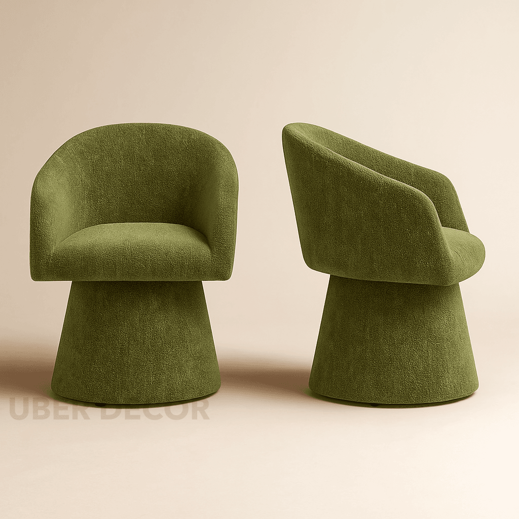 Lumi Modern Barrel Chair with Curved Silhouette and Sculptural Base Ideal for Living Room Lounge or Dining Spaces