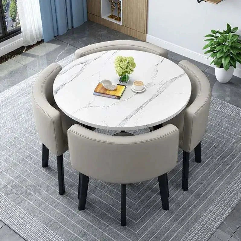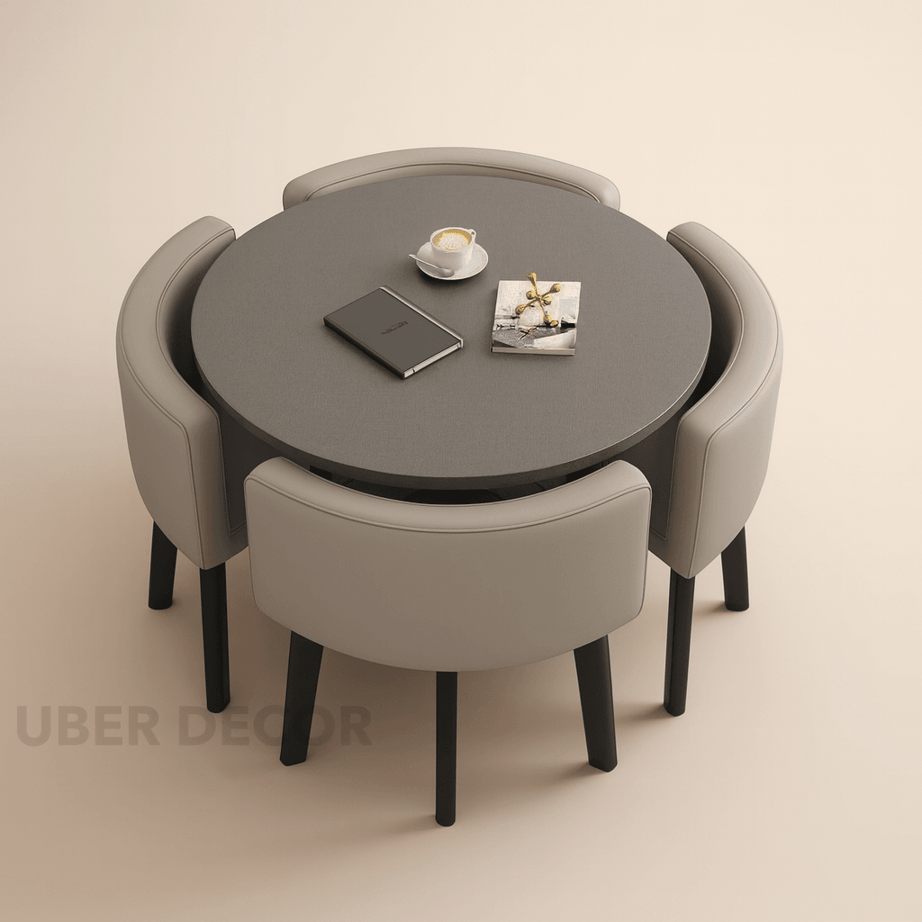 Luna Compact Modern Round Dining Set – Contemporary Scandinavian with Custom Stone Top & Upholstery, 4 Seater for Kitchen or Small Dining Room