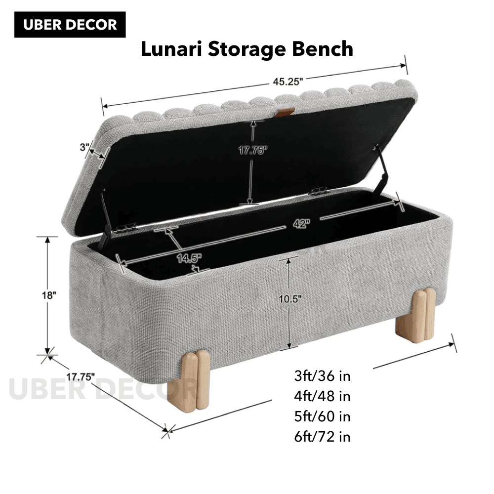 Lunari Wavy Minimalist Flip Top Storage Bench – Scandinavian-Inspired Organizer for Entryways, Bedrooms & Compact Living Spaces