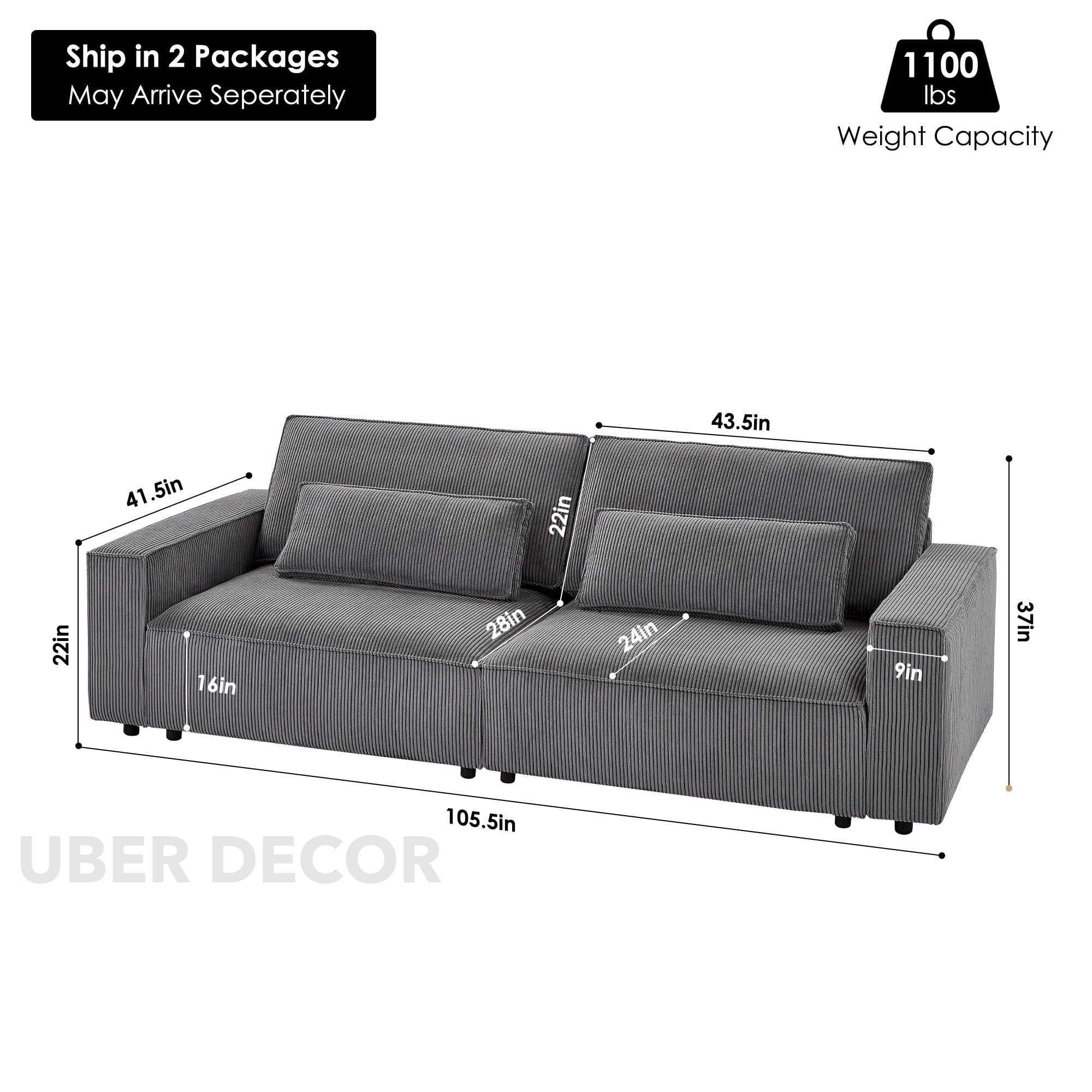 Lunesso Modern 2‑3 Seater Corduroy Sofa
