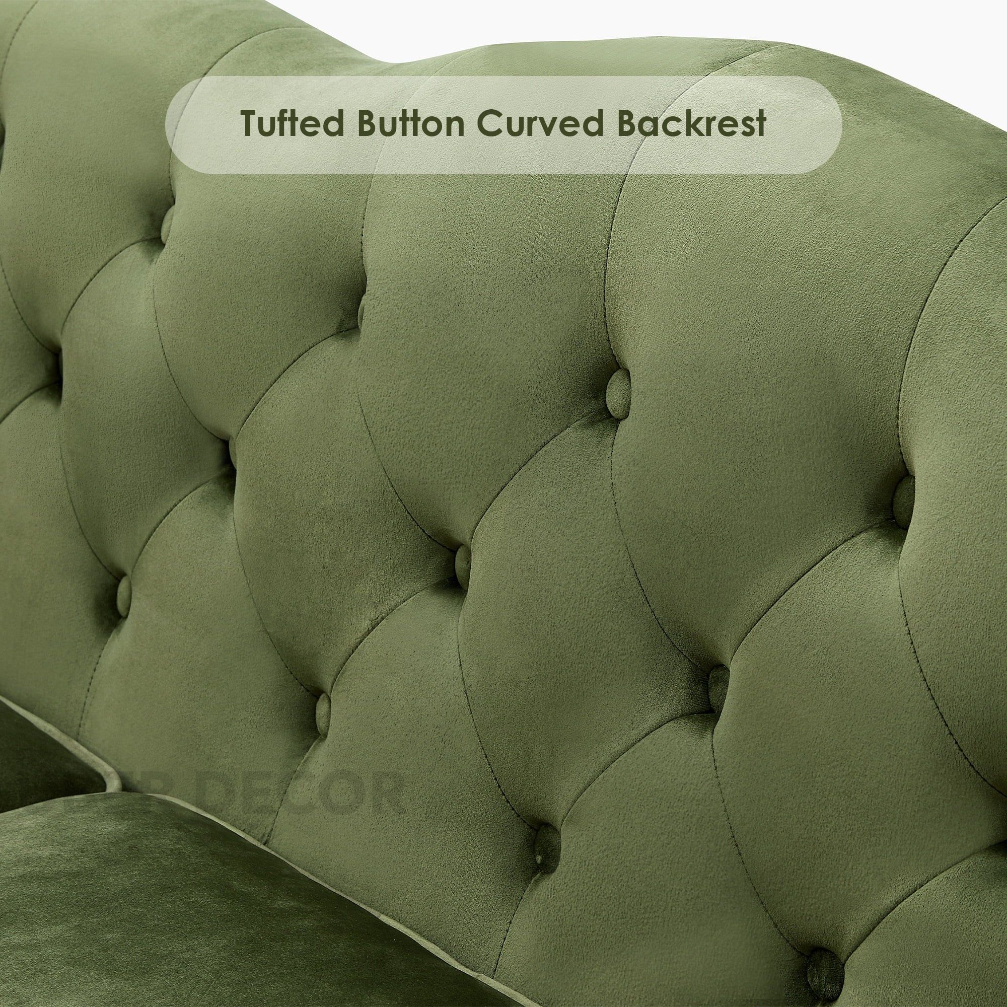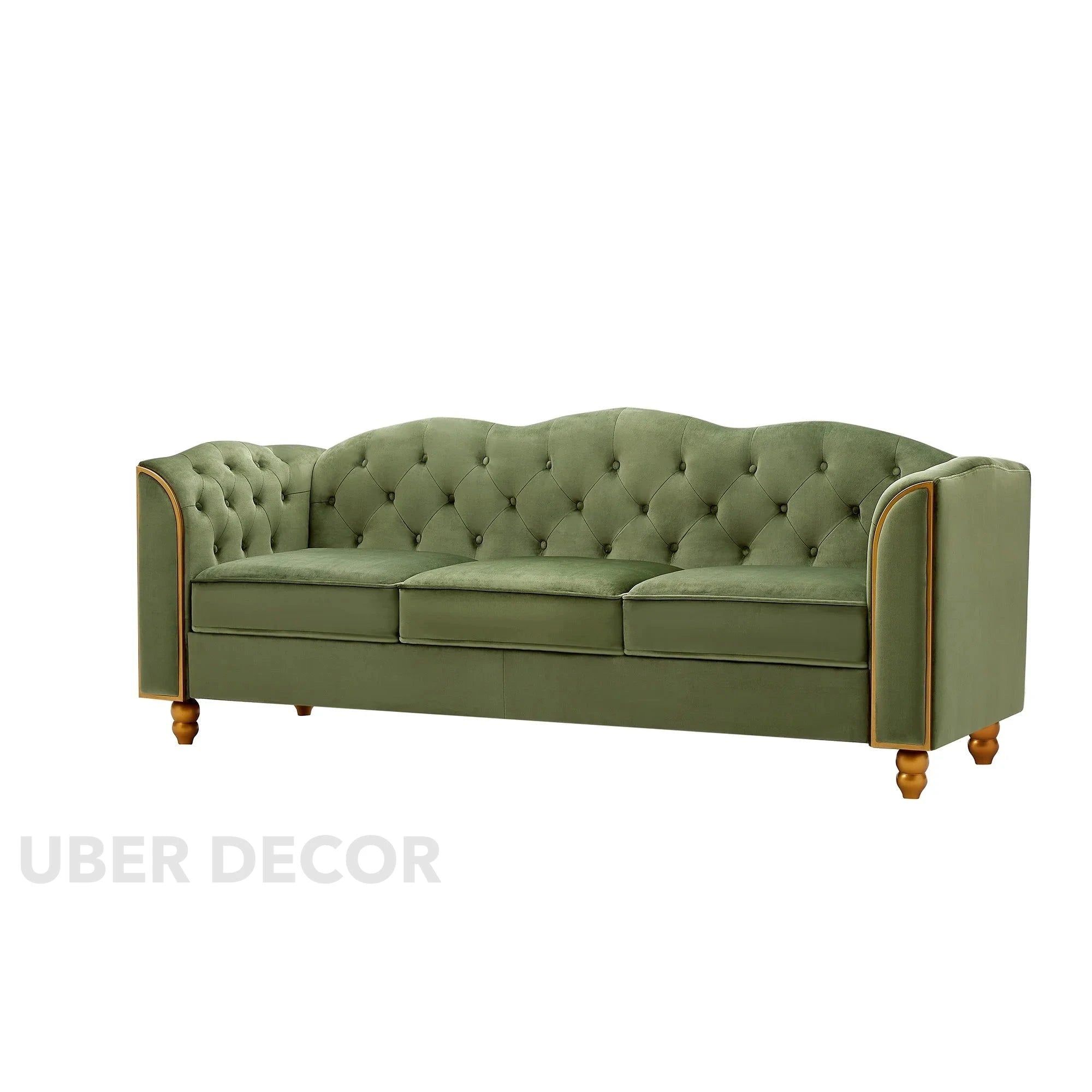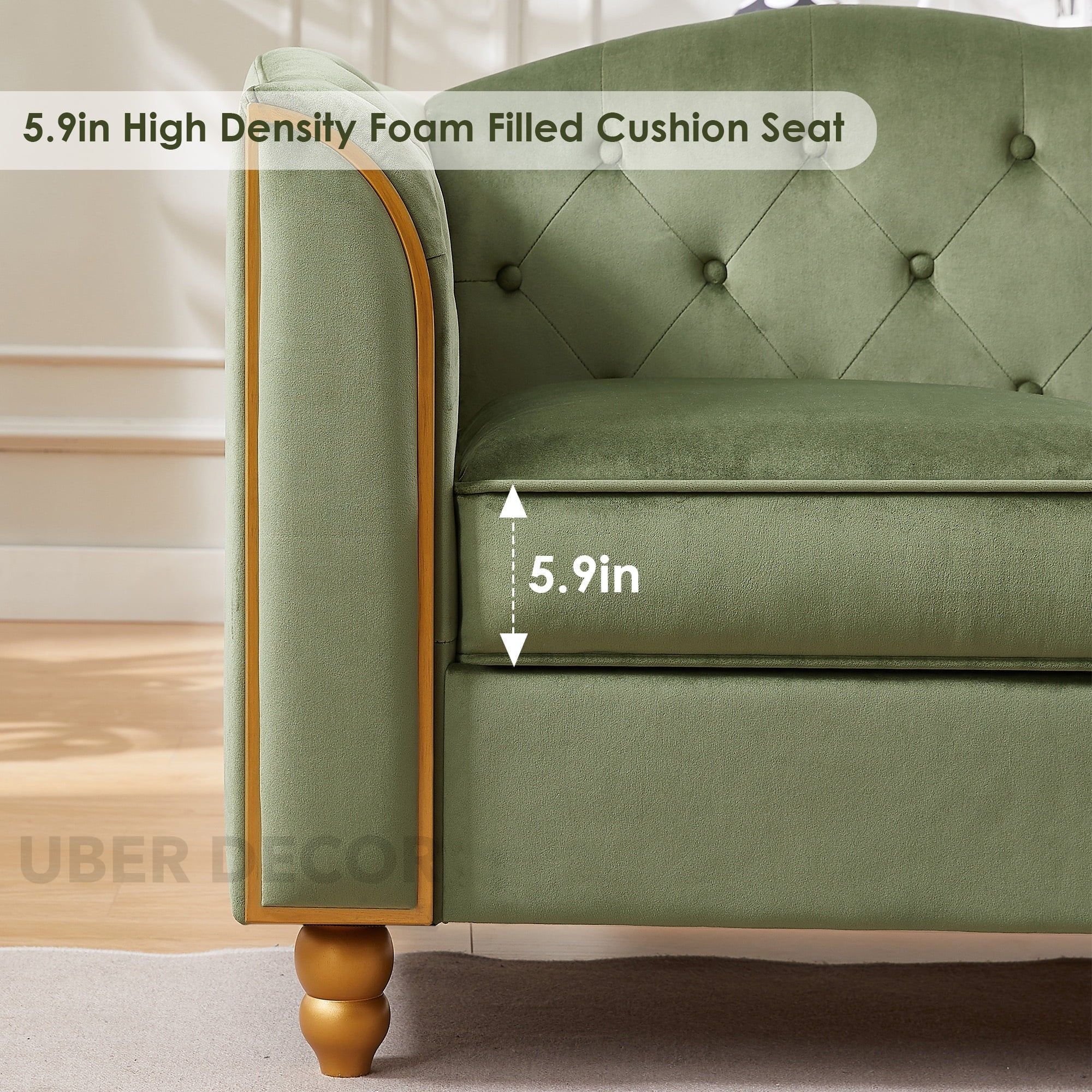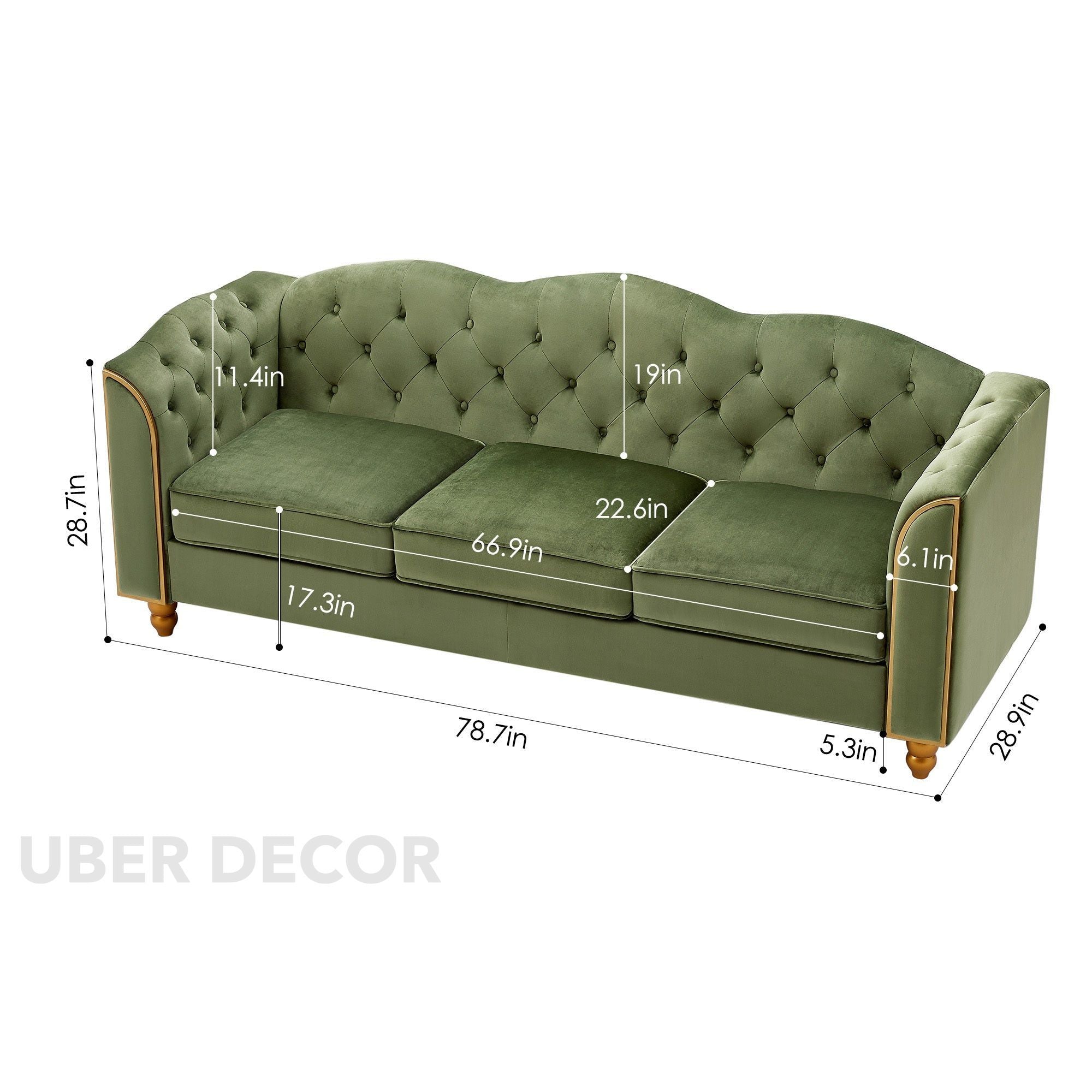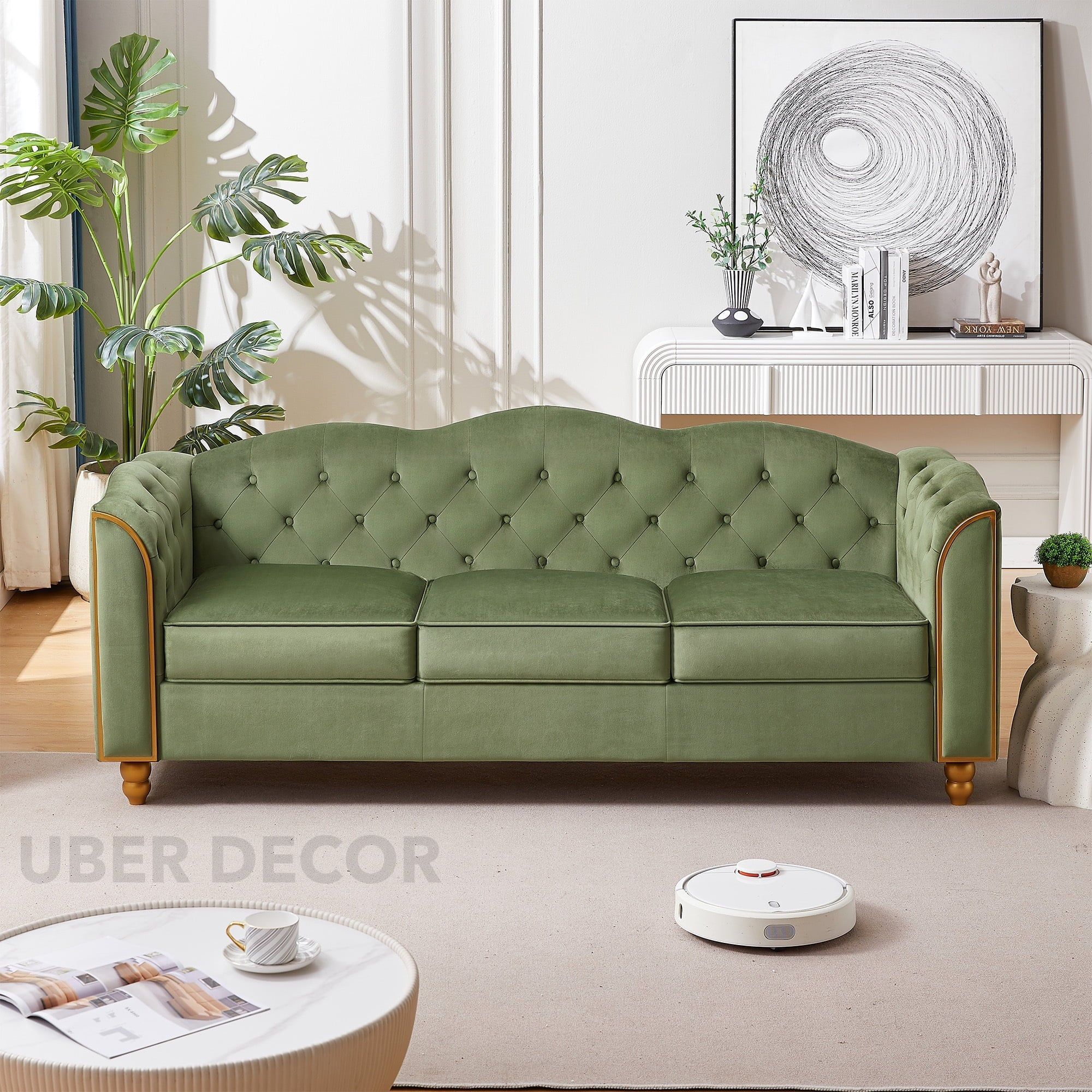 Madrid 78" Sofa -3 Seater Modern Large Upholstered Couch with Tufted Button Curved Back Rest & Golden Wood Legs