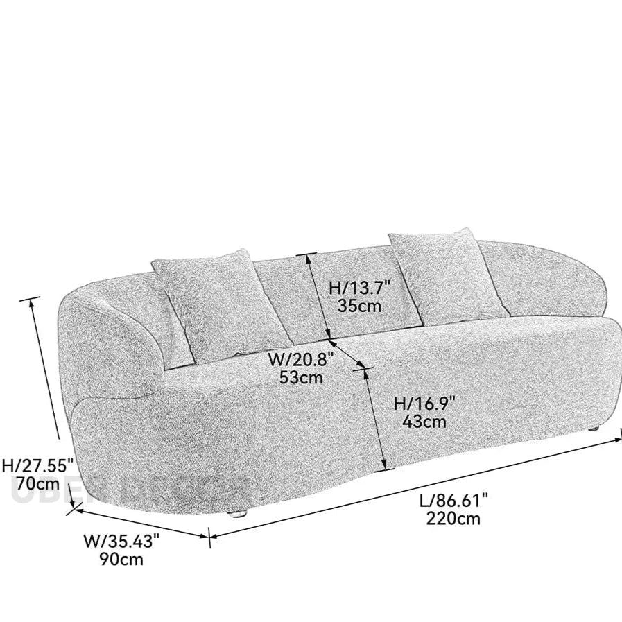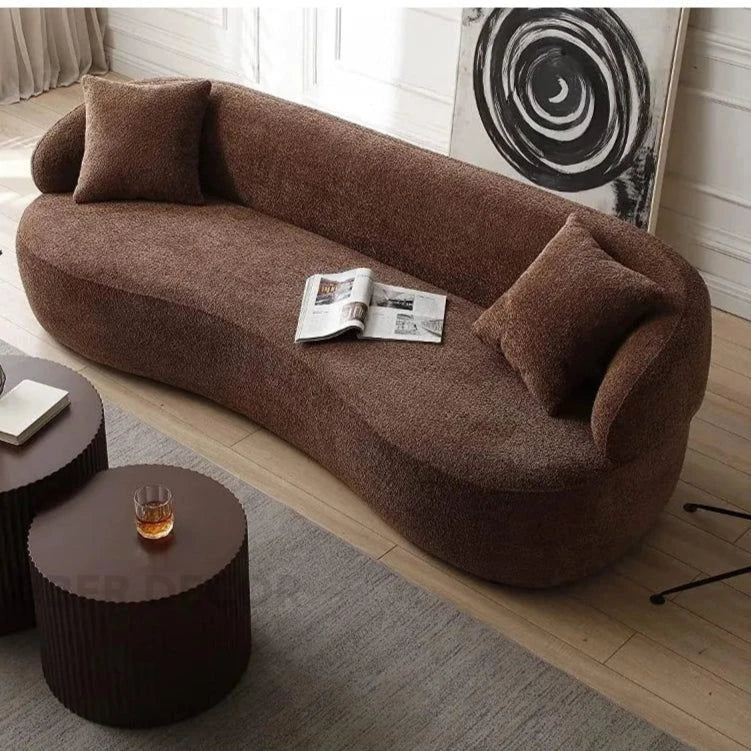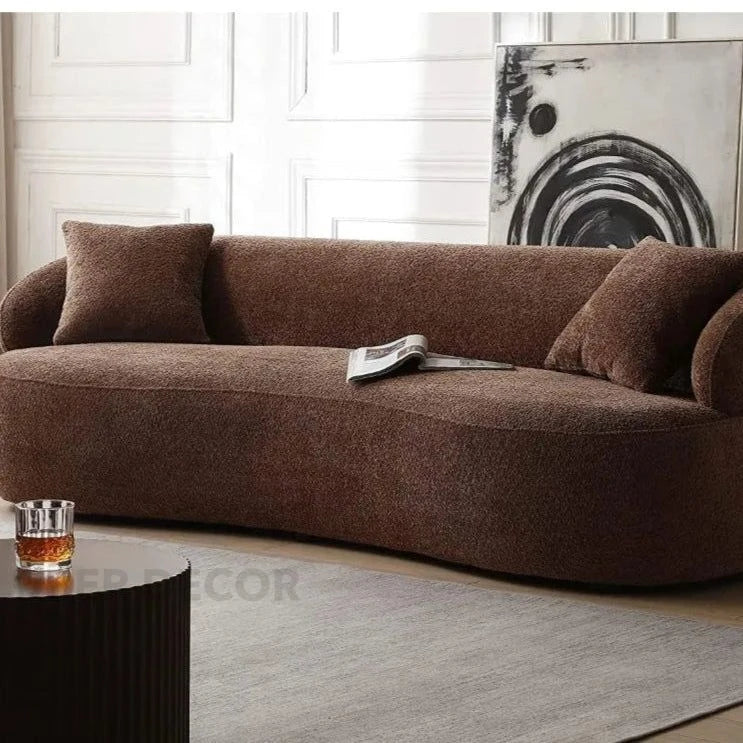Malaga Curved Sofa- Mid Century Modern Curved Back Upholstered Boucle Sofa for Living Room