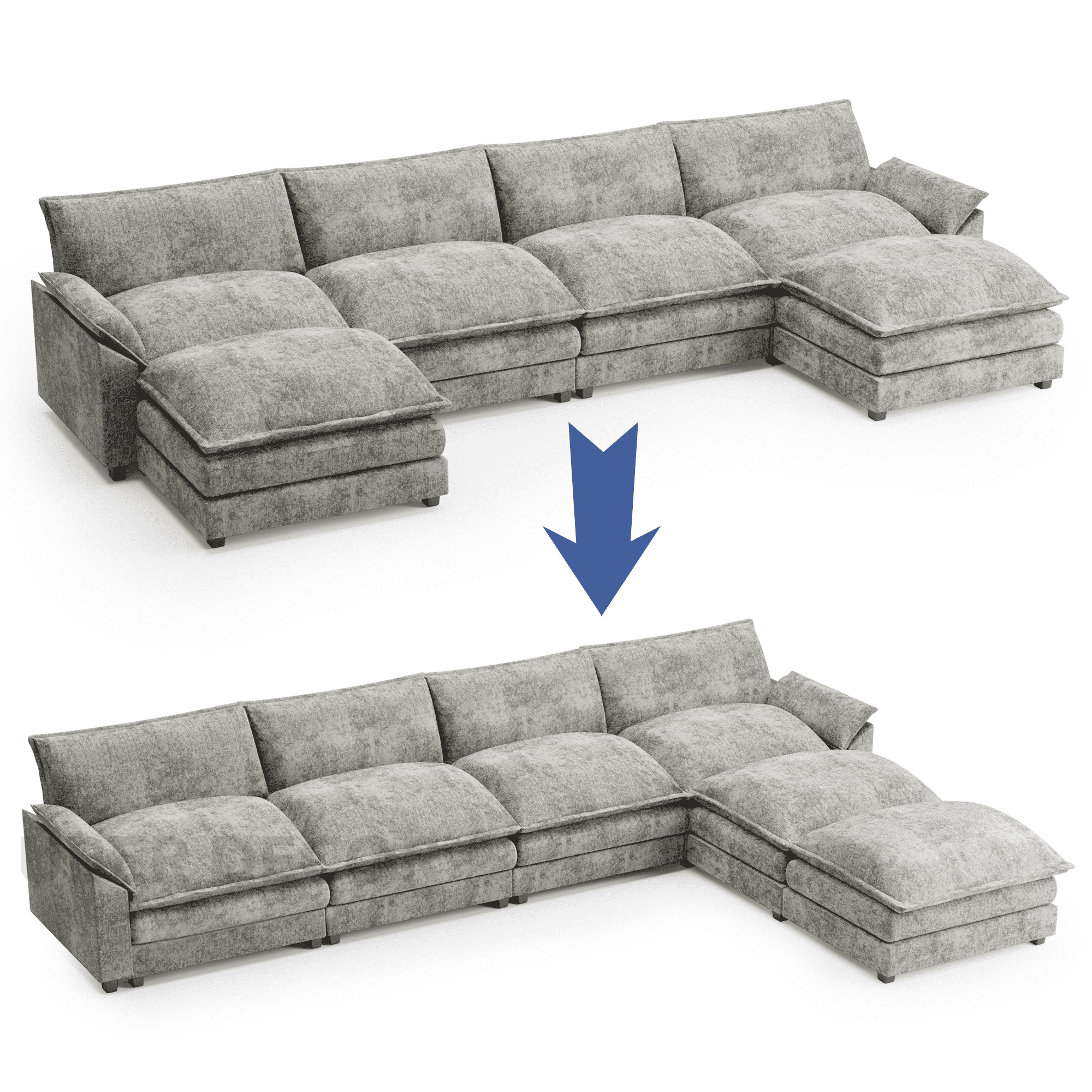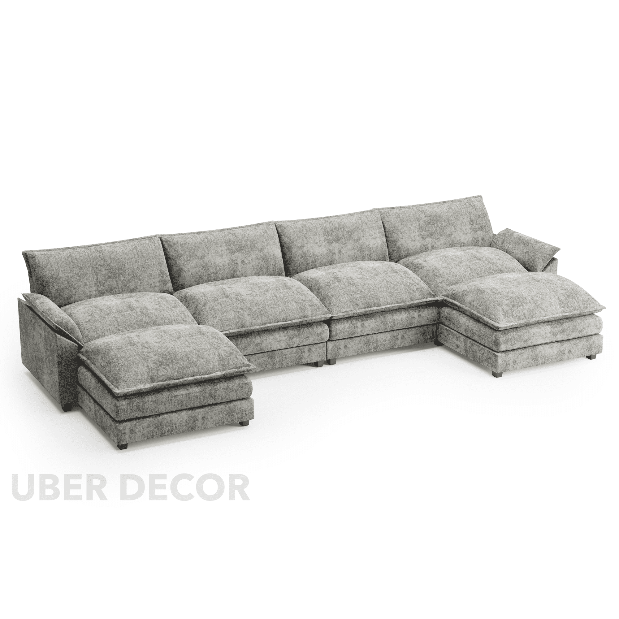 Manila 158" U-Shaped Sofa- 4 Seater Sectional Sofa with Reversible Toffee Chair & Movable Footrest