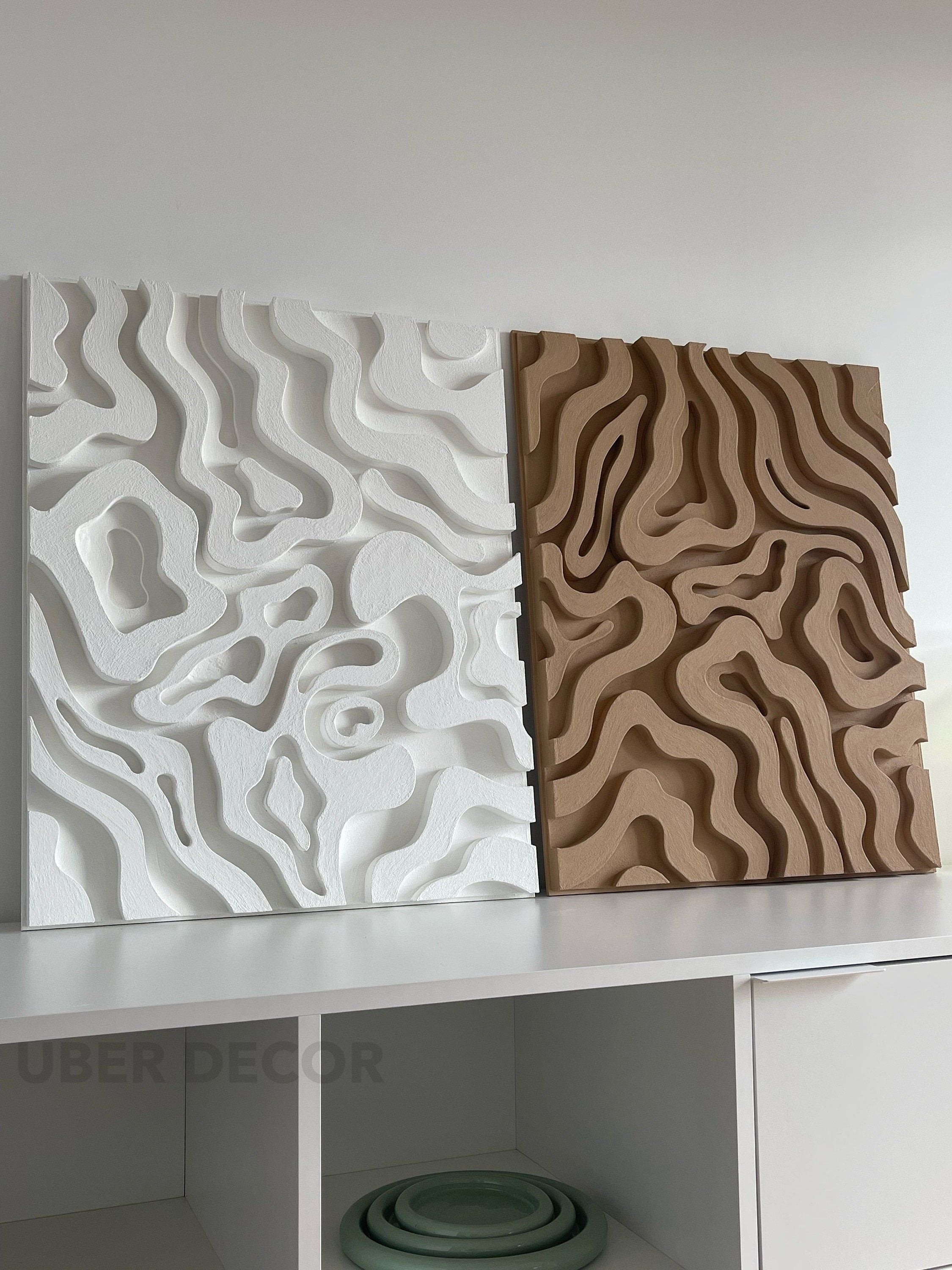 Set of 2 Linear Flow Wooden Wall Art - Contemporary Abstract Texture 3D Wall Art - Wood Wall Sculpture Minimal Wall Decor