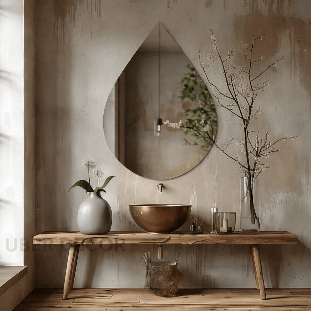 Mira Drop Frameless HD Mirror – Modern Raindrop Wall Mirror for Living Room, Bathroom & Bedroom
