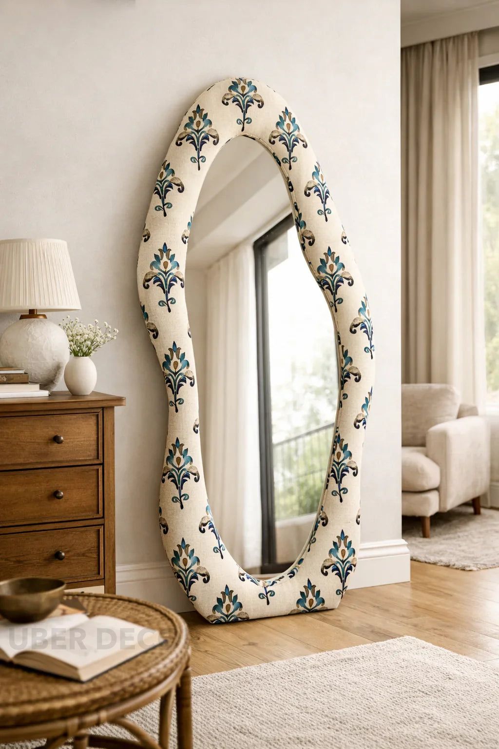 Modern Wavy Edge Full Length Standing Mirror-Large Sized Aesthetic Unique Stylish Mirror for Bedroom