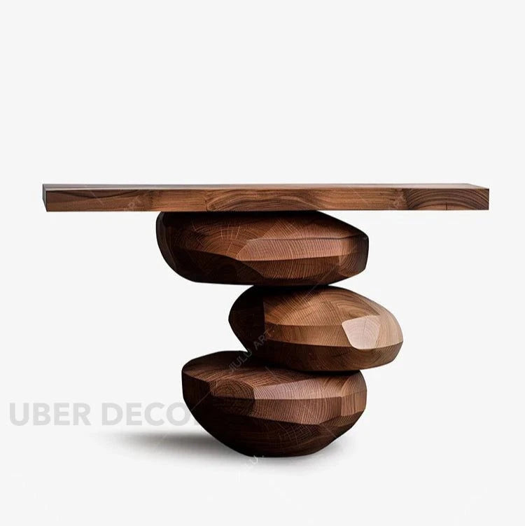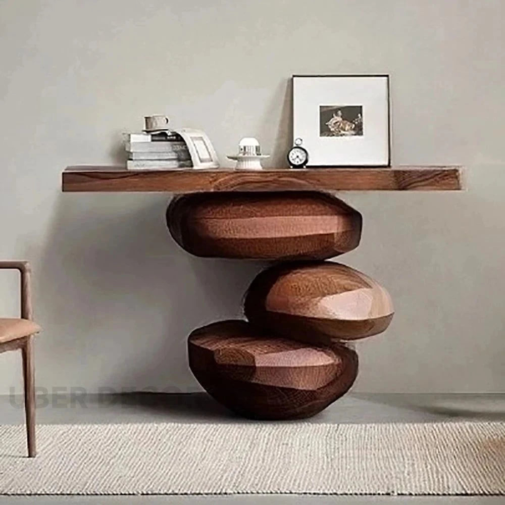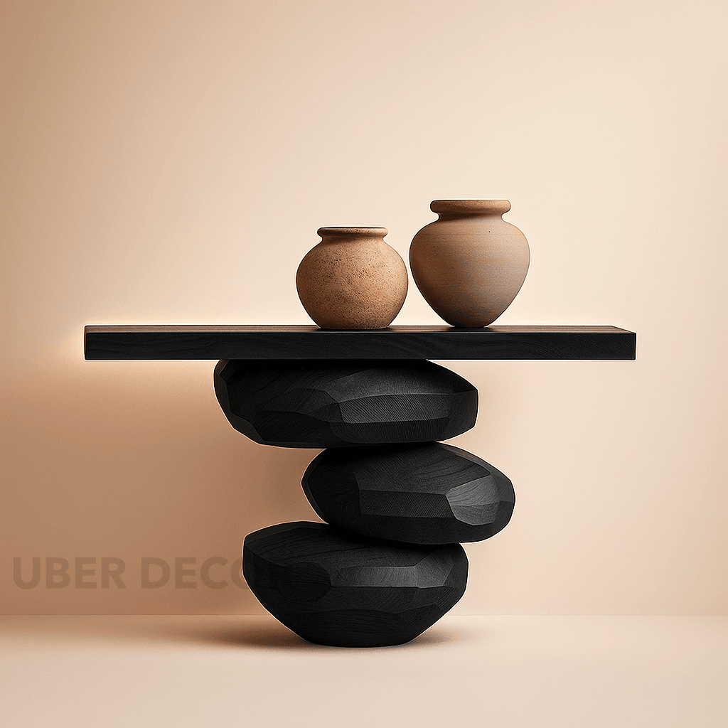 Noor Zen Balance Console Table – Minimalist Sculptural Japandi Console with Handcrafted Boulder Base for Entryway & Living Room