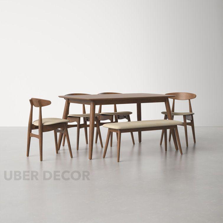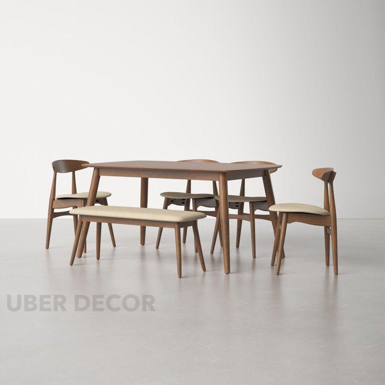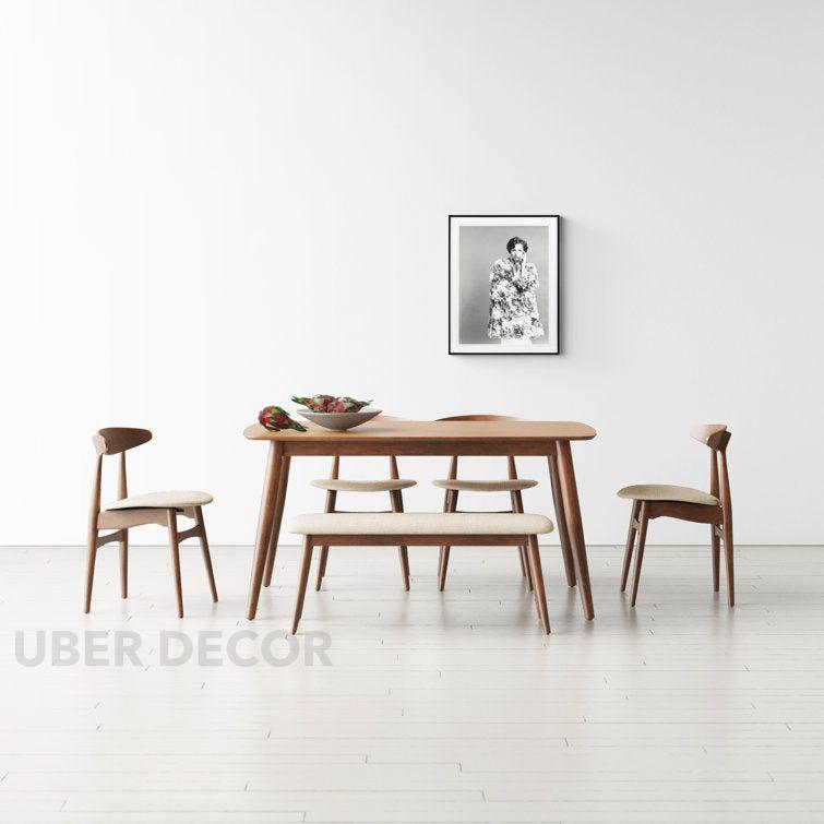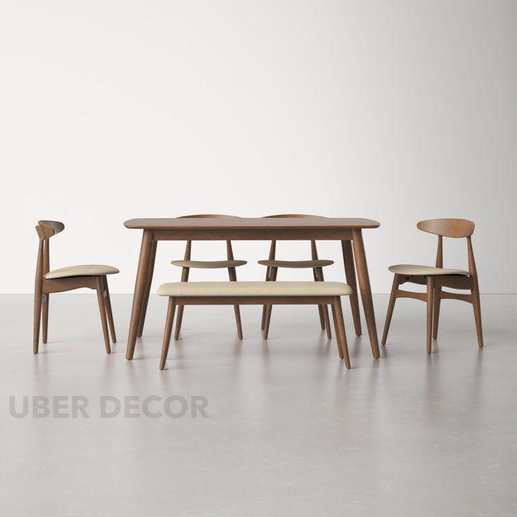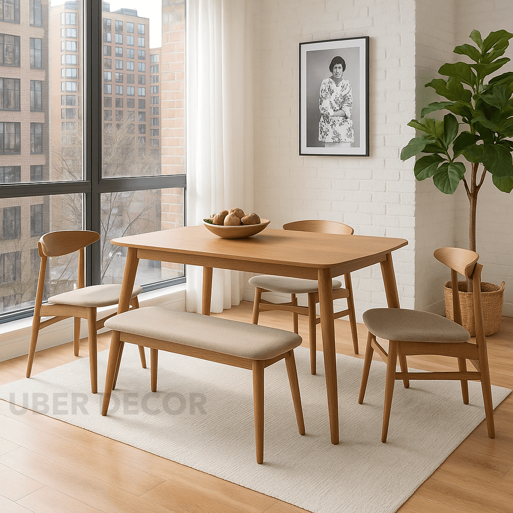 Oakline Minimalist Mid-Century Modern Wooden Dining Table Set with Chairs and Bench for Kitchen Dining Area