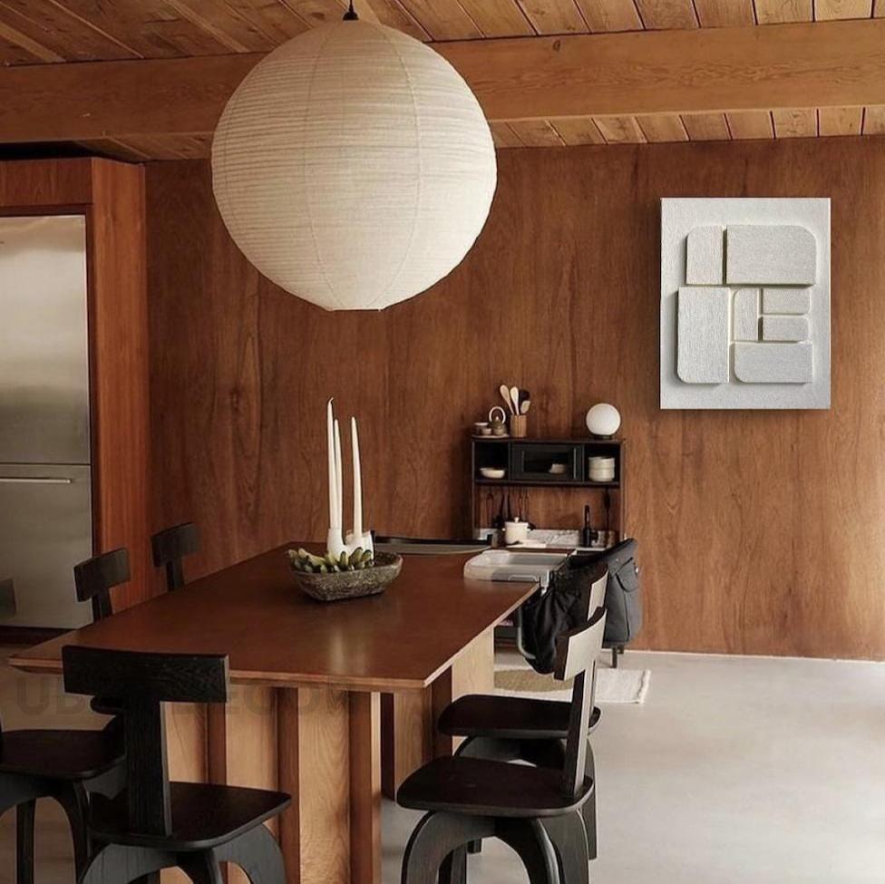 The design is defined by its minimalist and modern aesthetics, featuring clean lines and a harmonious blend of shapes and textures that offer a striking yet subtle presence. Perfect for those who appreciate minimalist home decor, this wooden wall art can be used to complement any style of interior design, from contemporary to Scandinavian or even industrial themes.