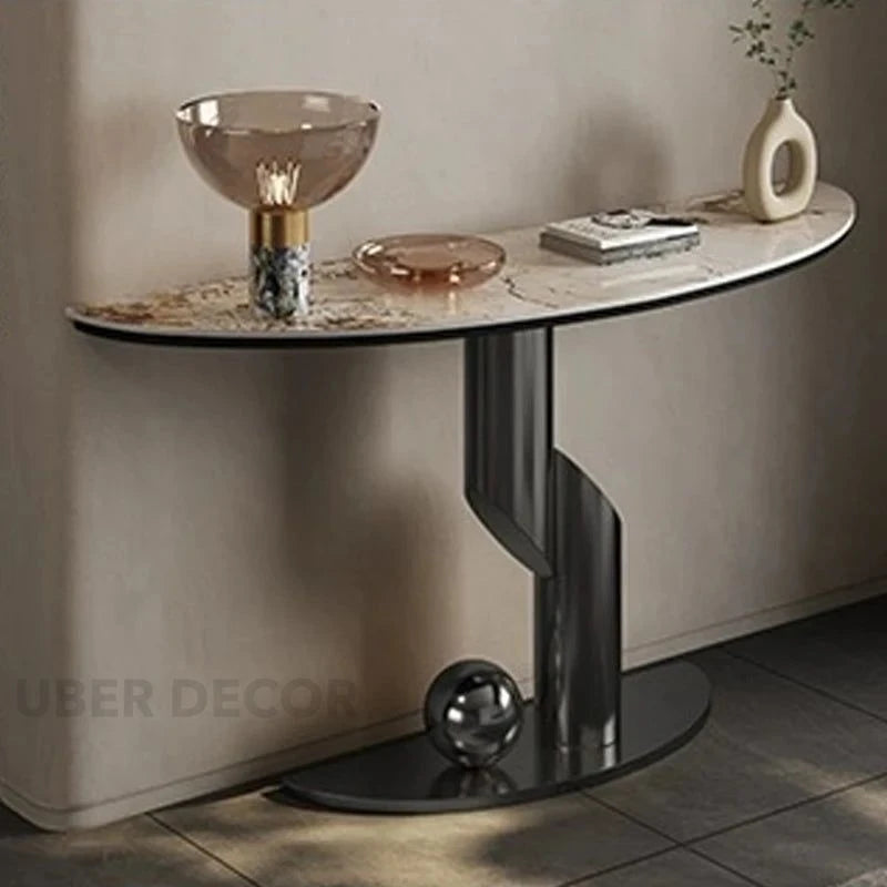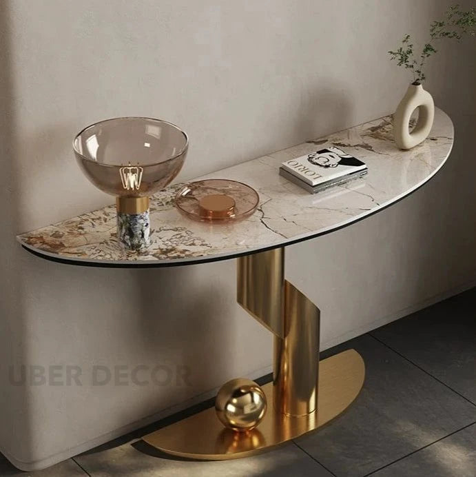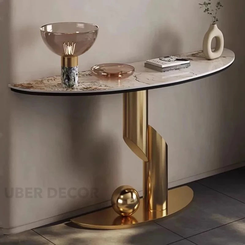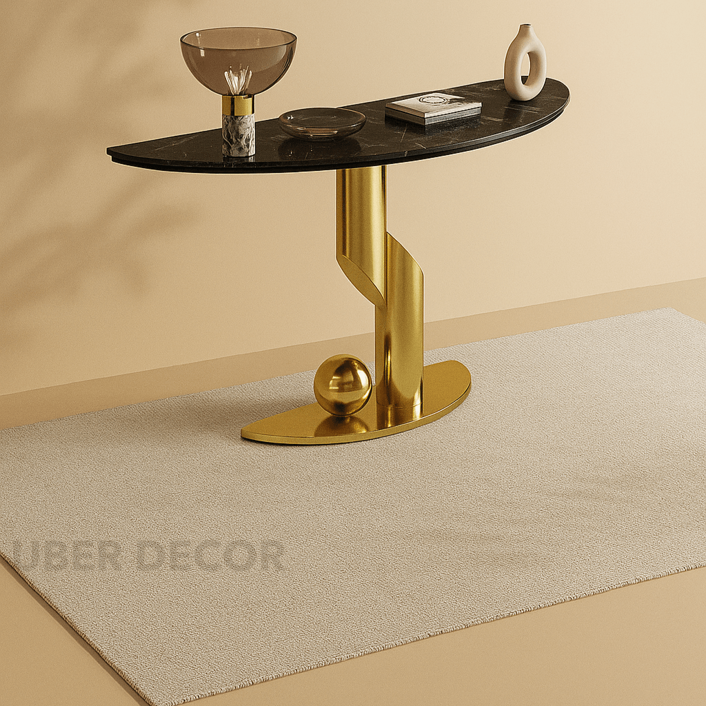 Orielle Halo Console Table – Mid-Century Modern Console with Marble Top for Hallways & Living Spaces
