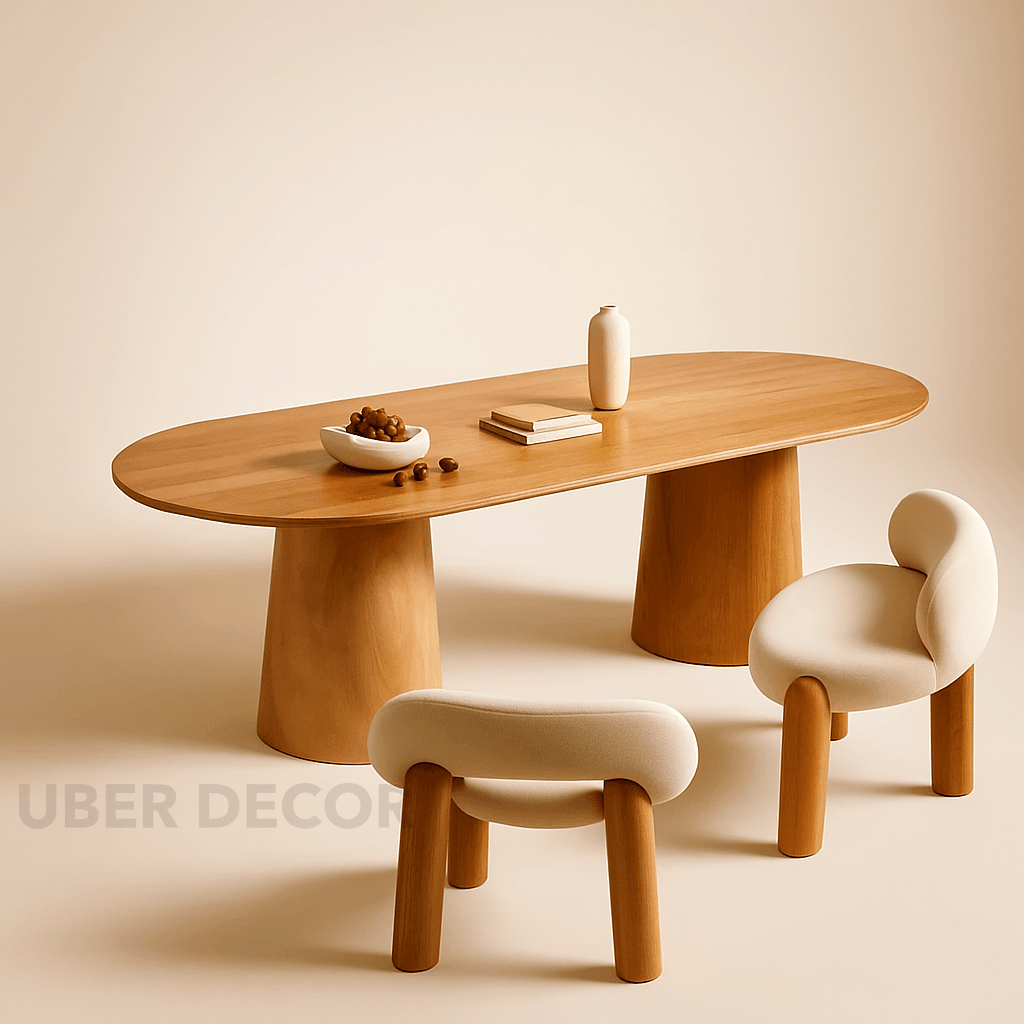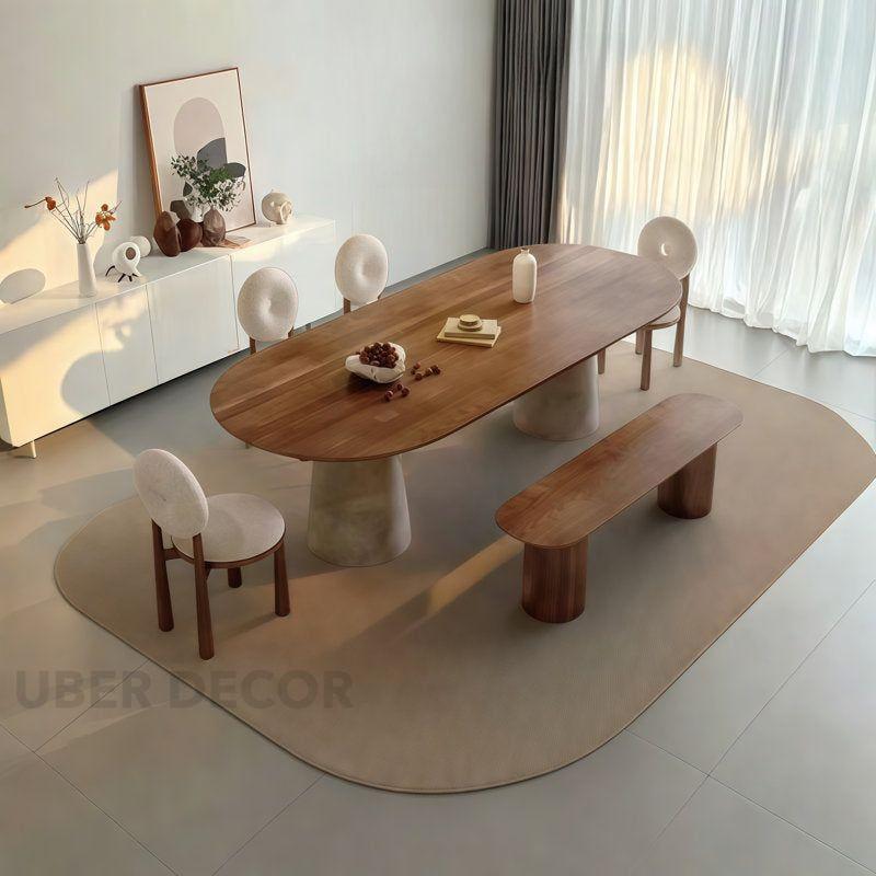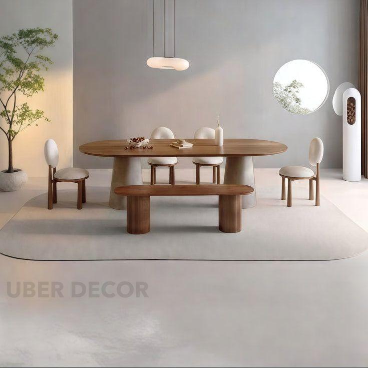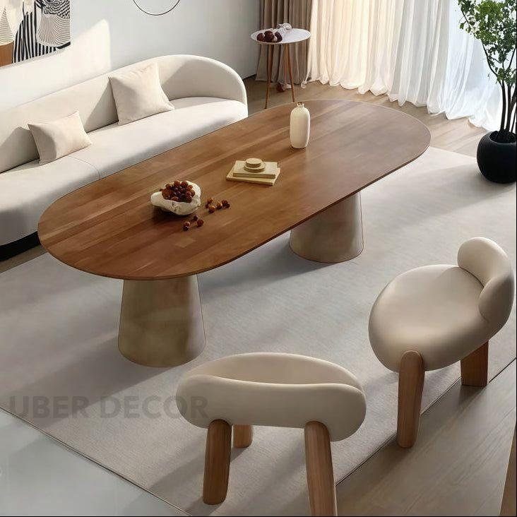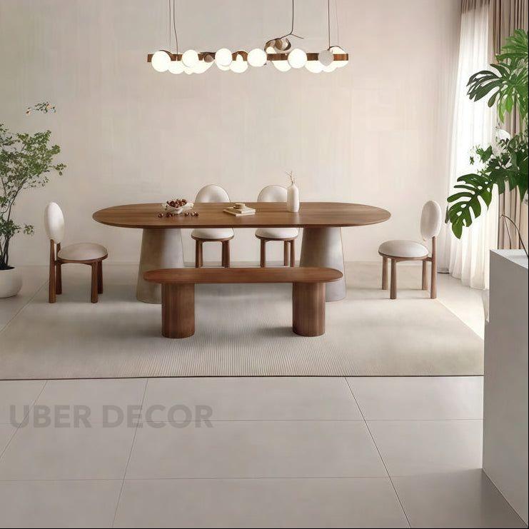 Orla Haven Oval 6 Seater Dining Table Japandi Scandinavian Design Walnut Finish Sculptural Pedestal Base Ideal for Dining Room