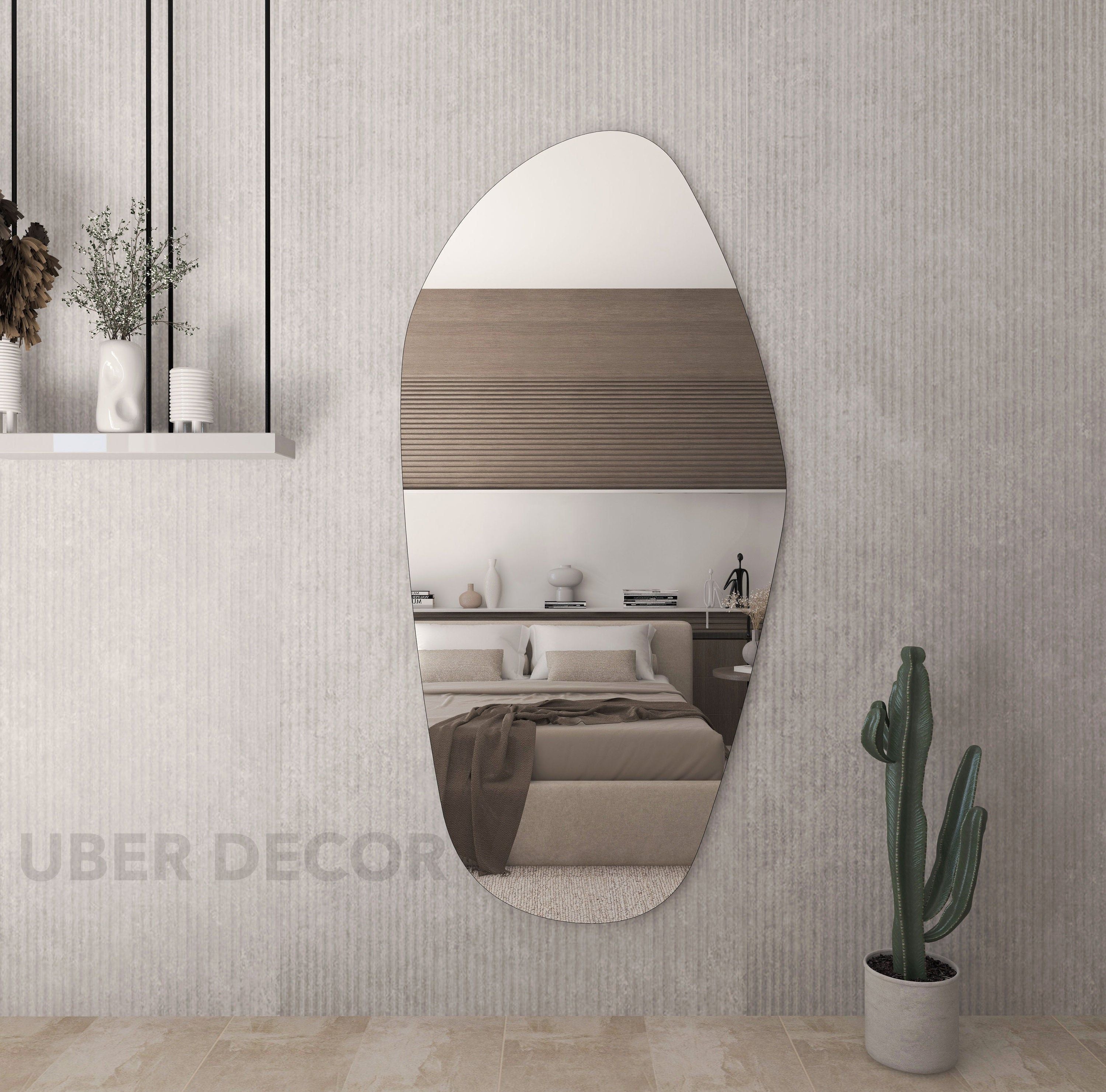 Ovela Frameless HD Mirror – Irregular Unique Full-Length Statement Piece for Living Room, Hallway & Lounge
