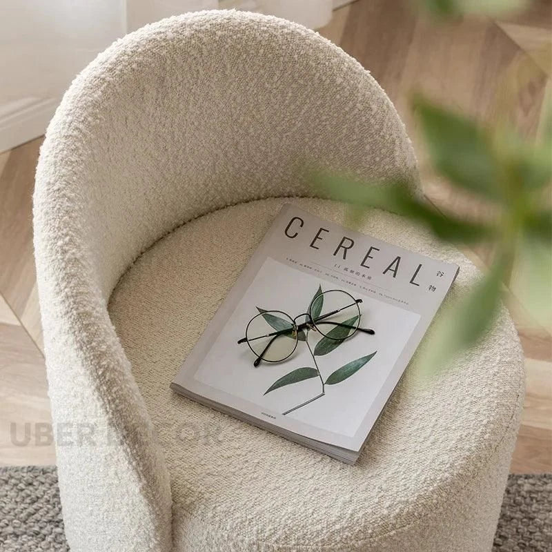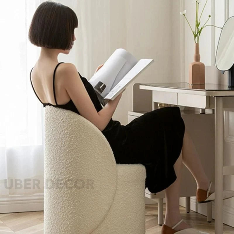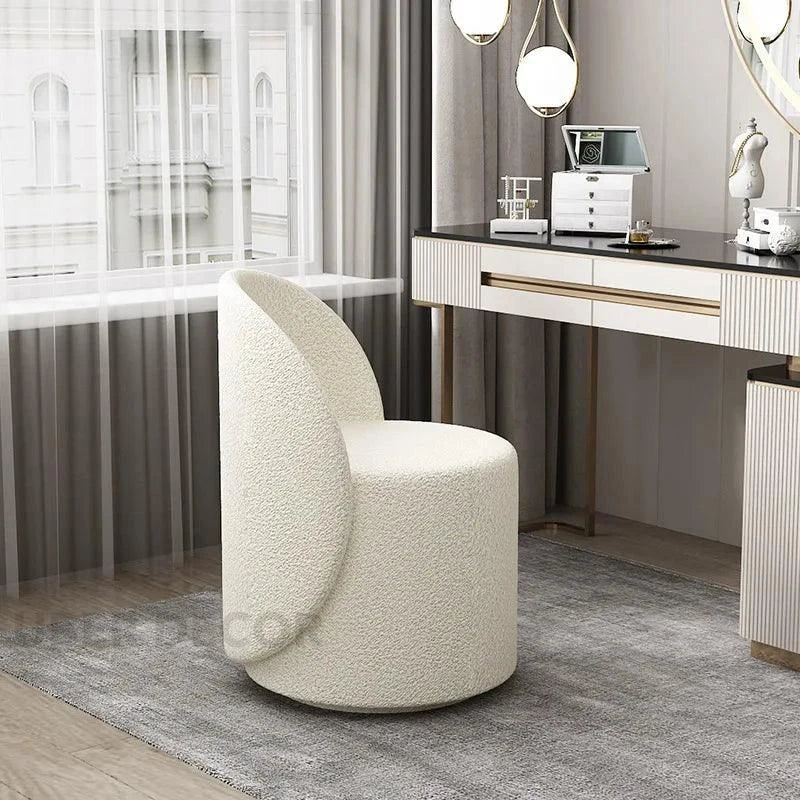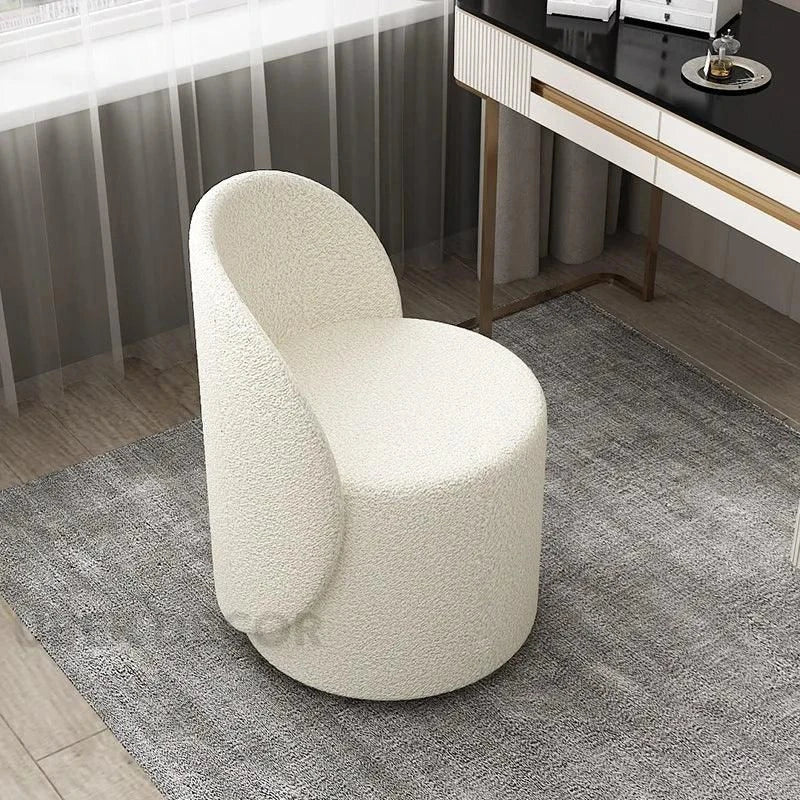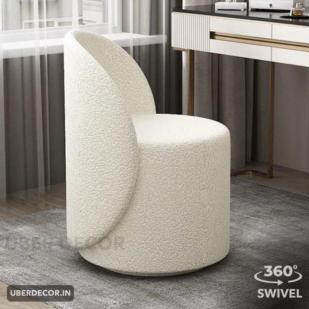 Royal Twirl Swivel Chair- Cute White Backrest Pouffe Chair for Bedroom & Makeup