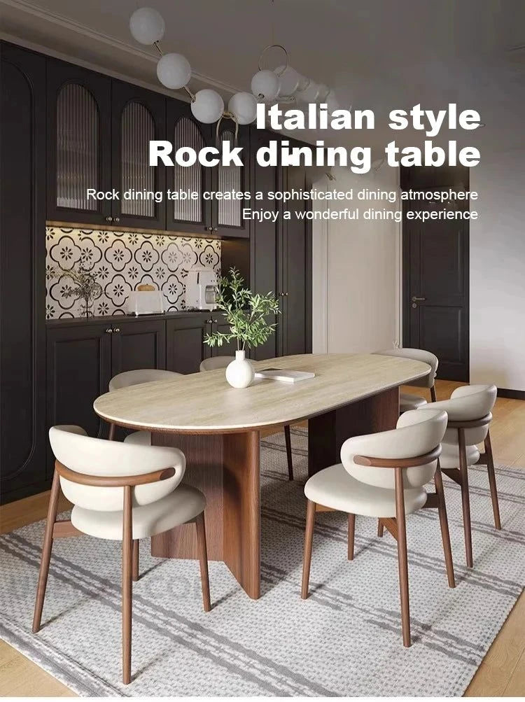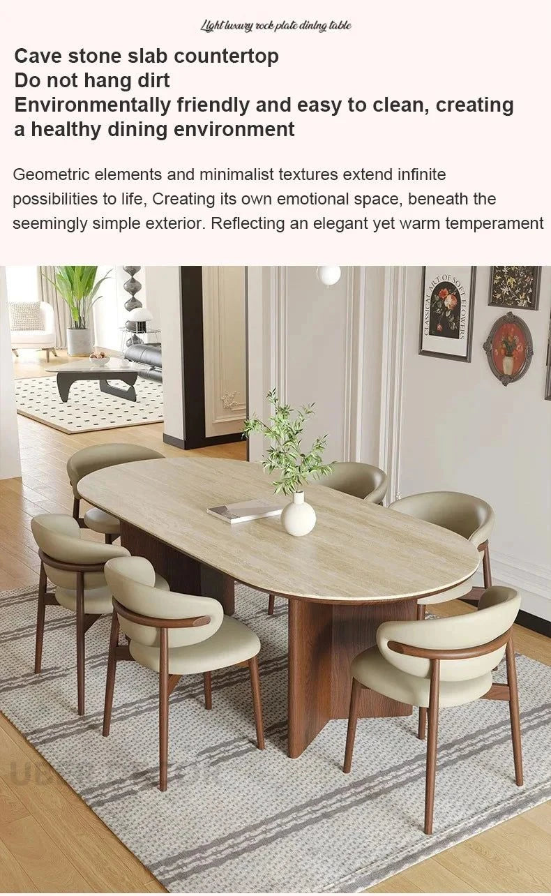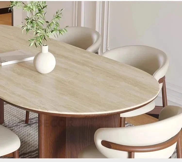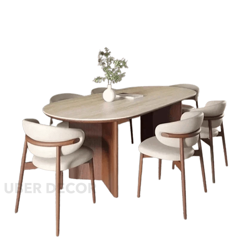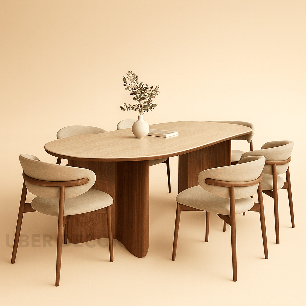 Sienna Curve Oval Rock Slab Dining Set – Modern Organic Design with Solid Wood Base & Upholstered Chairs