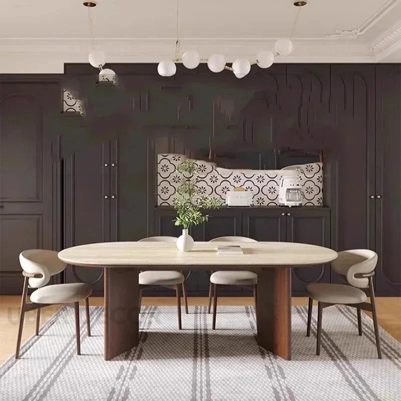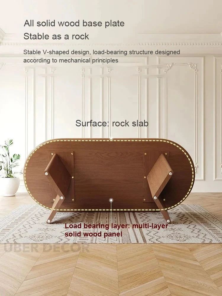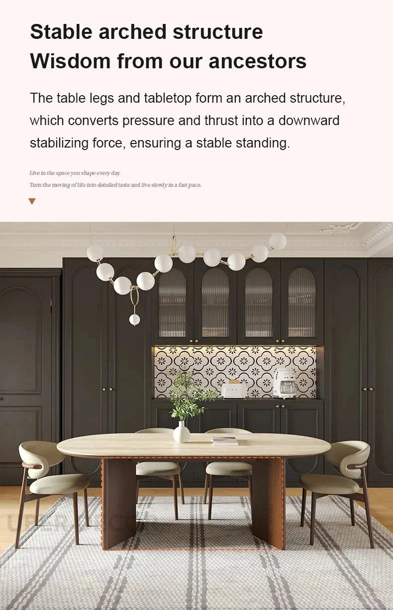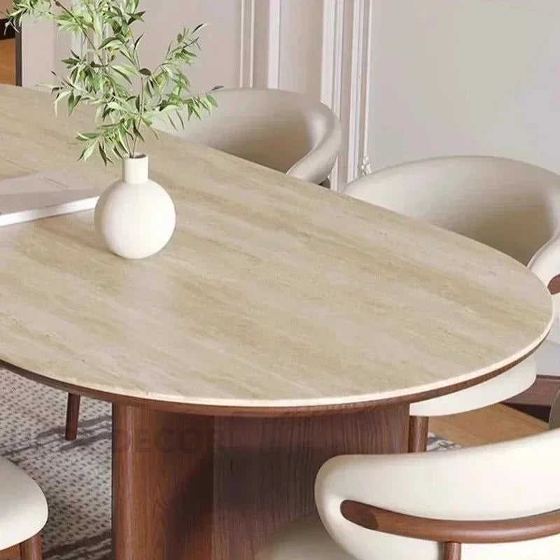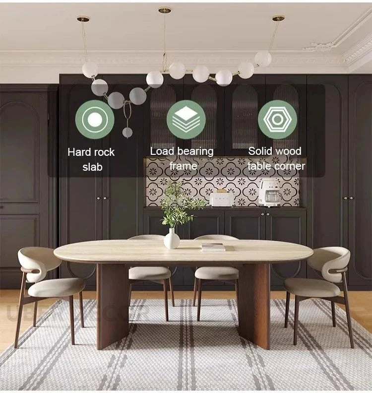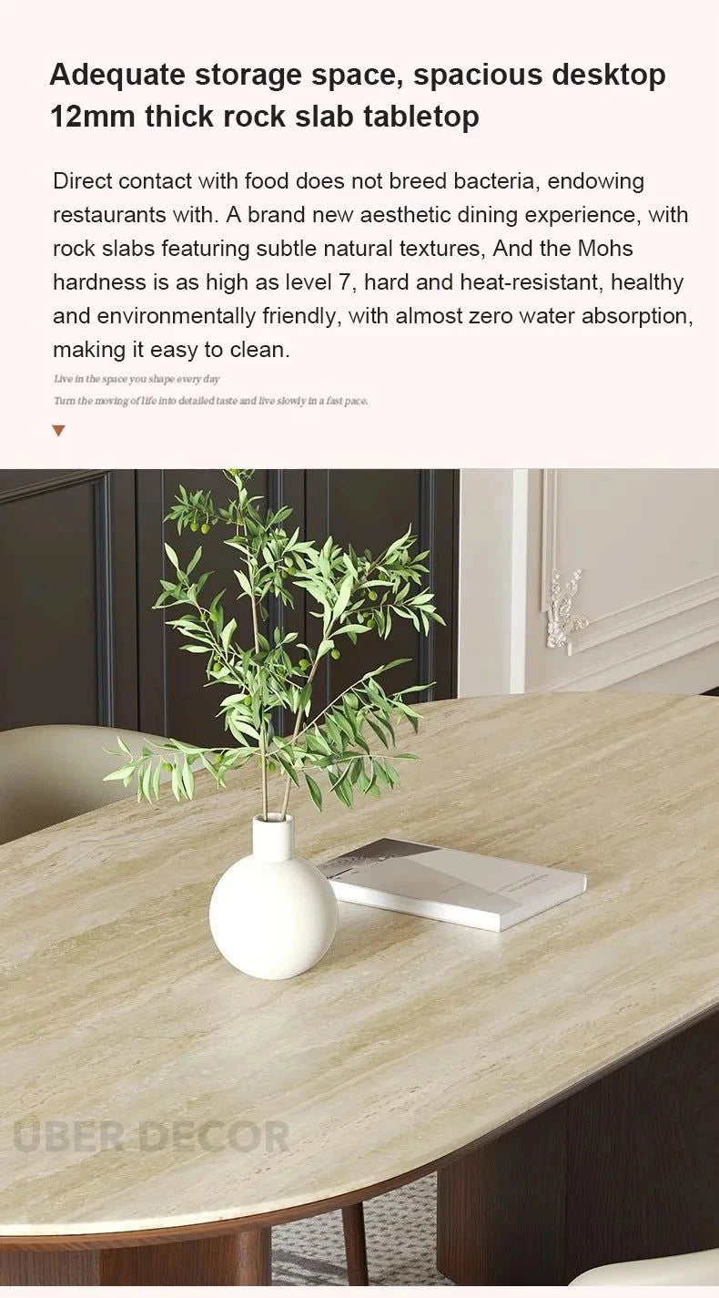 Sienna Curve Oval Rock Slab Dining Set – Modern Organic Design with Solid Wood Base & Upholstered Chairs