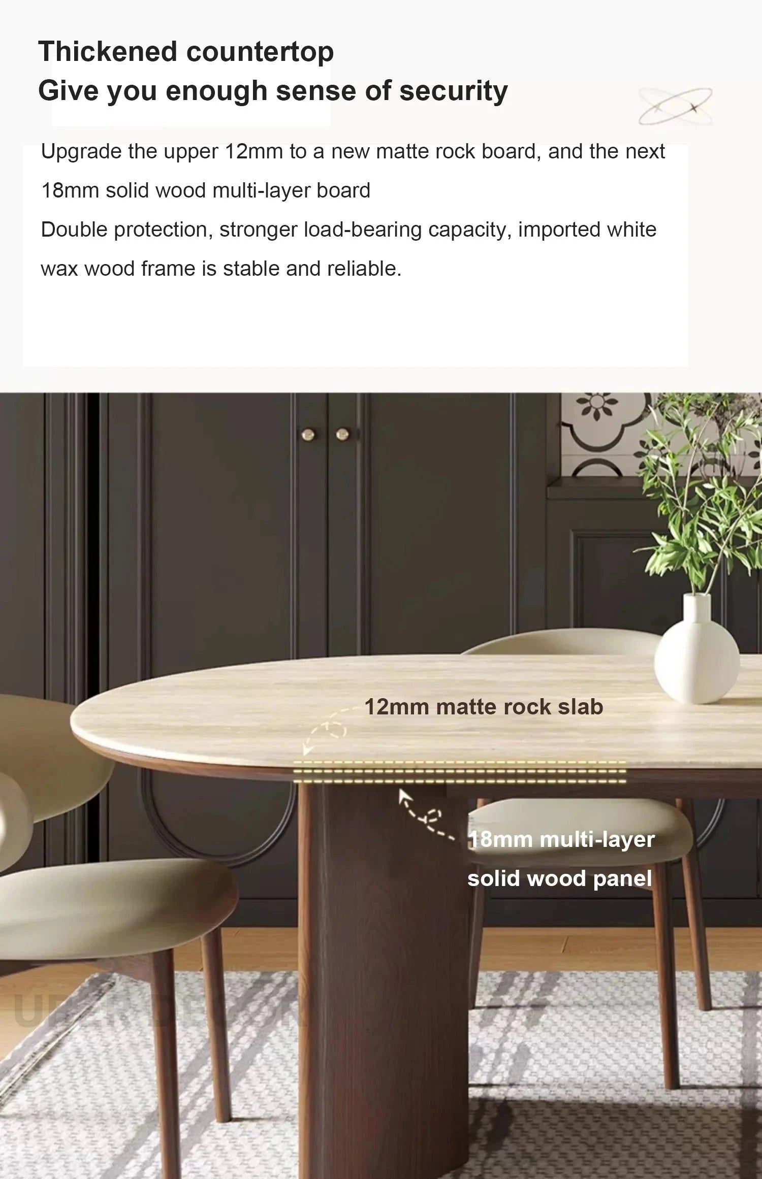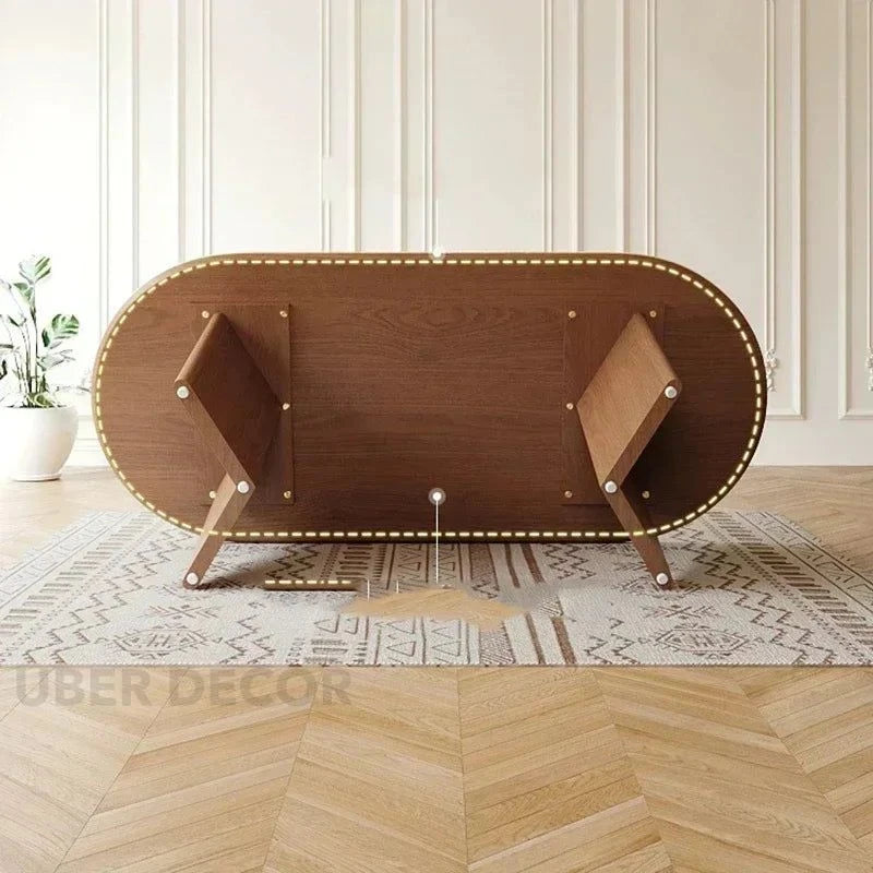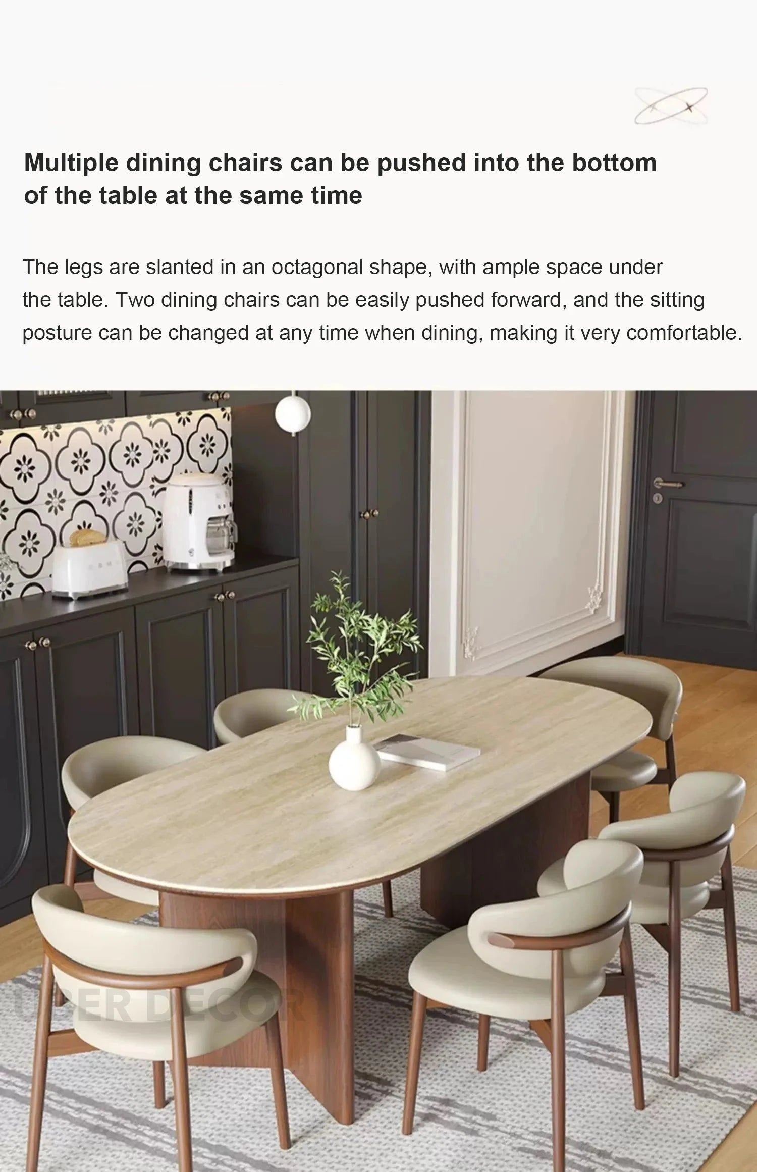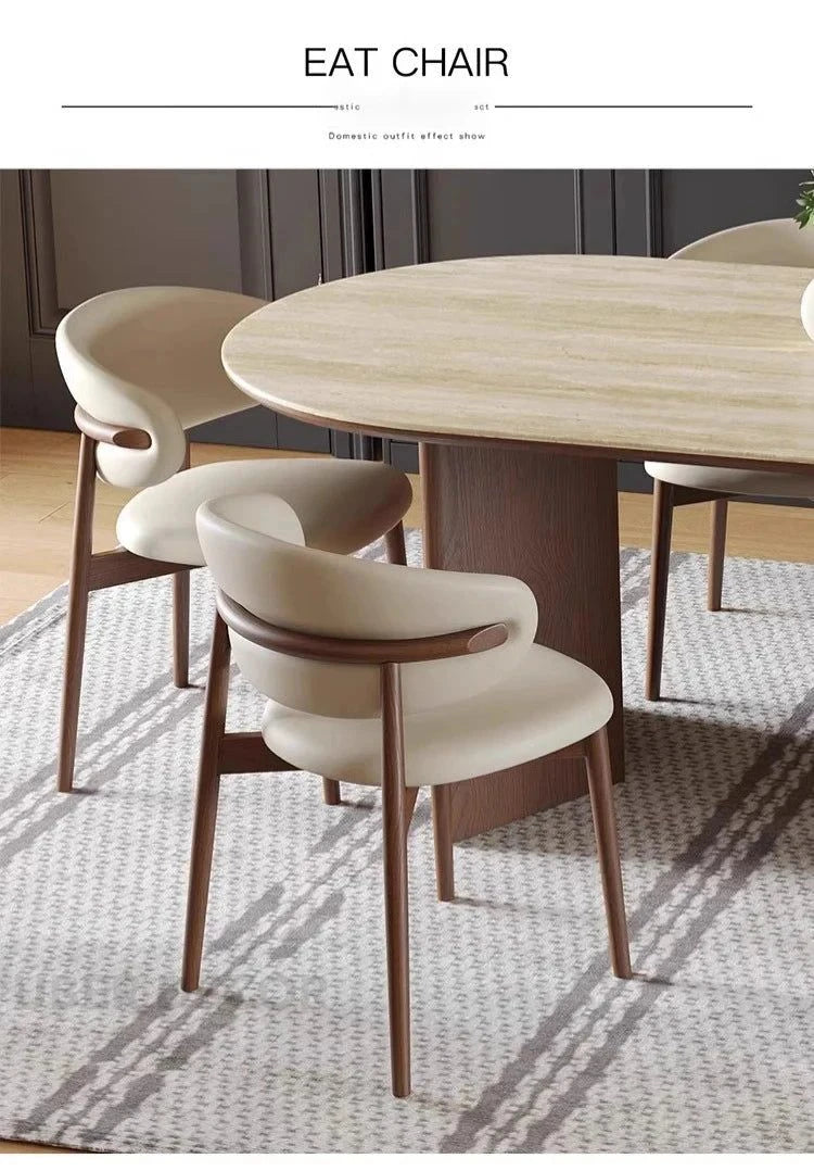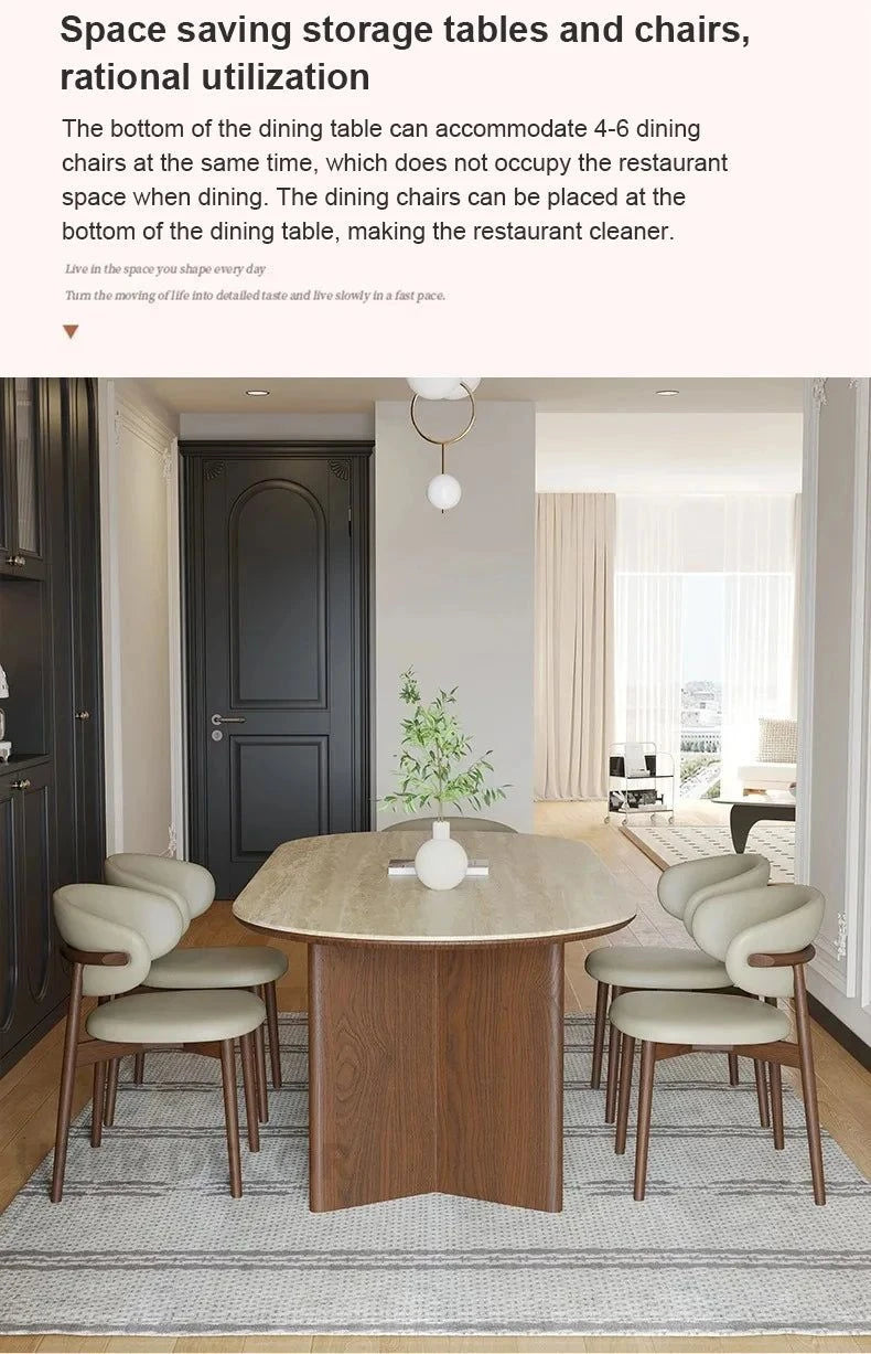 Sienna Curve Oval Rock Slab Dining Set – Modern Organic Design with Solid Wood Base & Upholstered Chairs