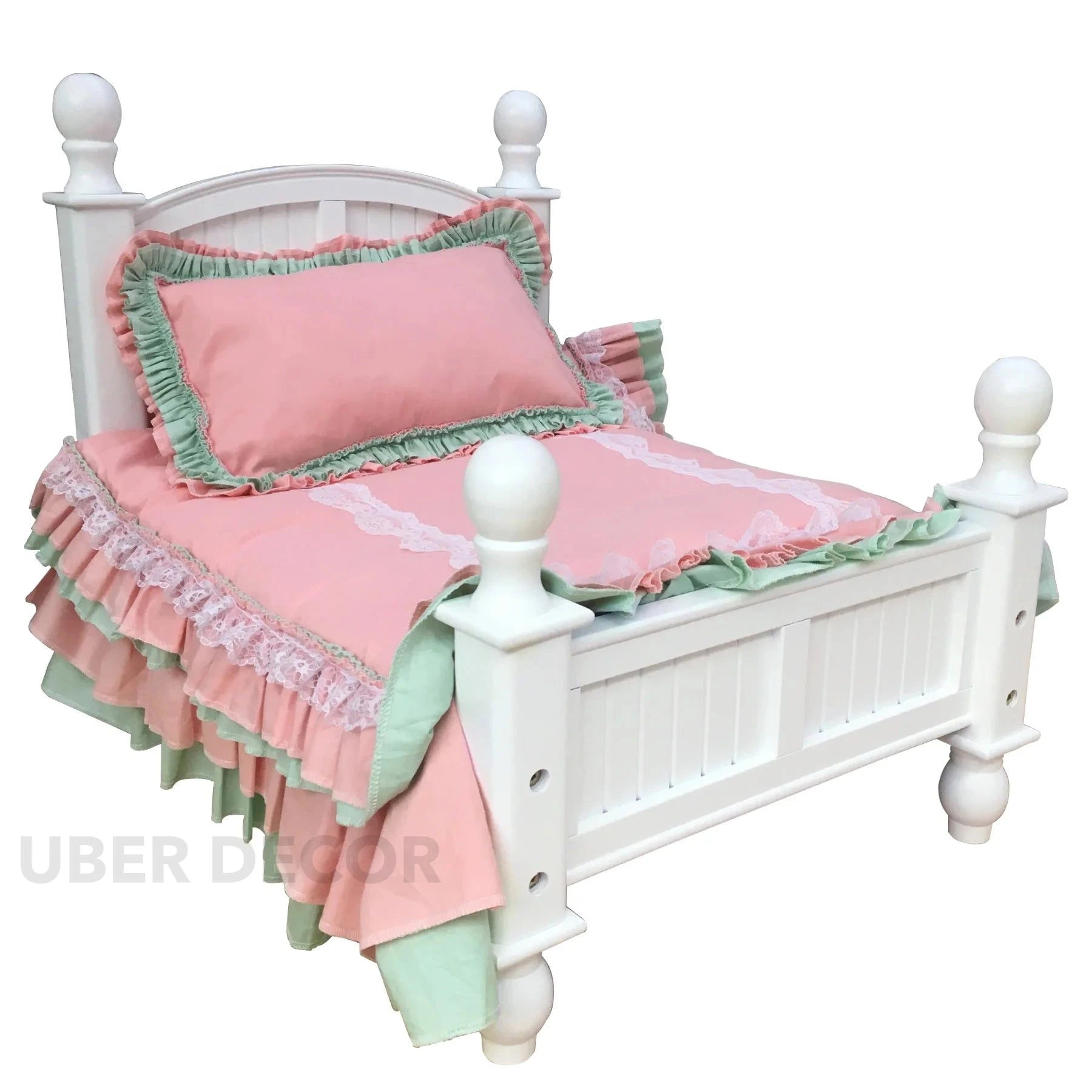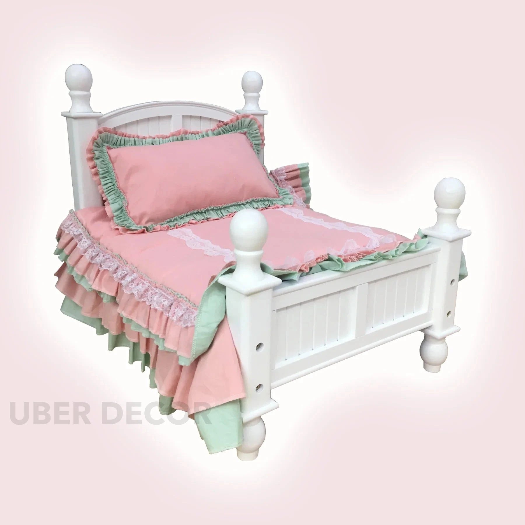 Napwhim Cottage Mini Bed – Vintage Doll or Pet Furniture with Ruffled Pastels