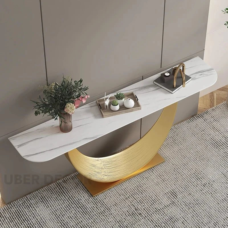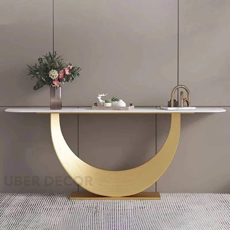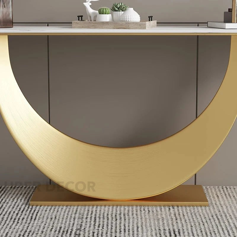 Solmira Arc Console Table – Luxury Modern Metal Console with Marble Top for Hallways & Living Rooms