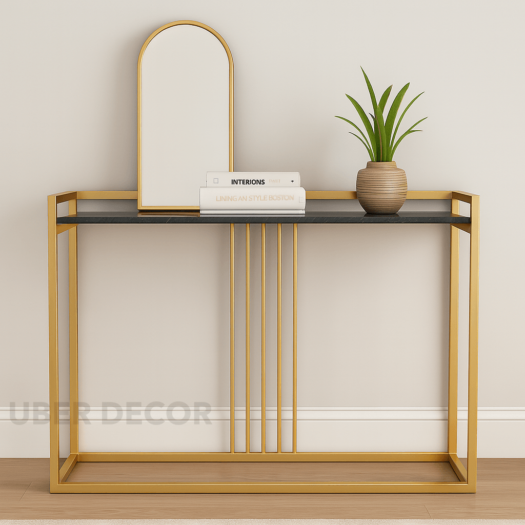 Stratus Slim Console Table – Custom Marble Top in Black or White with Vertical Accent Detailing