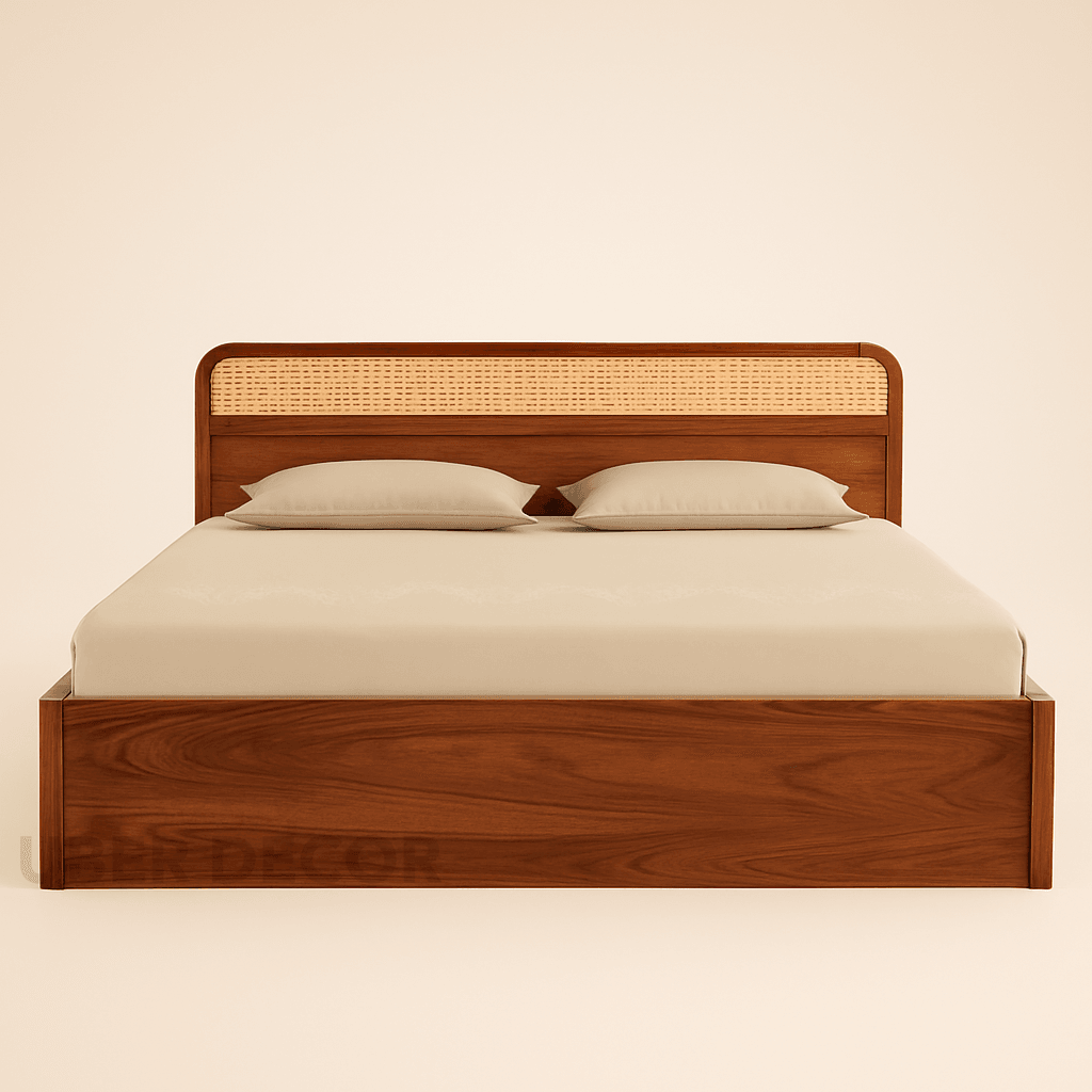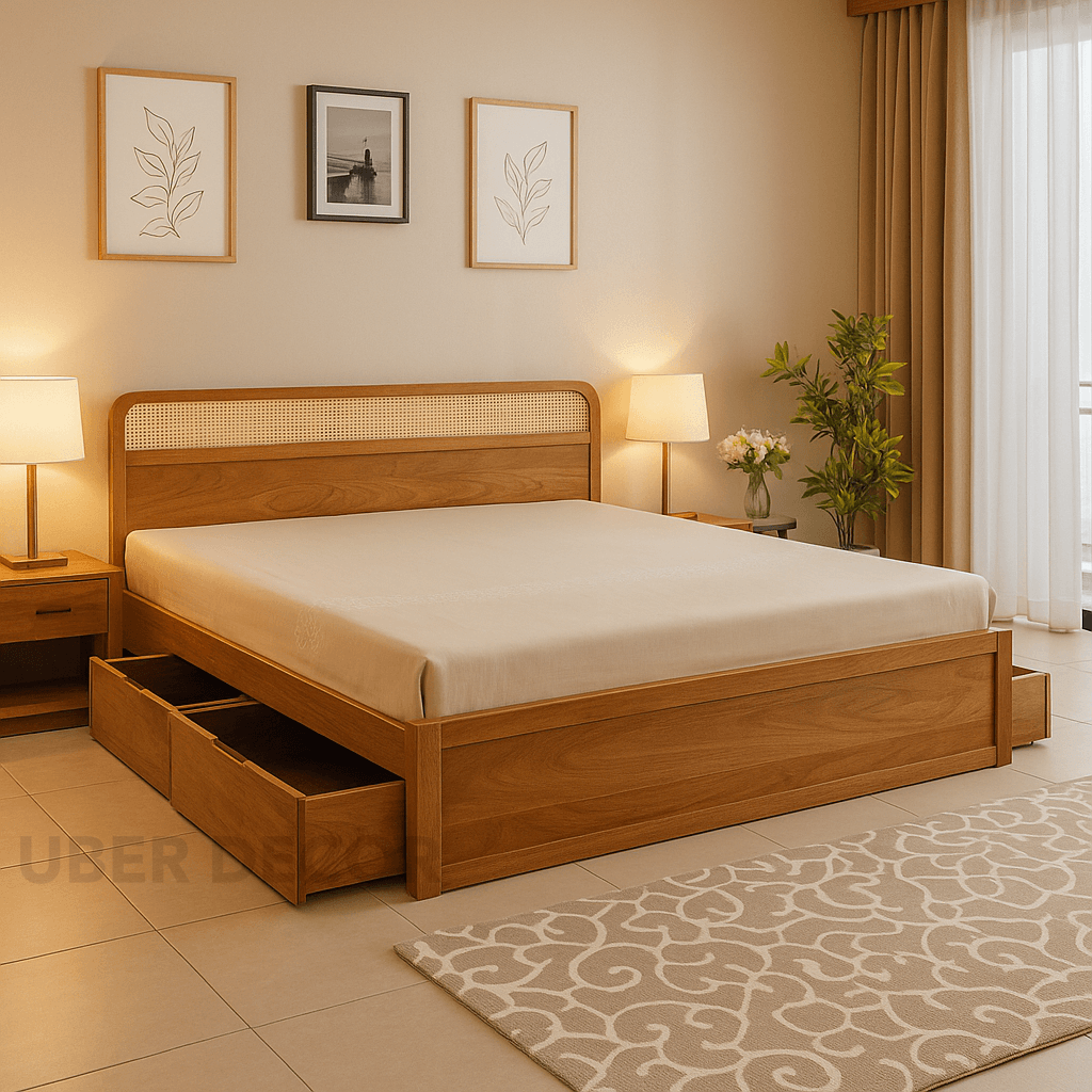 TeakCrest Modern Rattan Storage Platform Customisable Bed for Guest Rooms