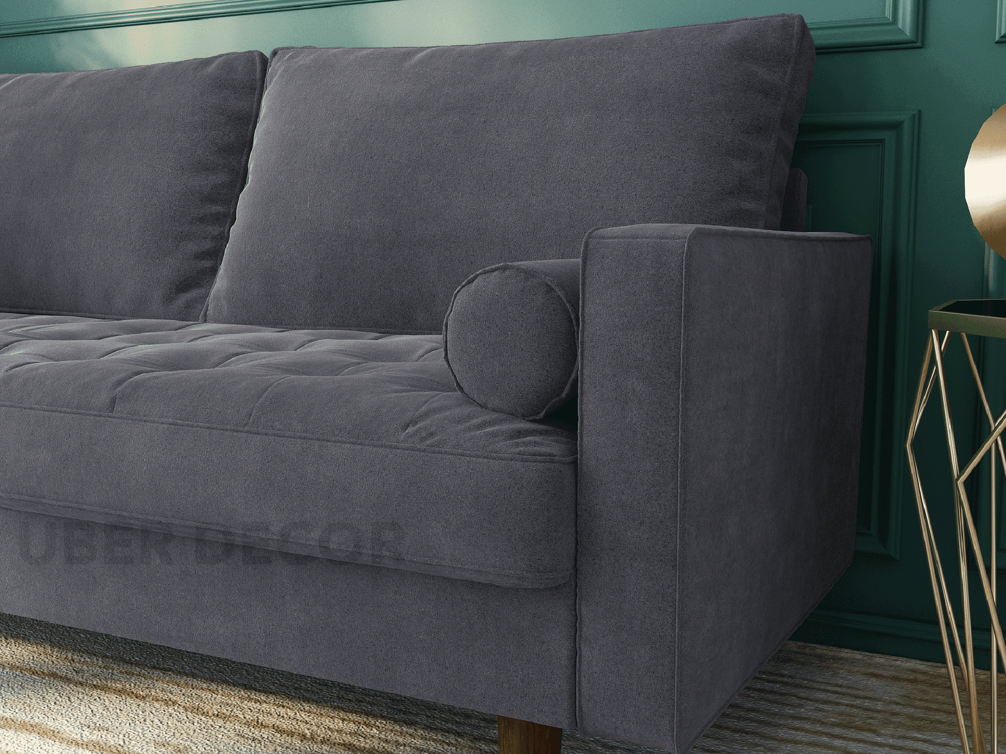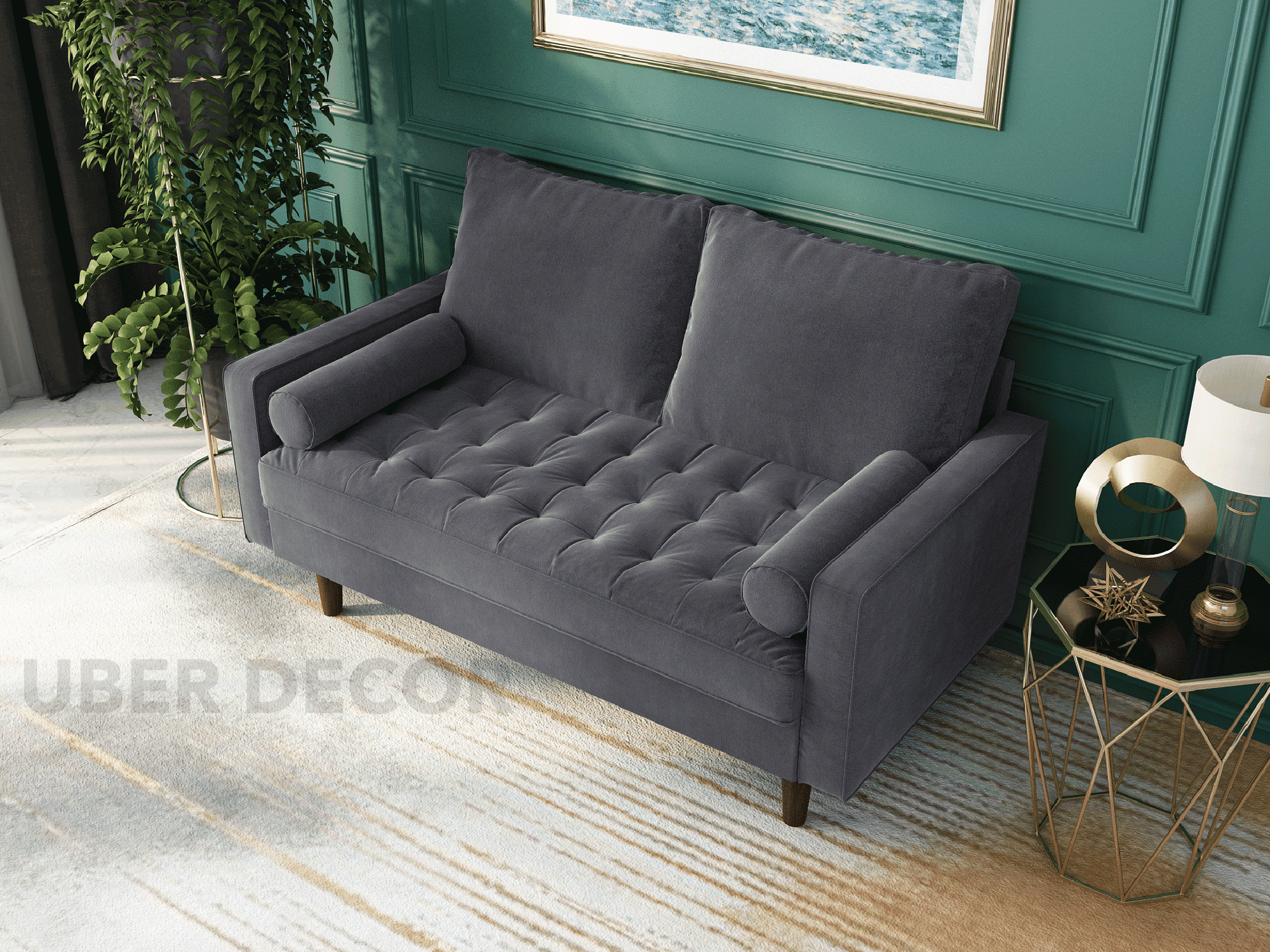 • Functions as a luxe loveseat, sofa set piece, or standalone couch